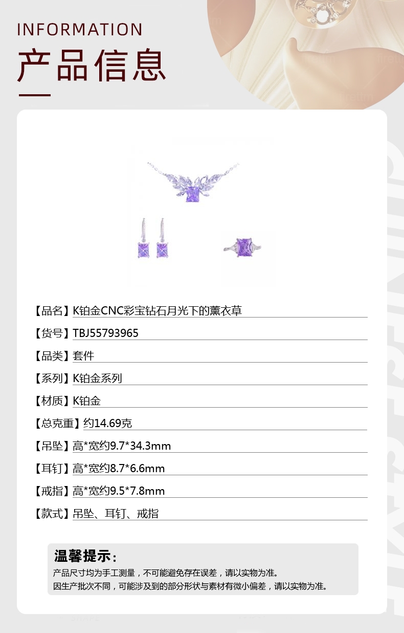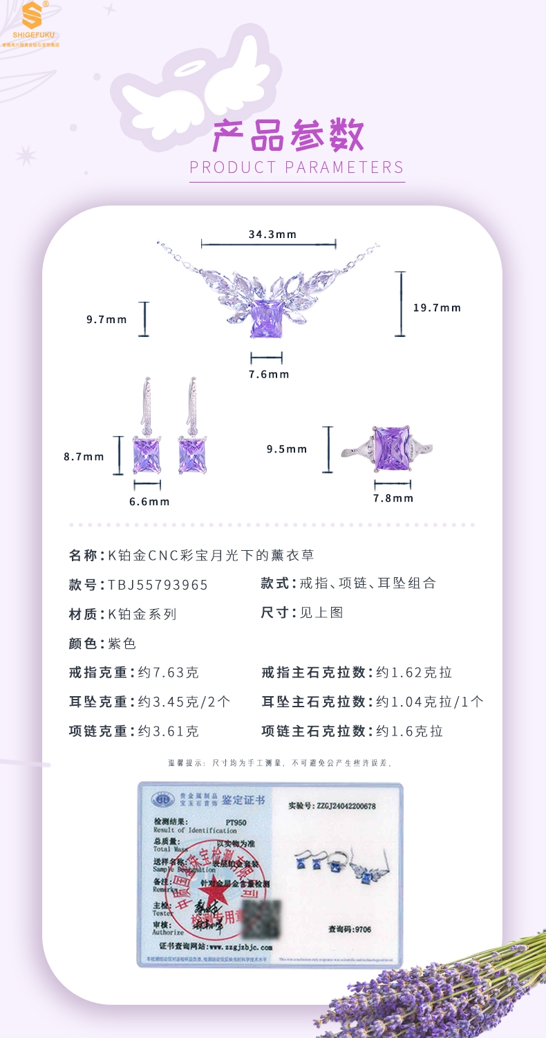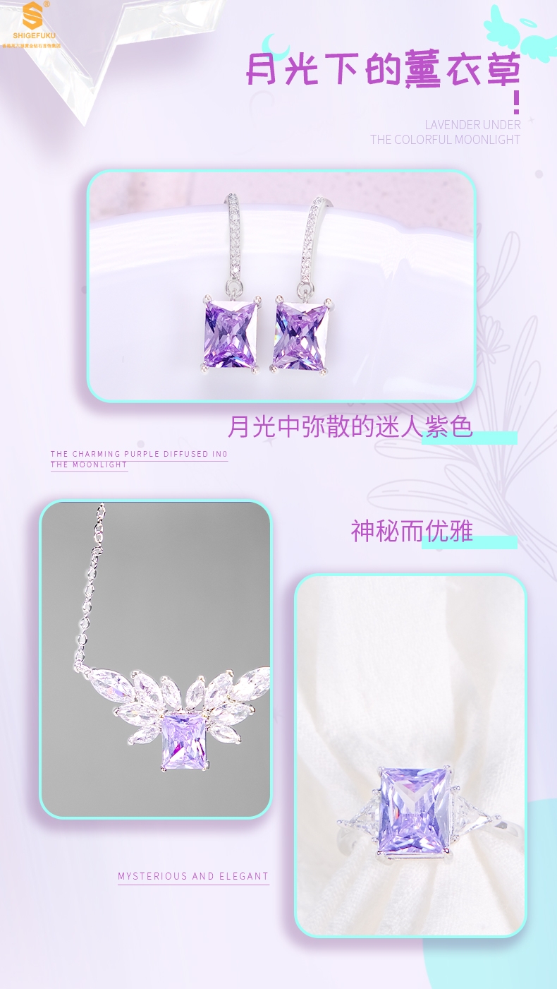 【品名】K铂金CNC彩宝钻石月光下的薰衣草