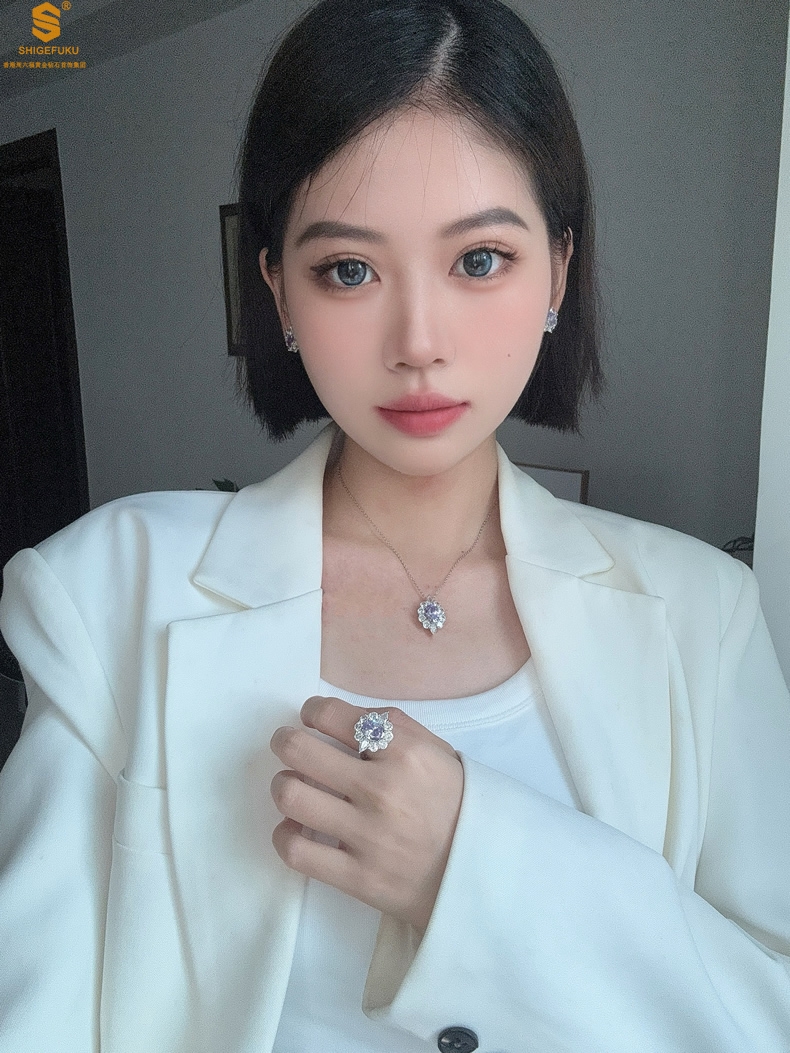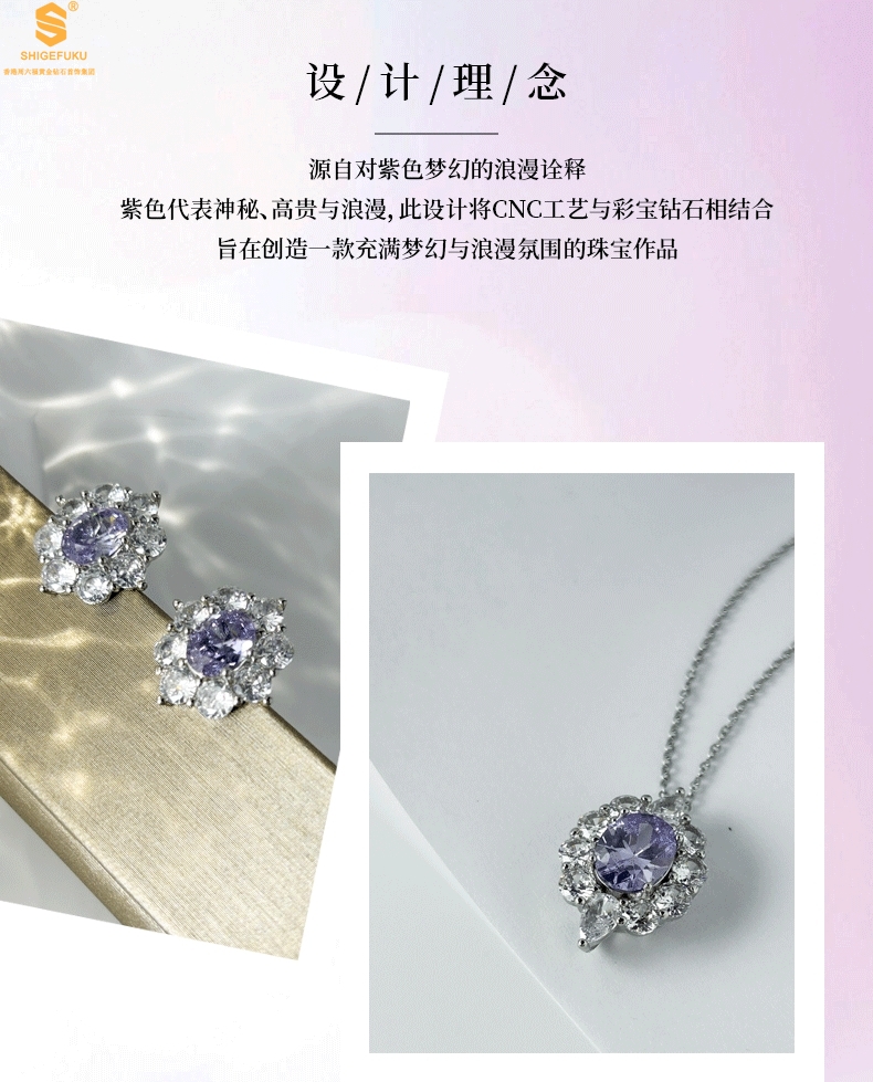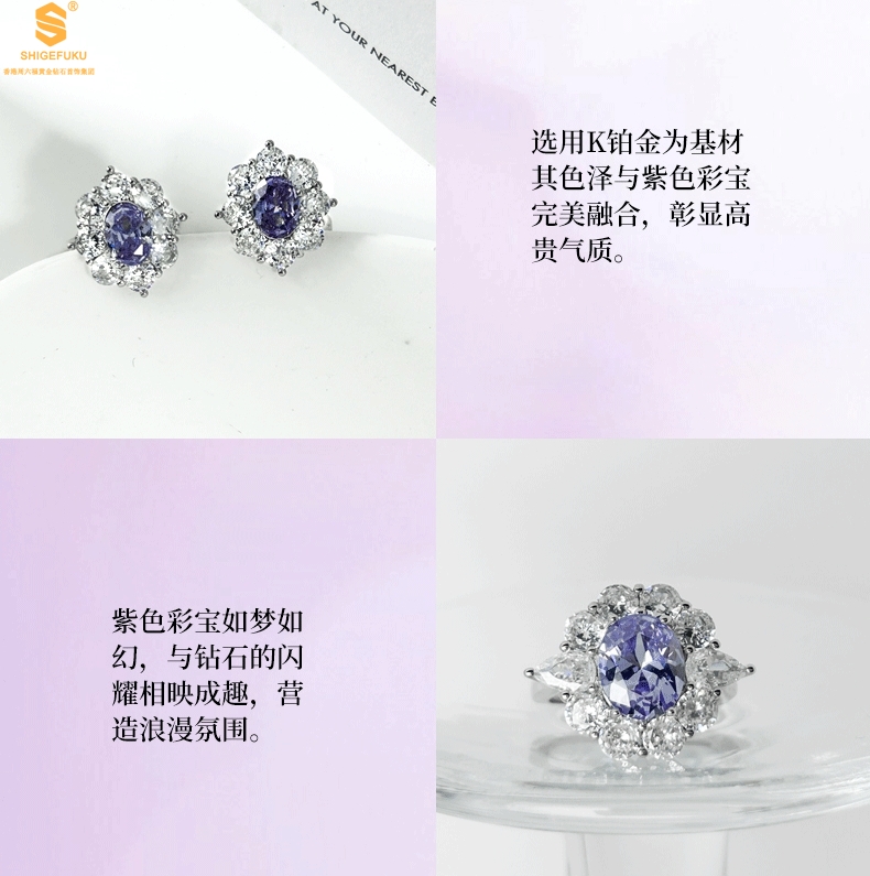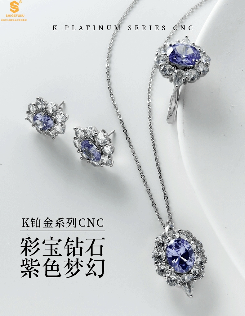 【品名】K铂金CNC彩宝钻石紫色梦幻