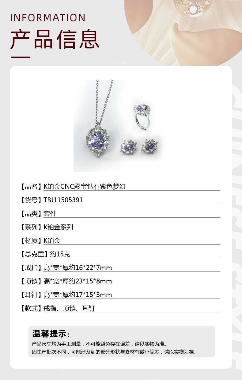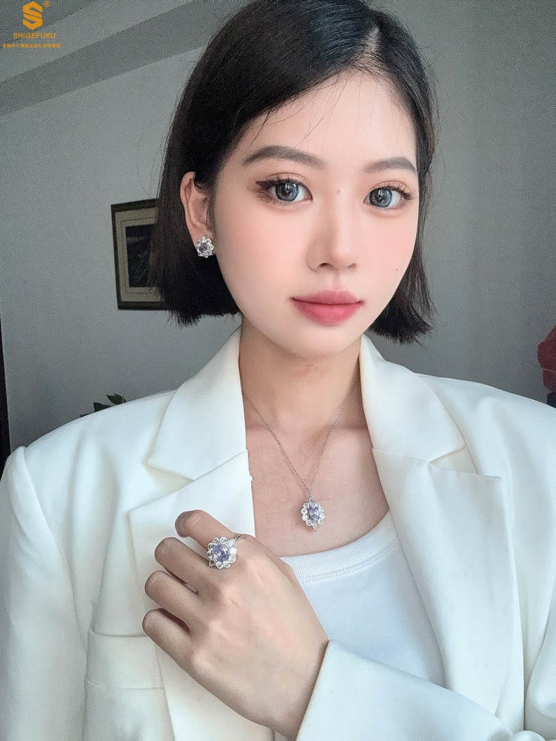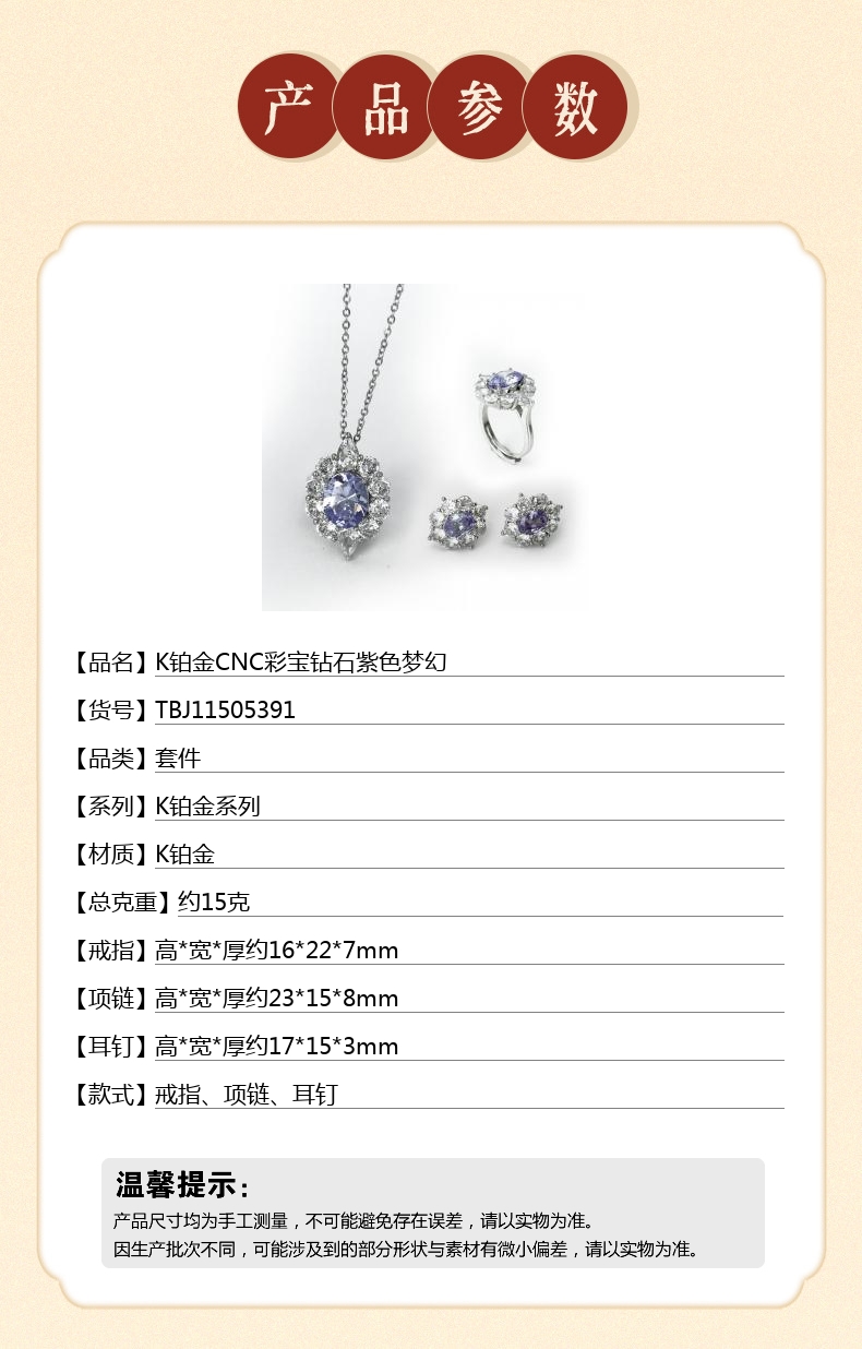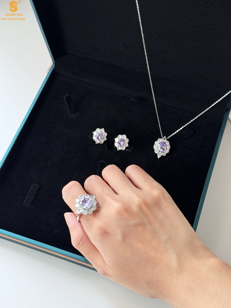 【品名】K铂金CNC彩宝钻石紫色梦幻