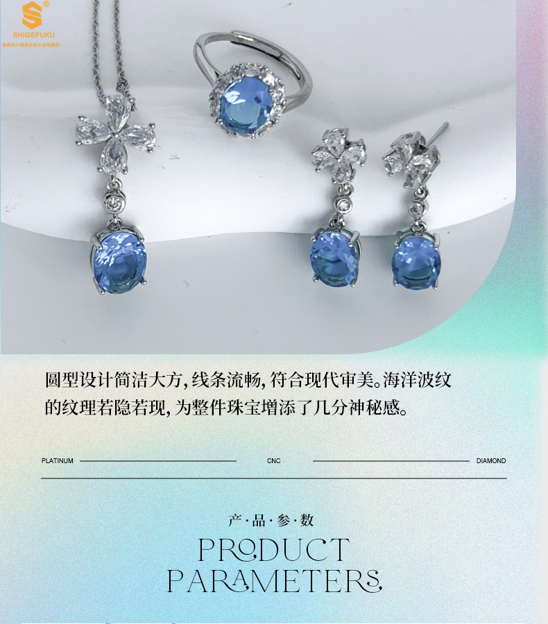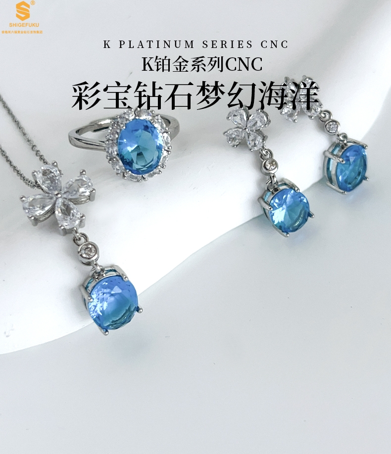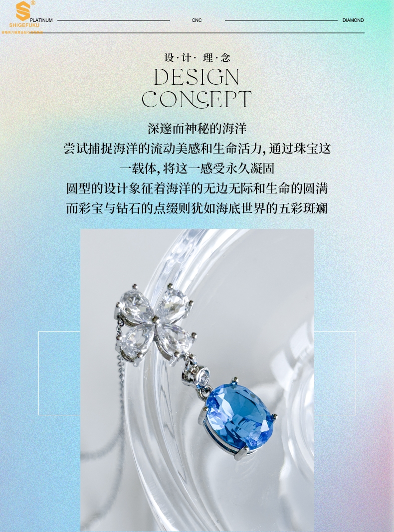 【品名】K铂金CNC彩宝钻石梦幻海洋(圆型)