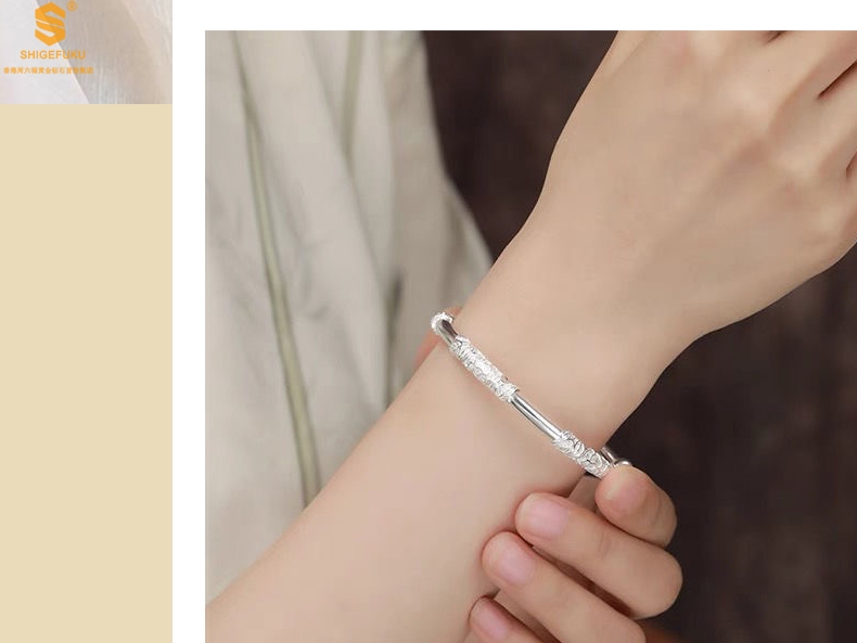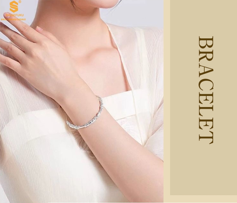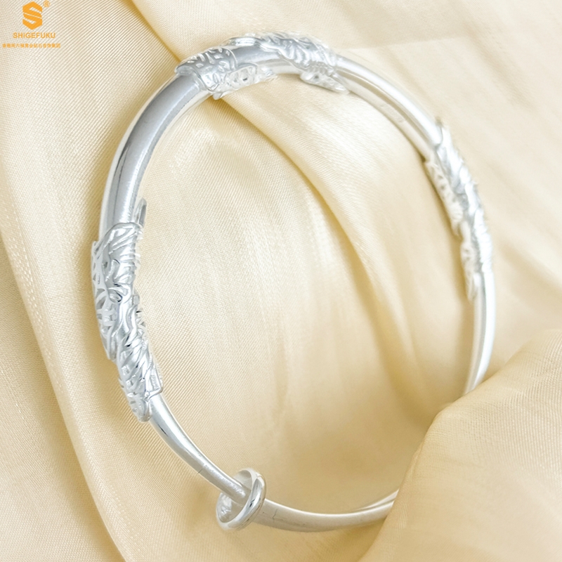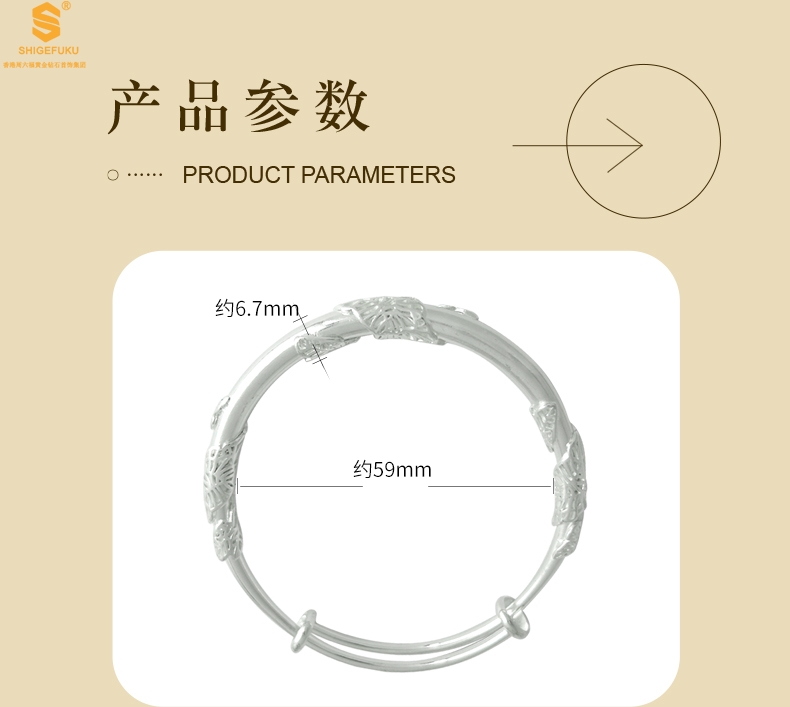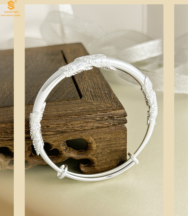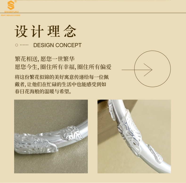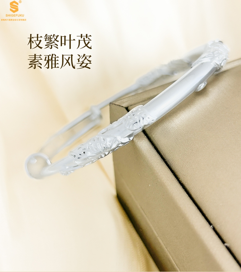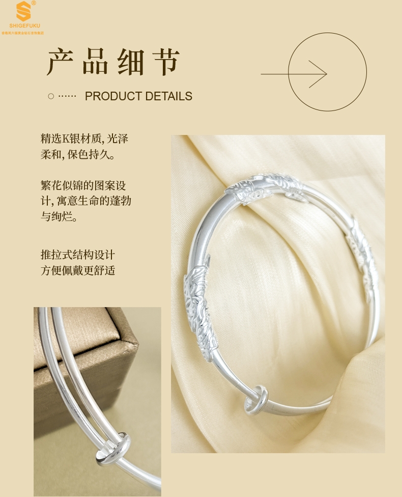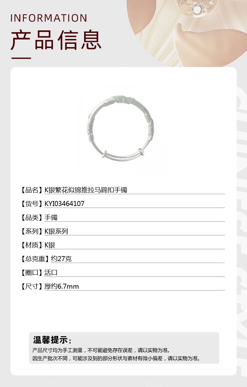 【品名】K银繁花似锦推拉马蹄扣手镯