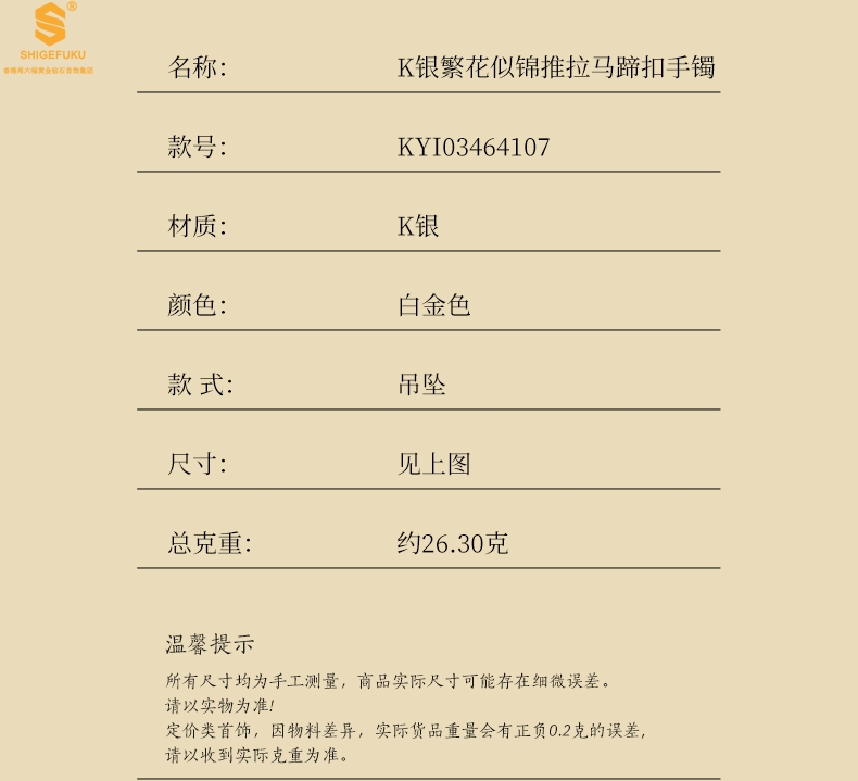 6、售后寄回物品,必须保证:首饰+礼品盒+礼品袋(如有)+国检证书+质保单+保养卡均寄回,丢失部分我们将按照售价扣除。