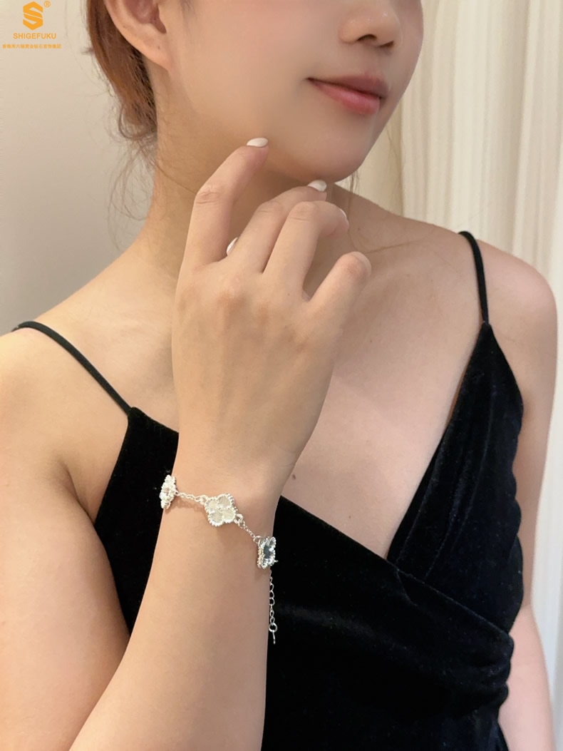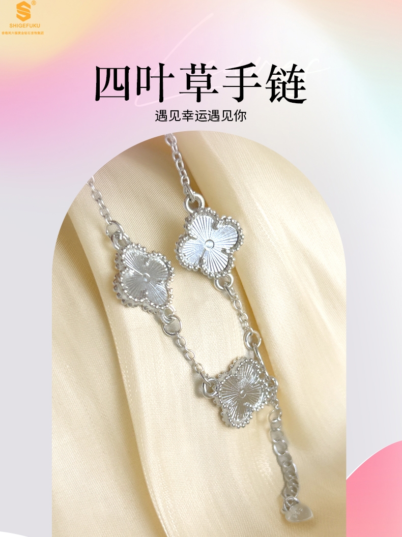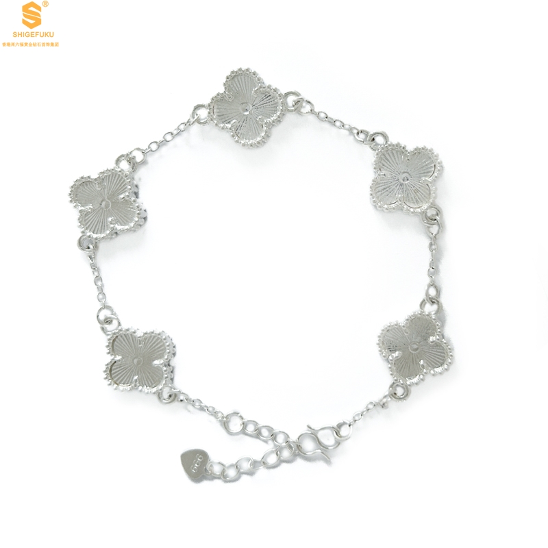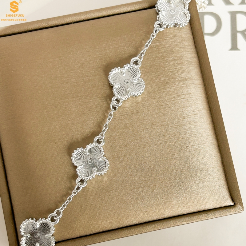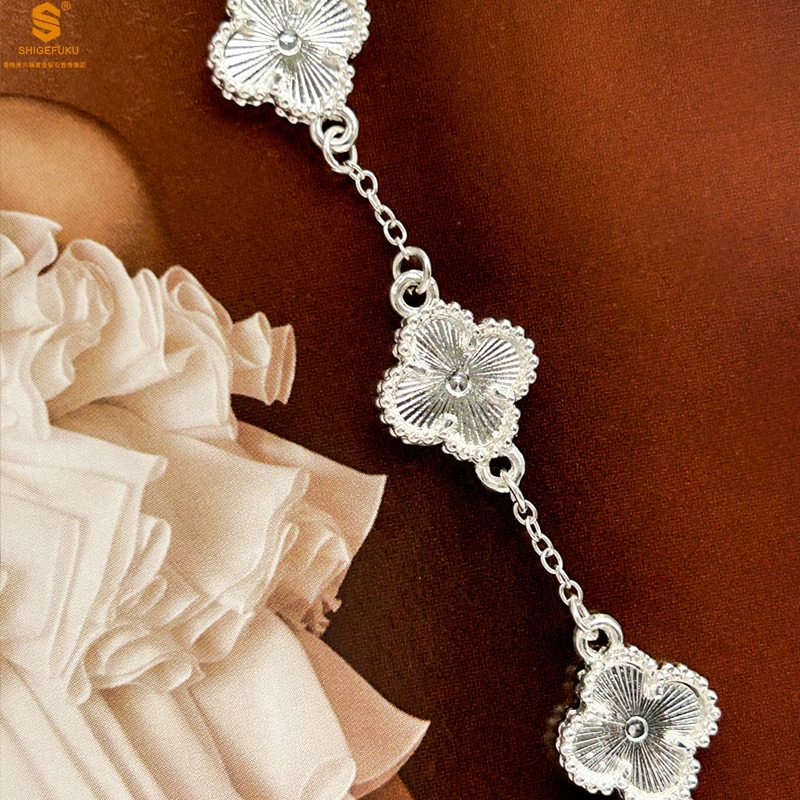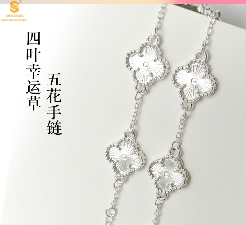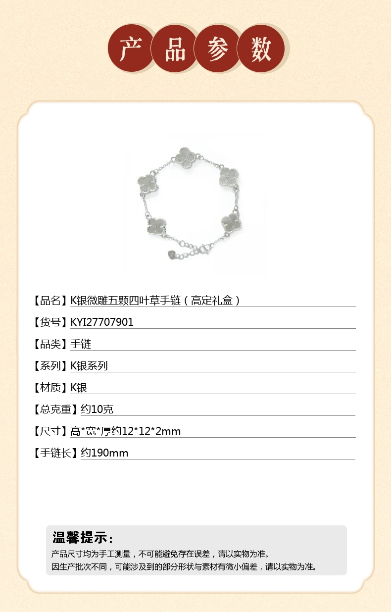 【品名】K银微雕五颗四叶草手链(高定礼盒)