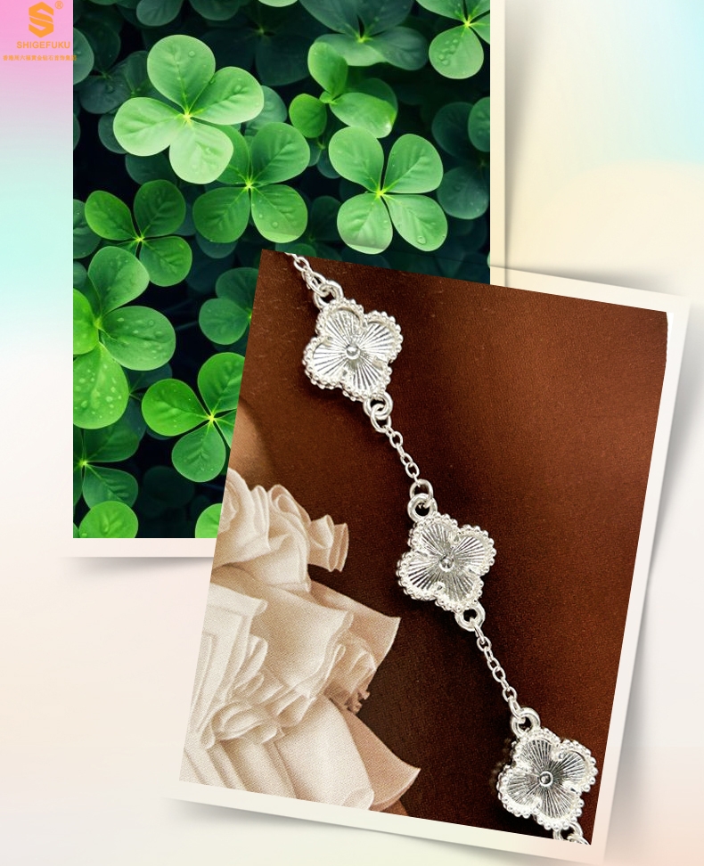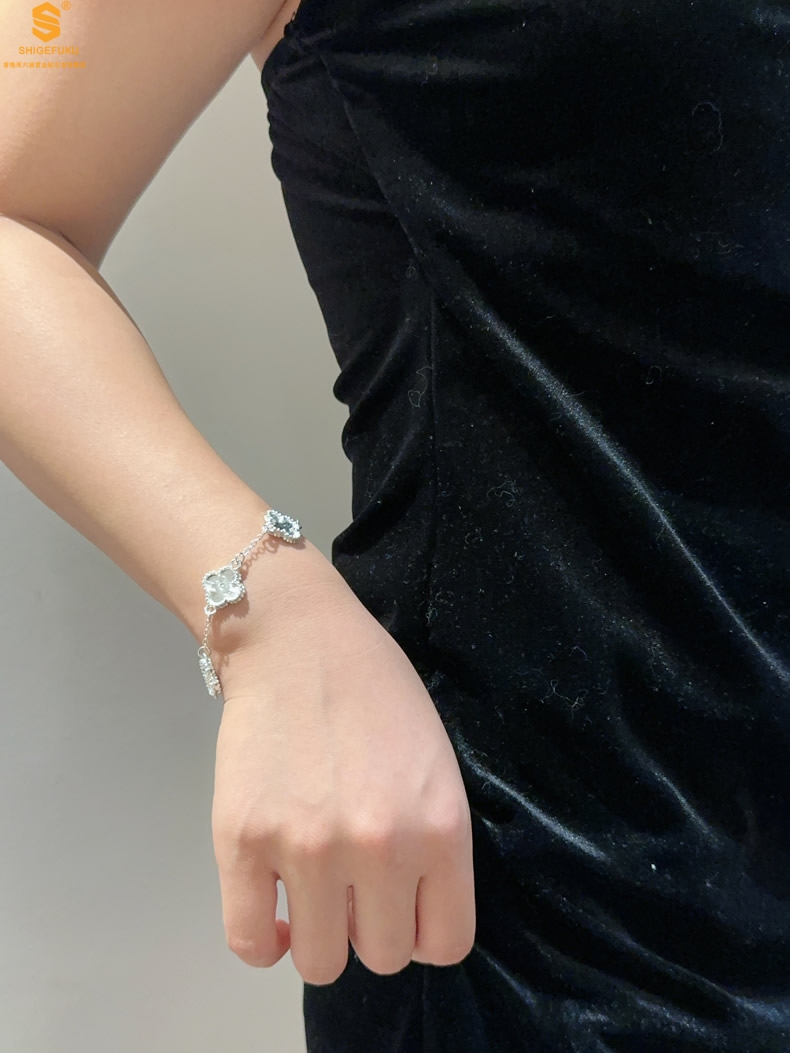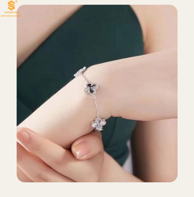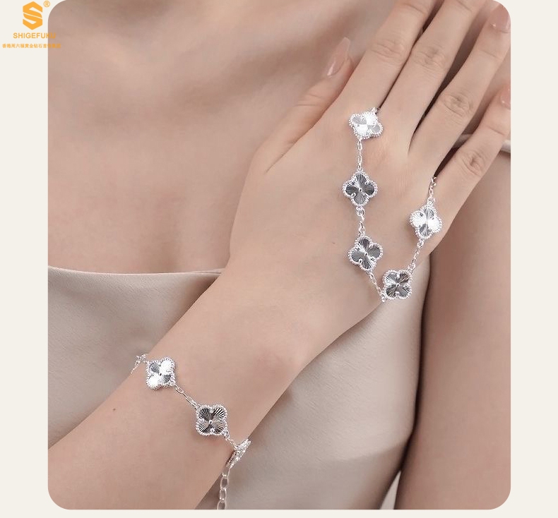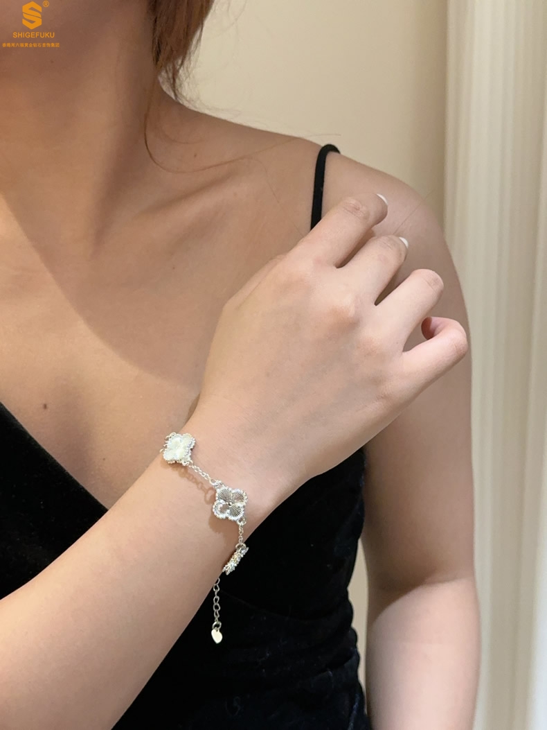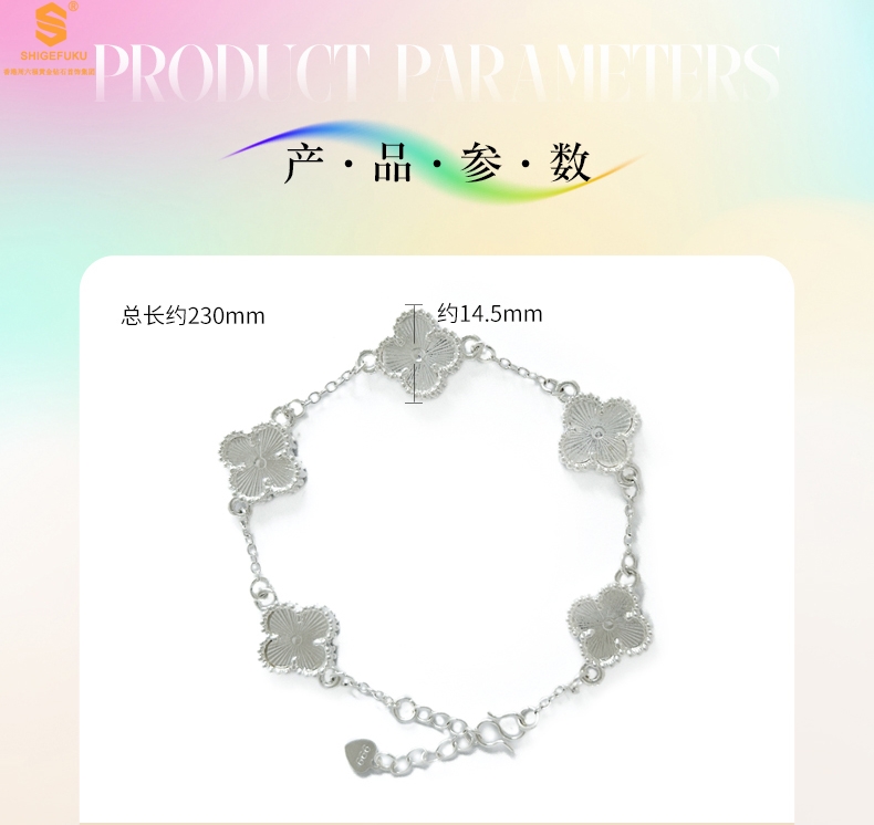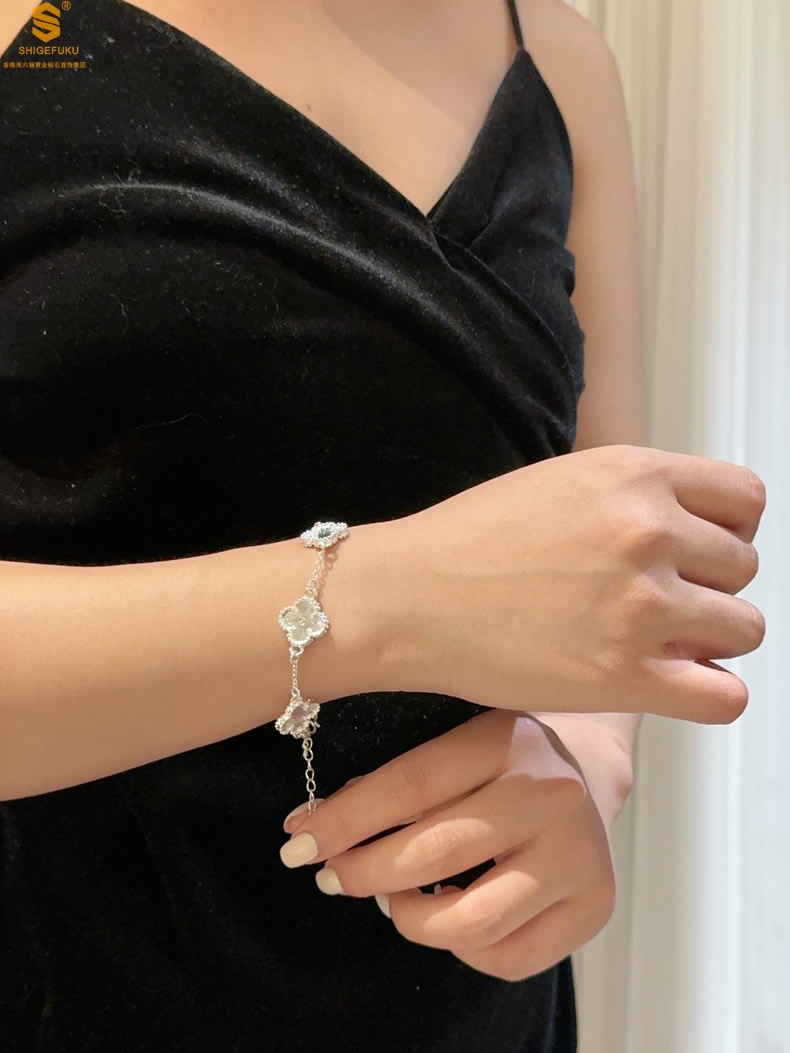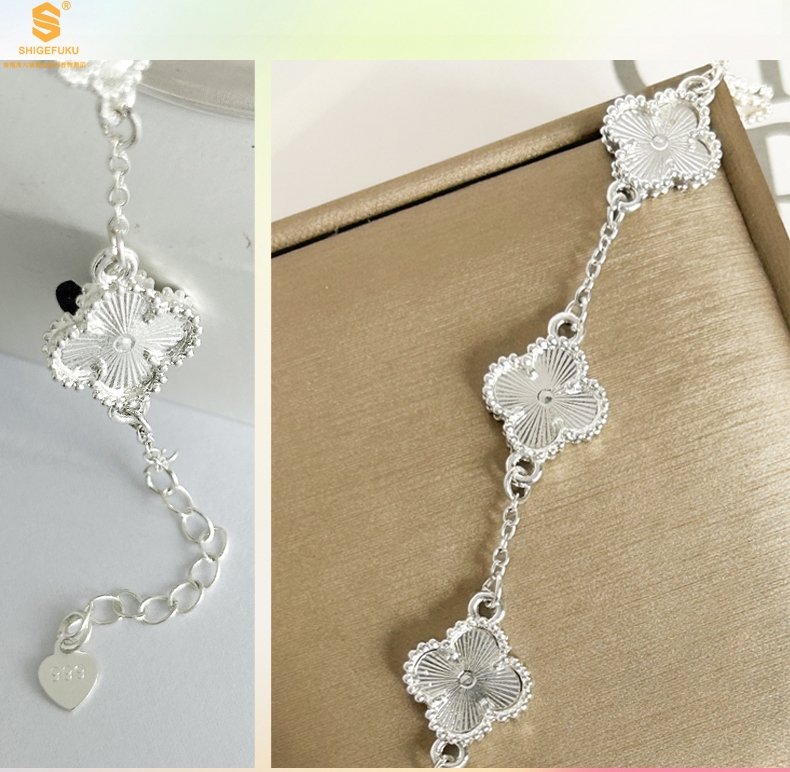 【品名】K银微雕五颗四叶草手链(高定礼盒)