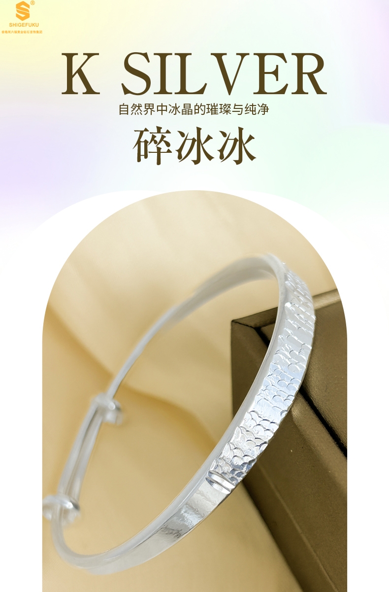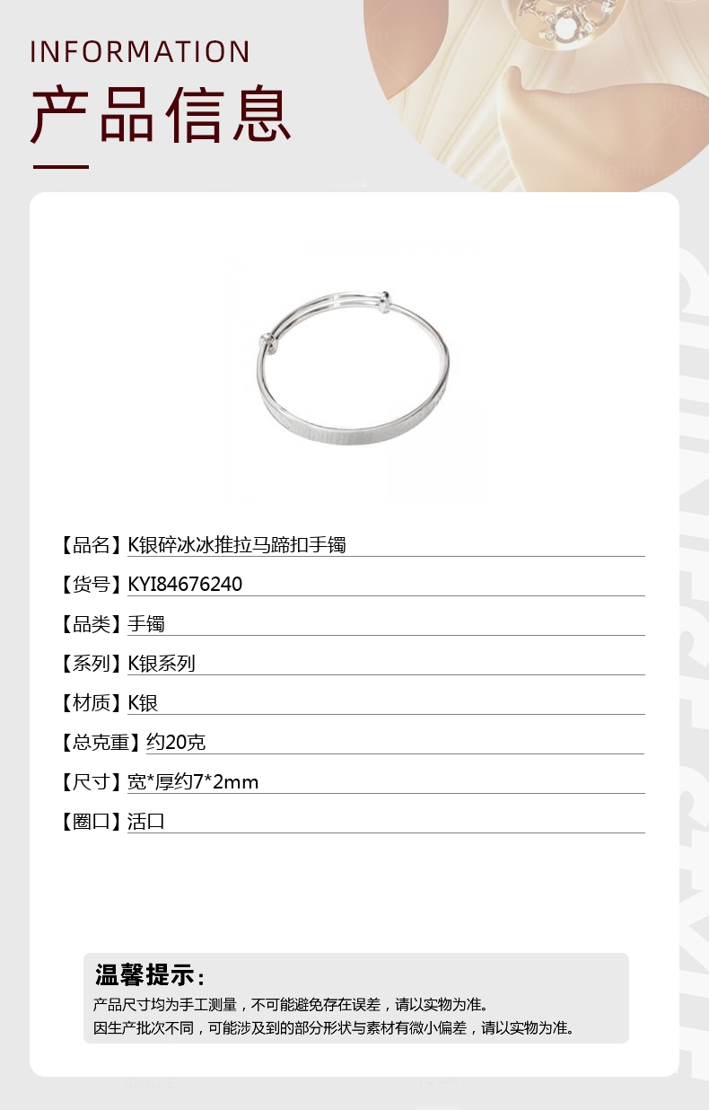 【品名】K银碎冰冰推拉马蹄扣手镯