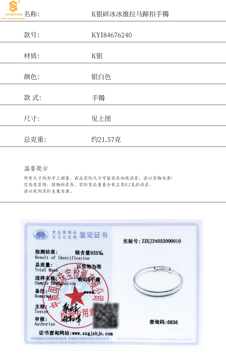 【套装包含】首饰+礼品盒+礼品袋+国检证书+质保单+价签