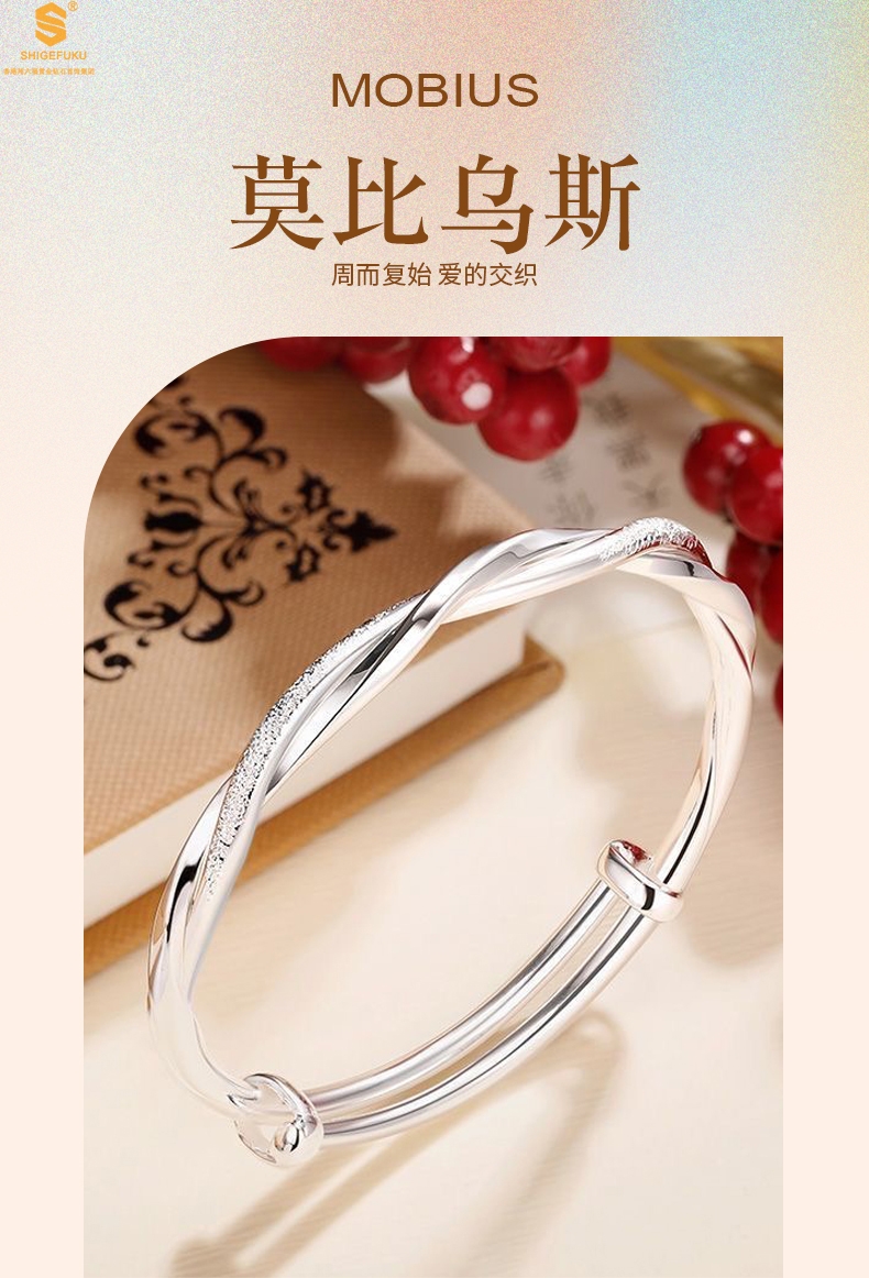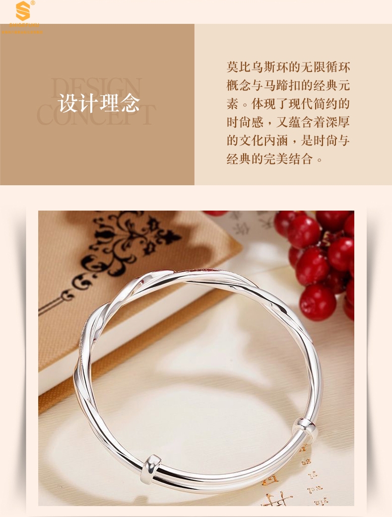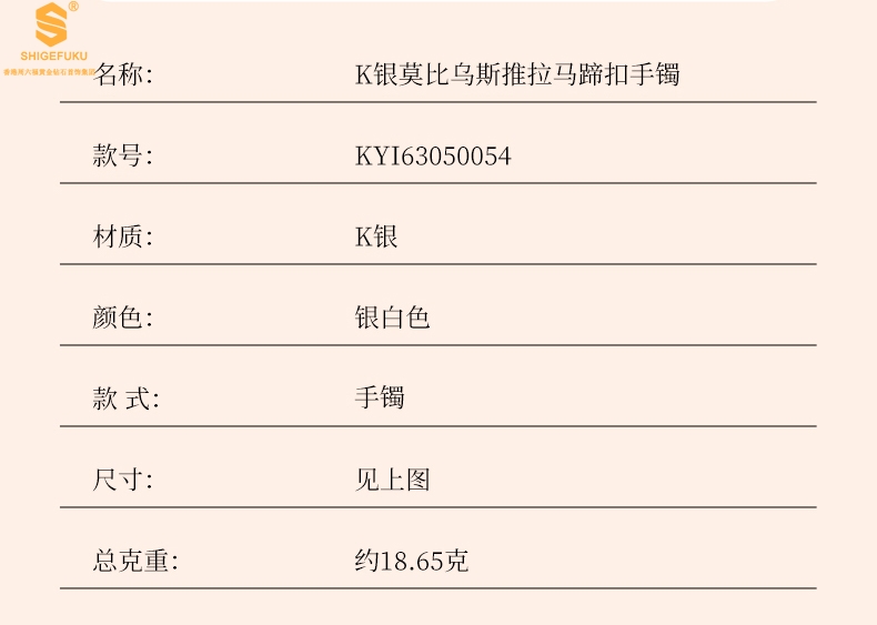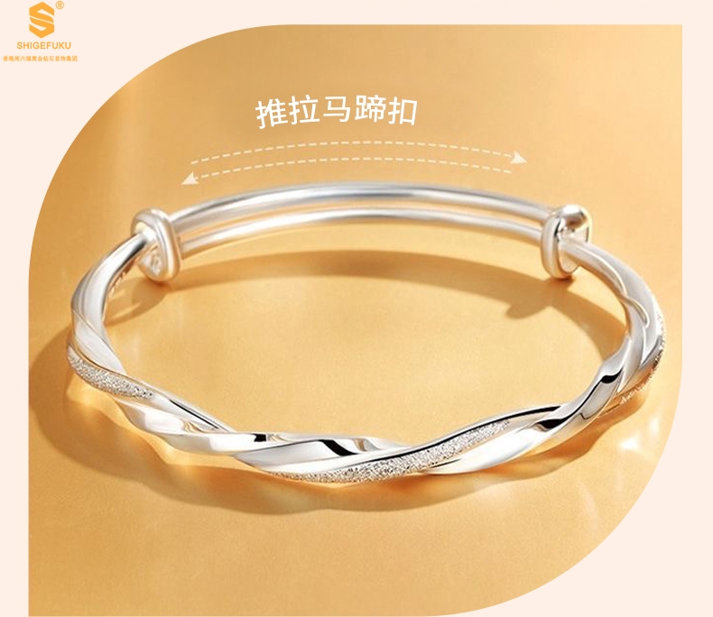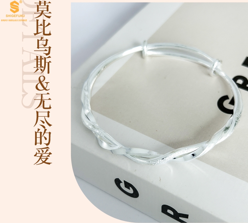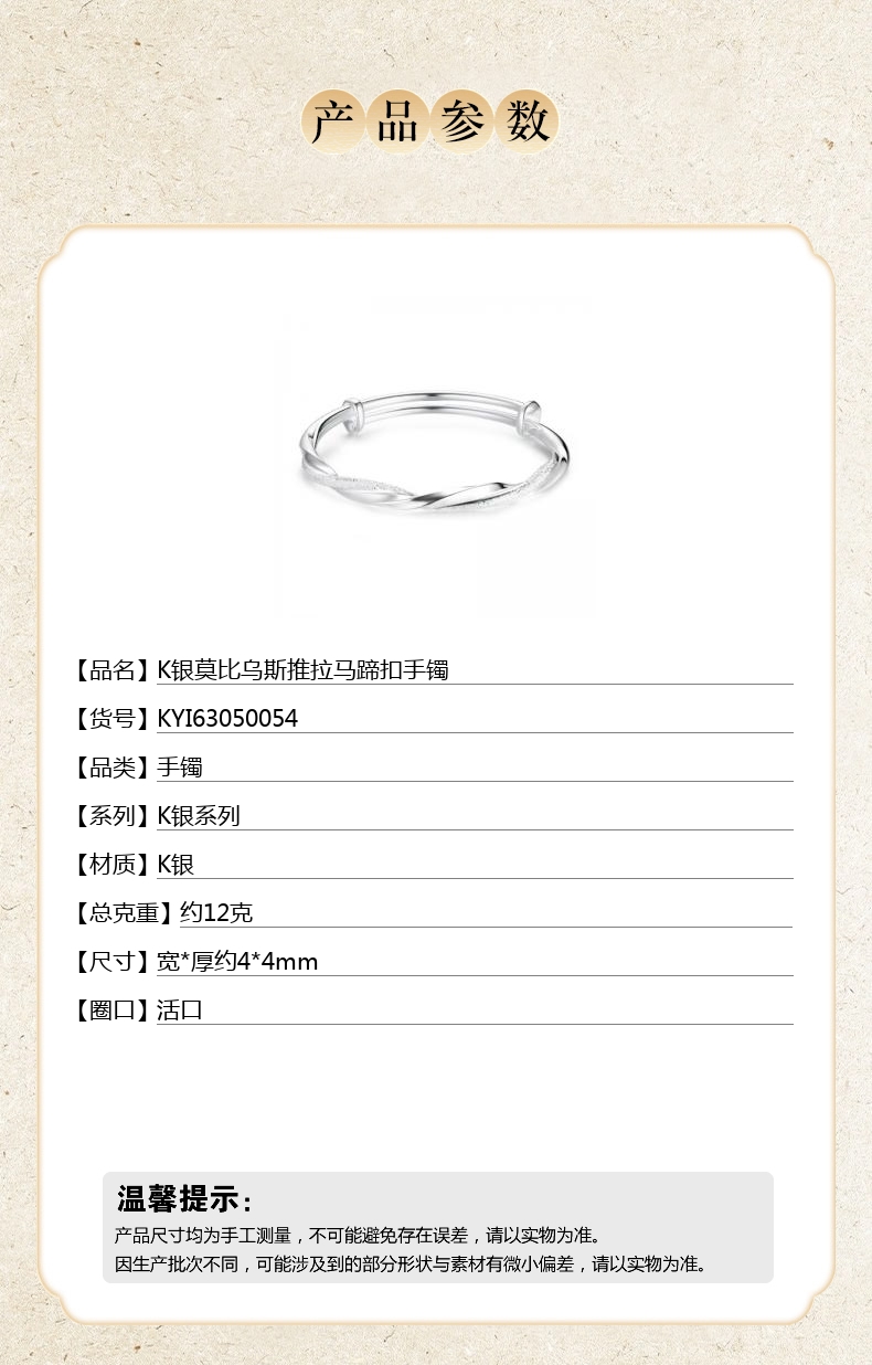 【品名】K银莫比乌斯推拉马蹄扣手镯