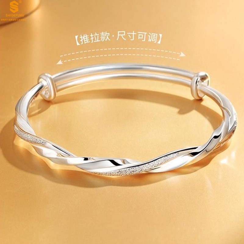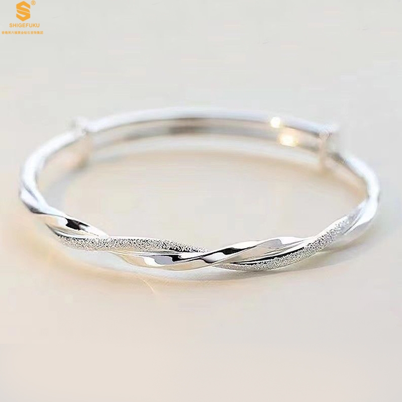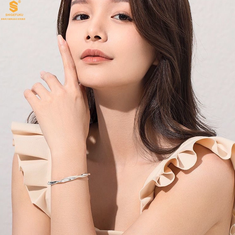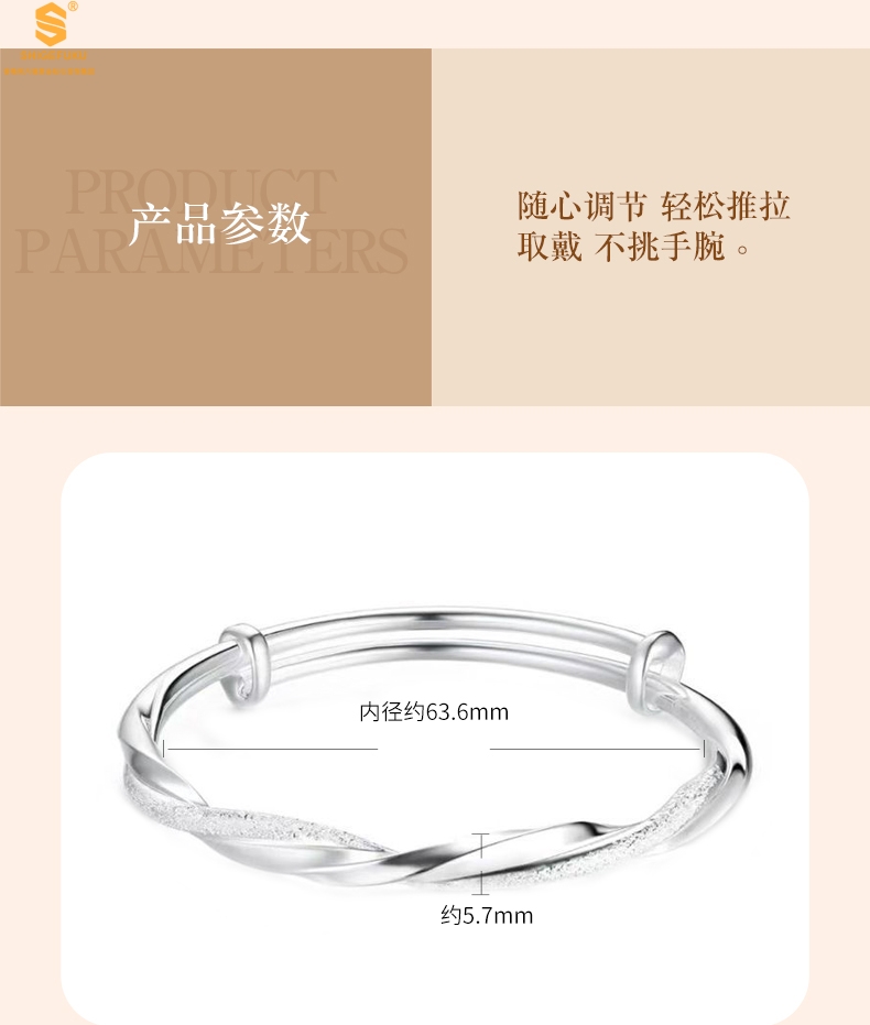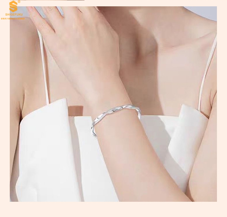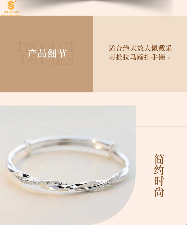 【品名】K银莫比乌斯推拉马蹄扣手镯