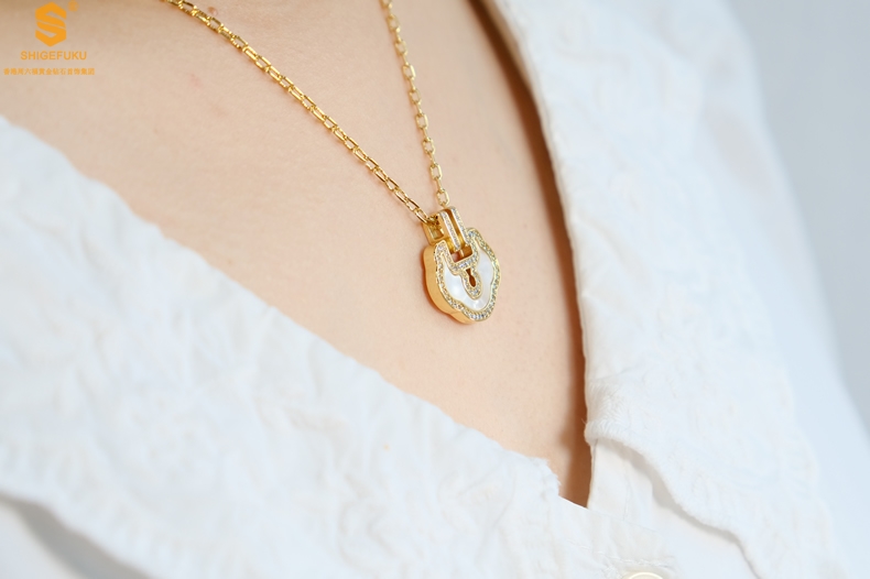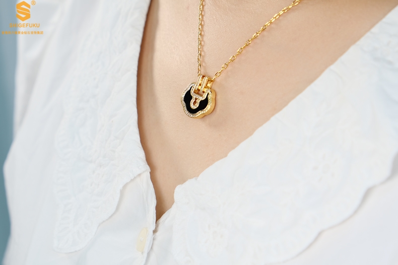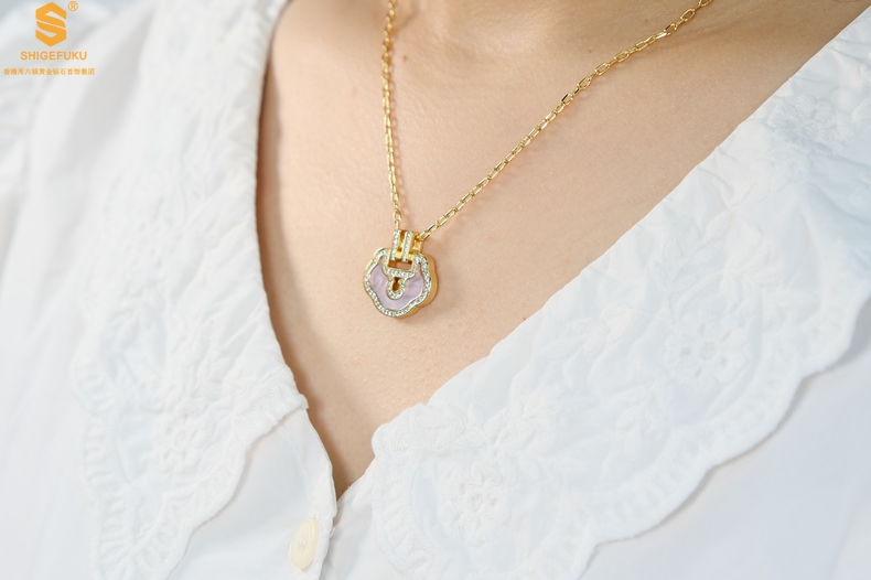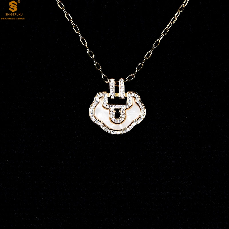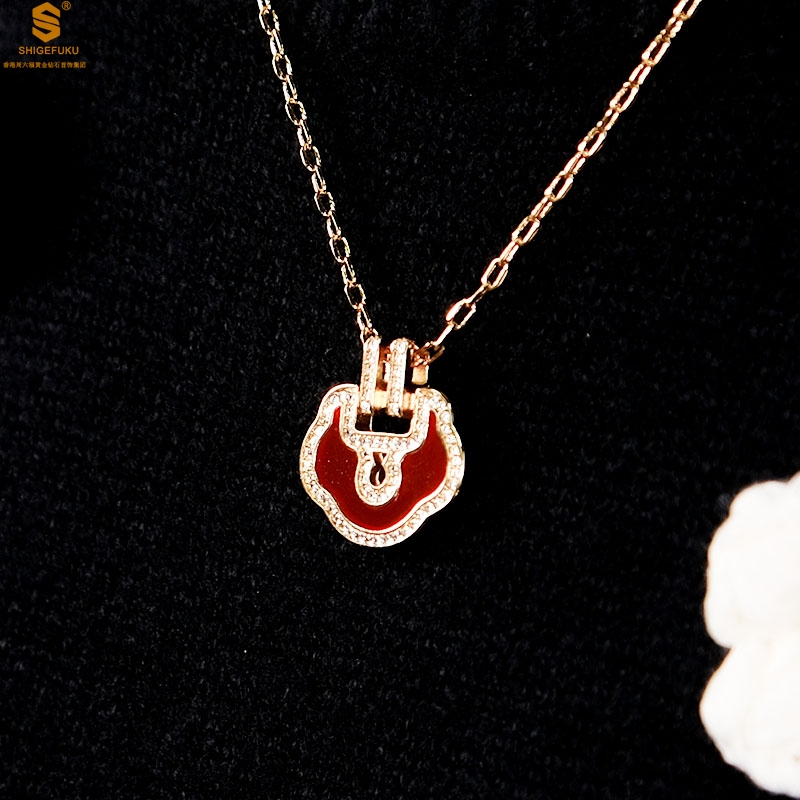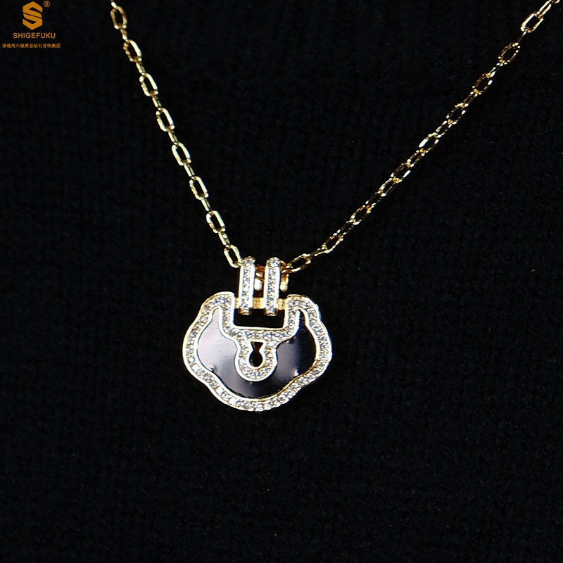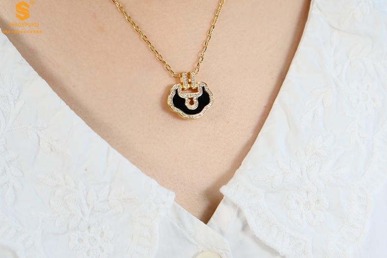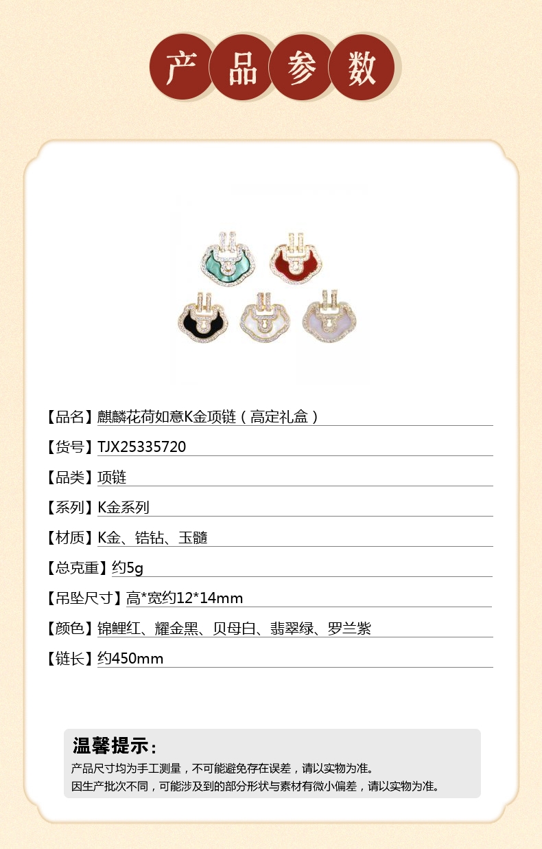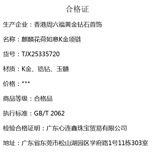 【品名】麒麟花荷如意K金项链(高定礼盒)