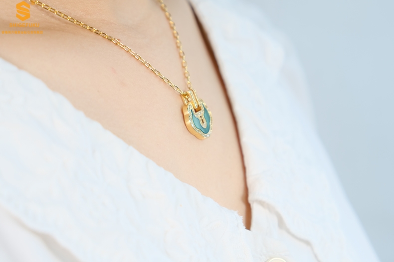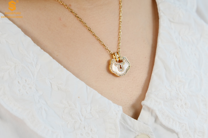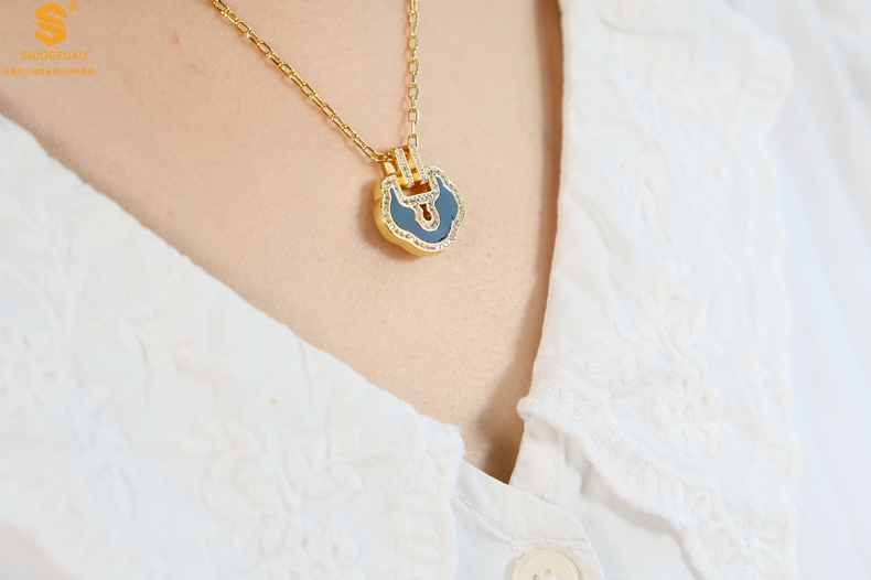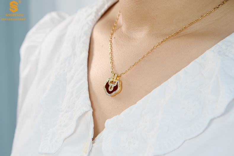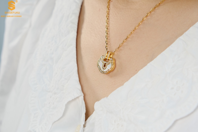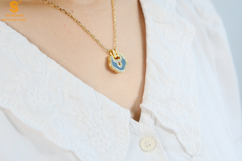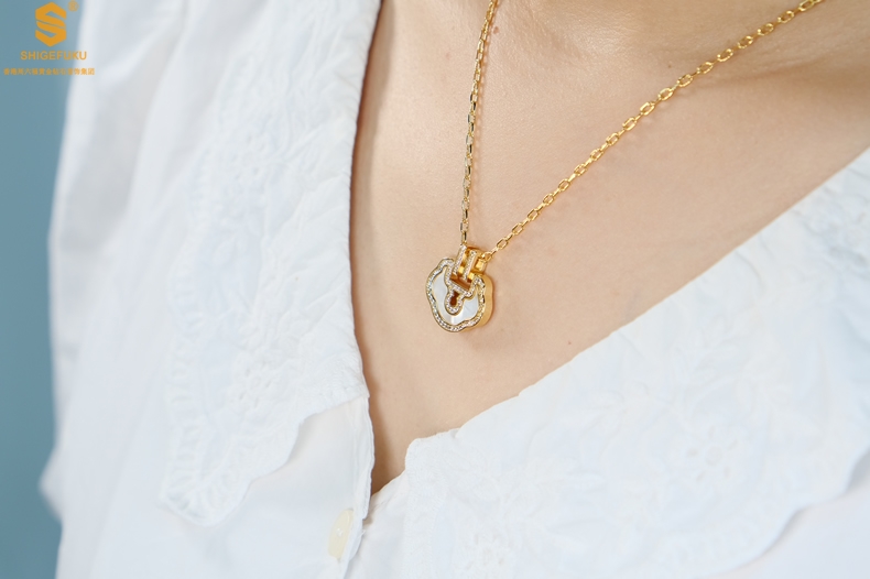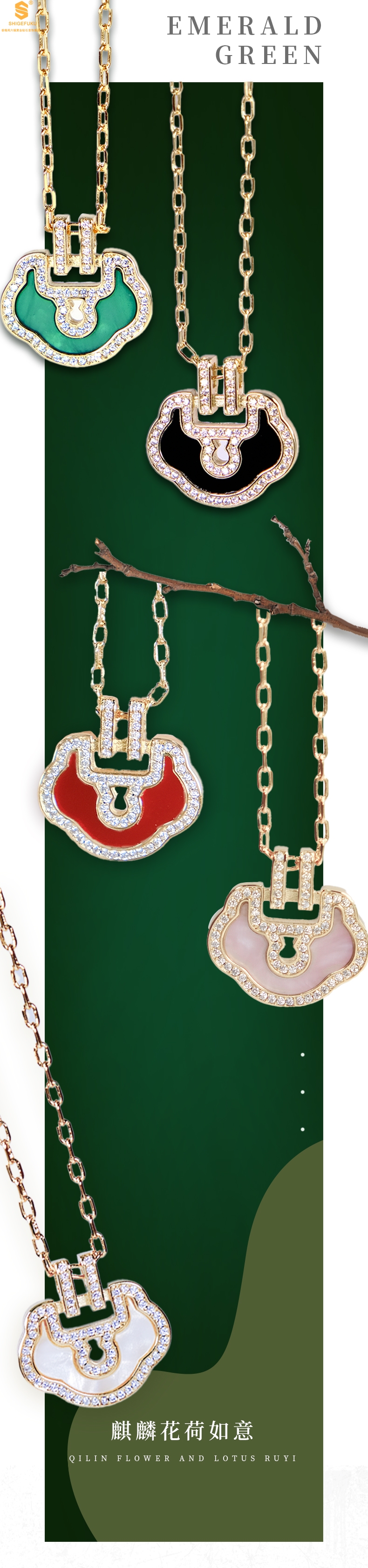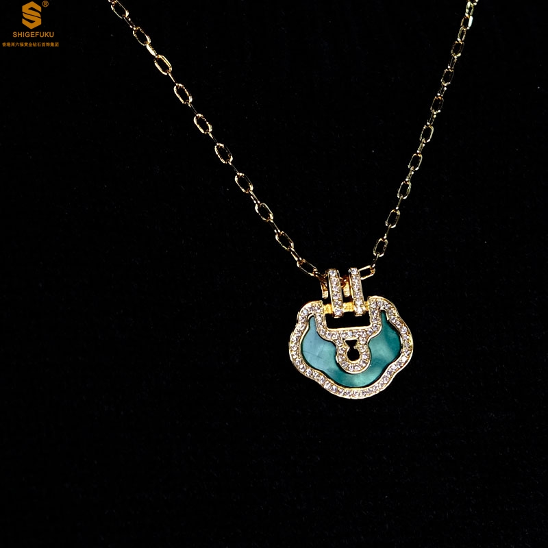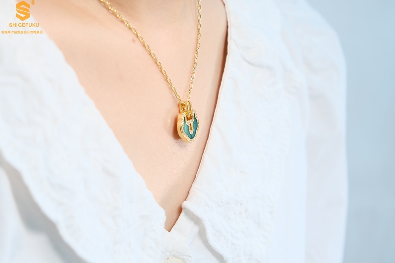 【品名】麒麟花荷如意K金项链(高定礼盒)