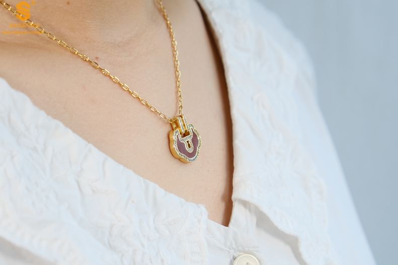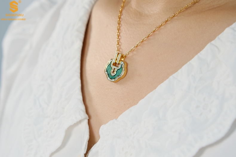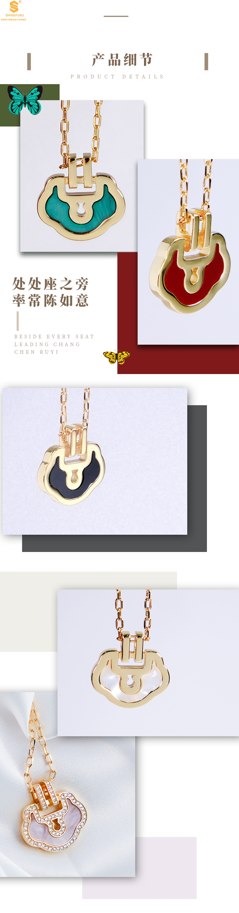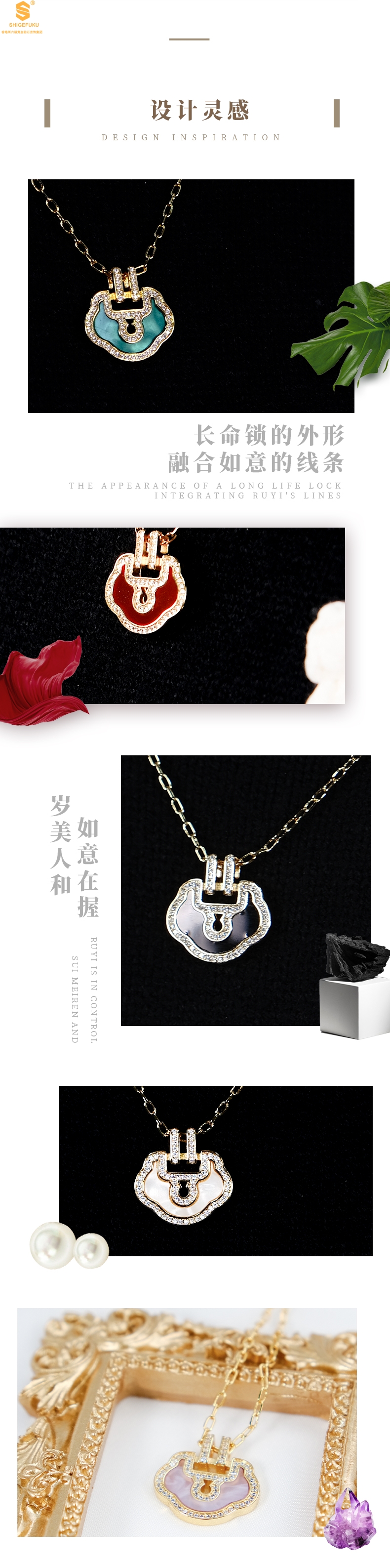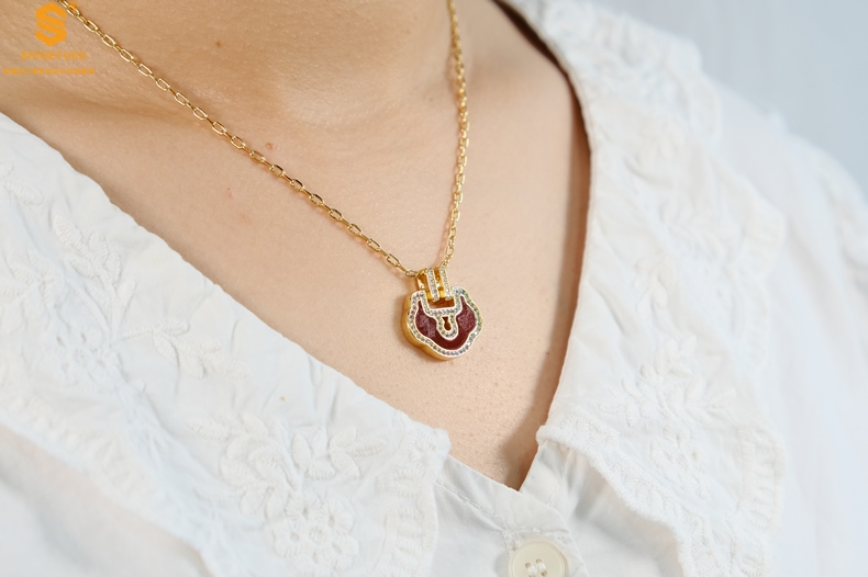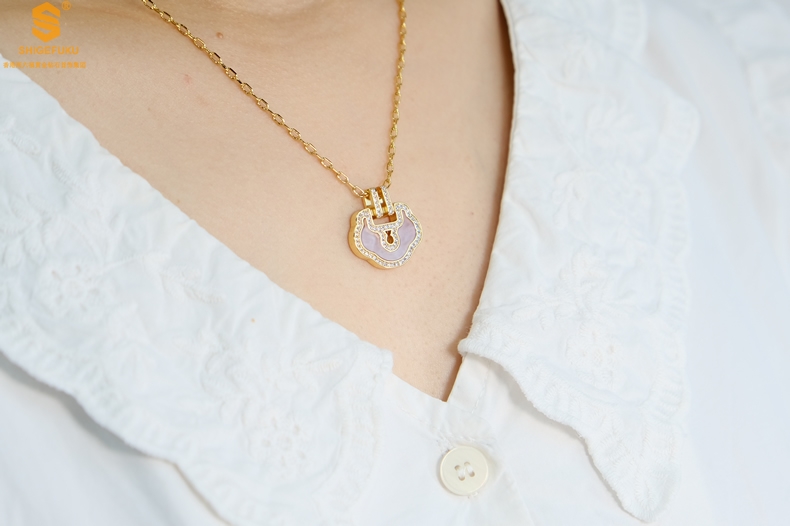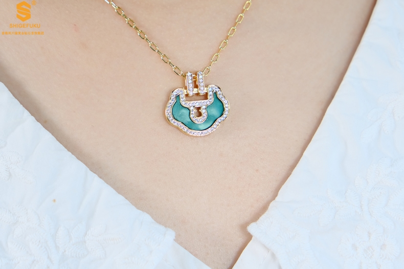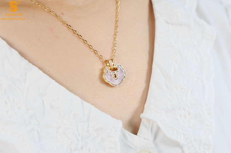 【品名】麒麟花荷如意K金项链(高定礼盒)