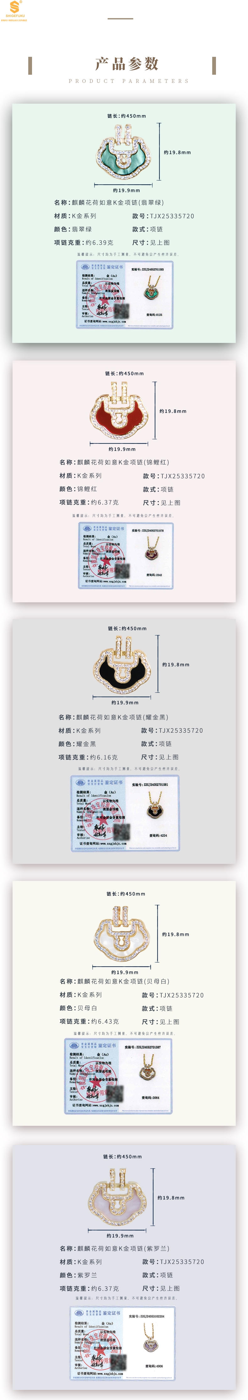 颜色:锦鲤红、耀金黑、贝母白、翡翠绿、罗兰紫