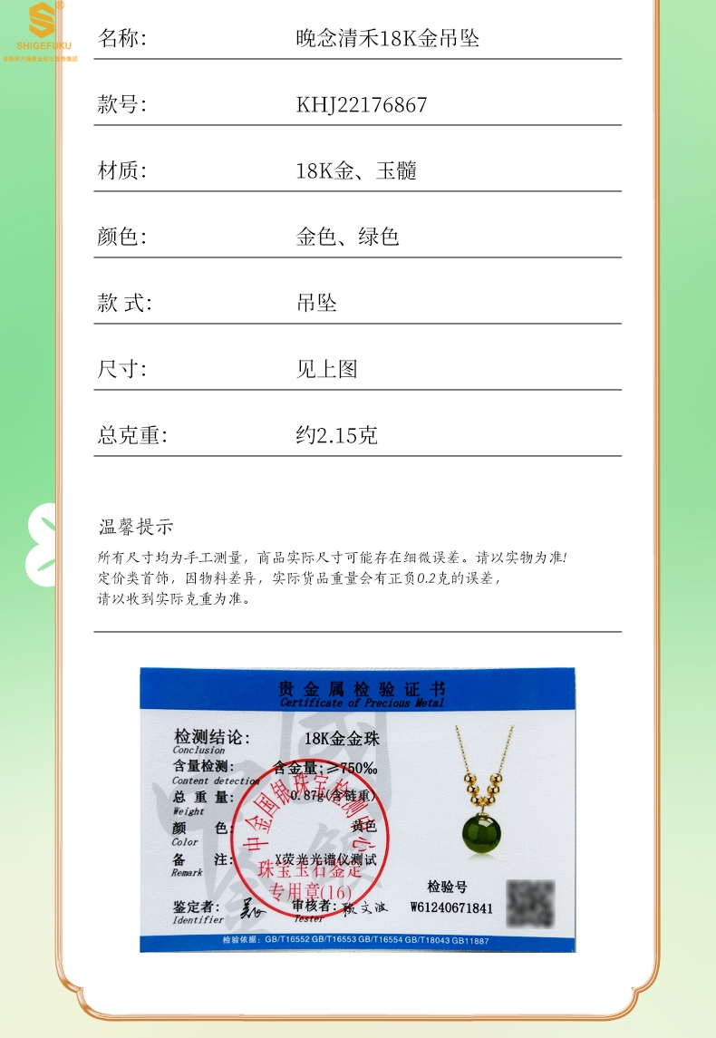 【套装包含】首饰+礼品盒+礼品袋+国检证书+质保单+价签