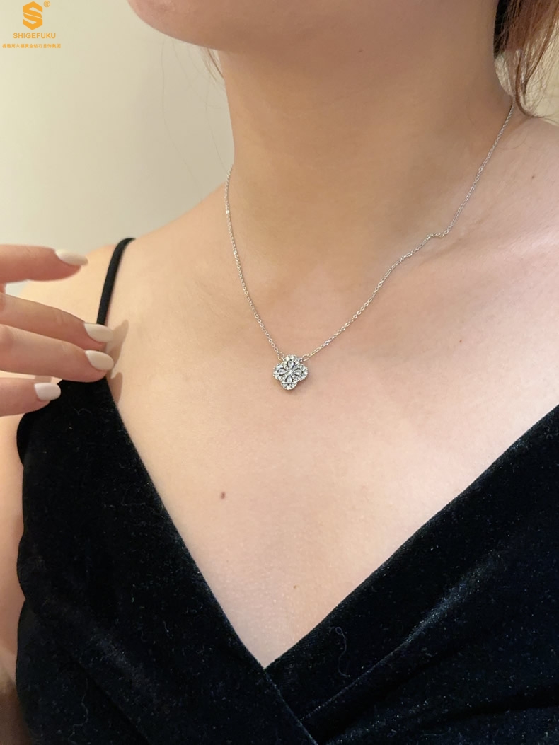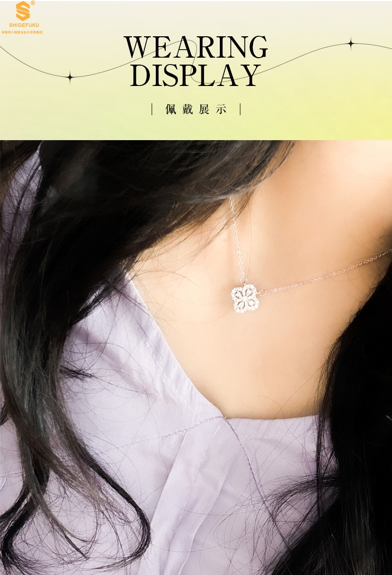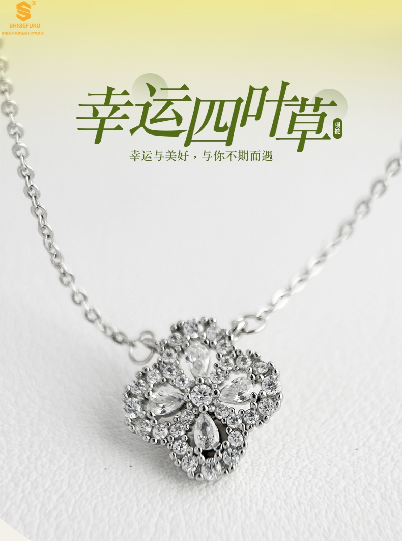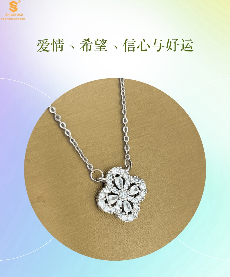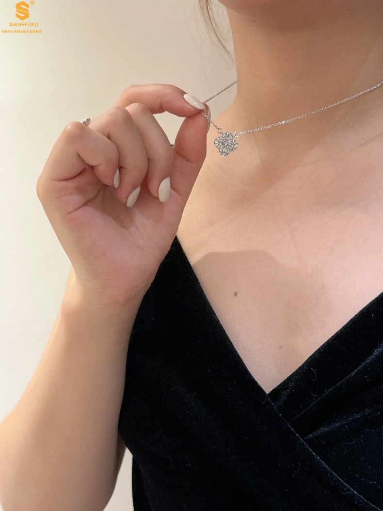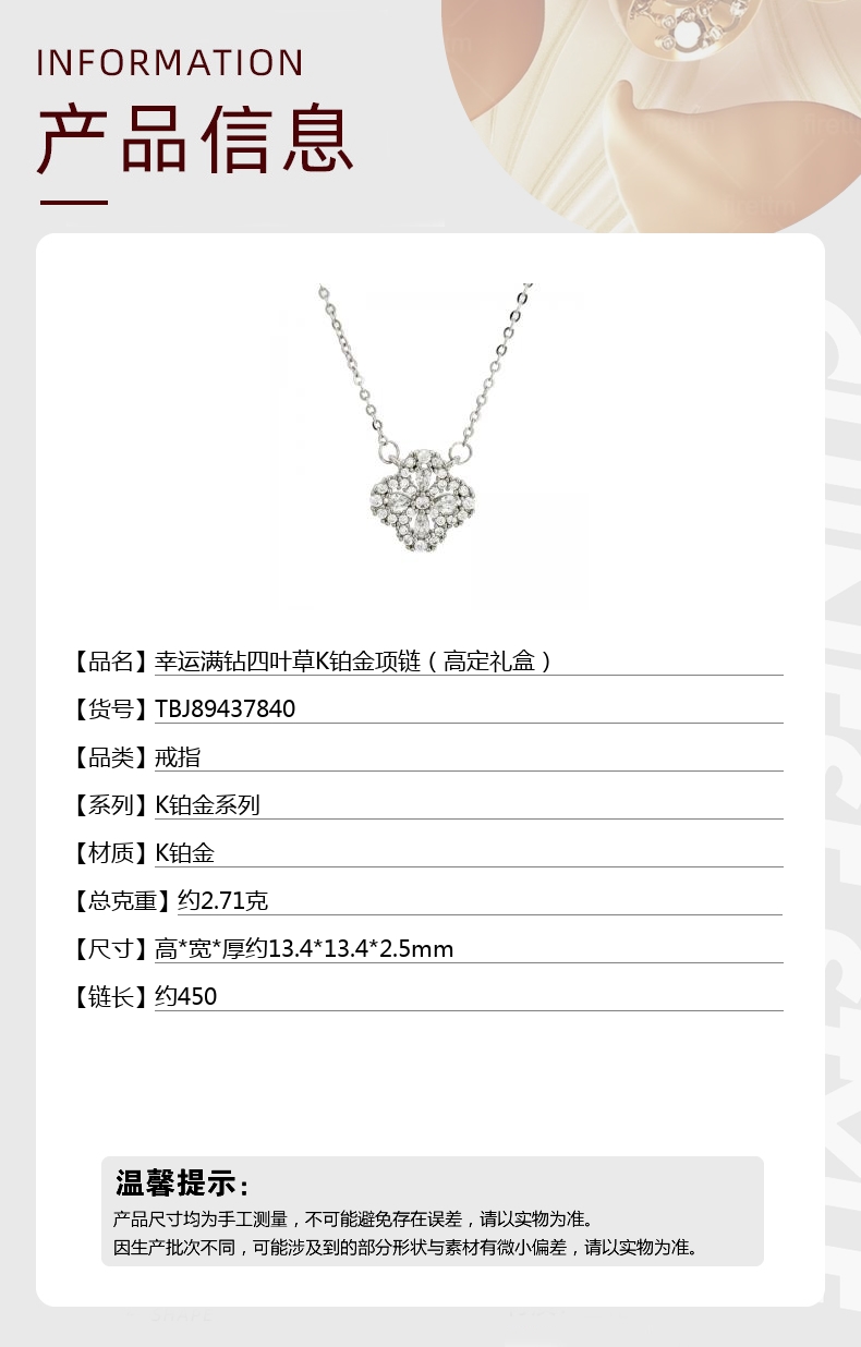 【品名】幸运满钻四叶草K铂金项链(高定礼盒)