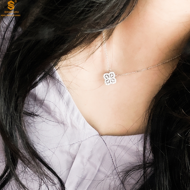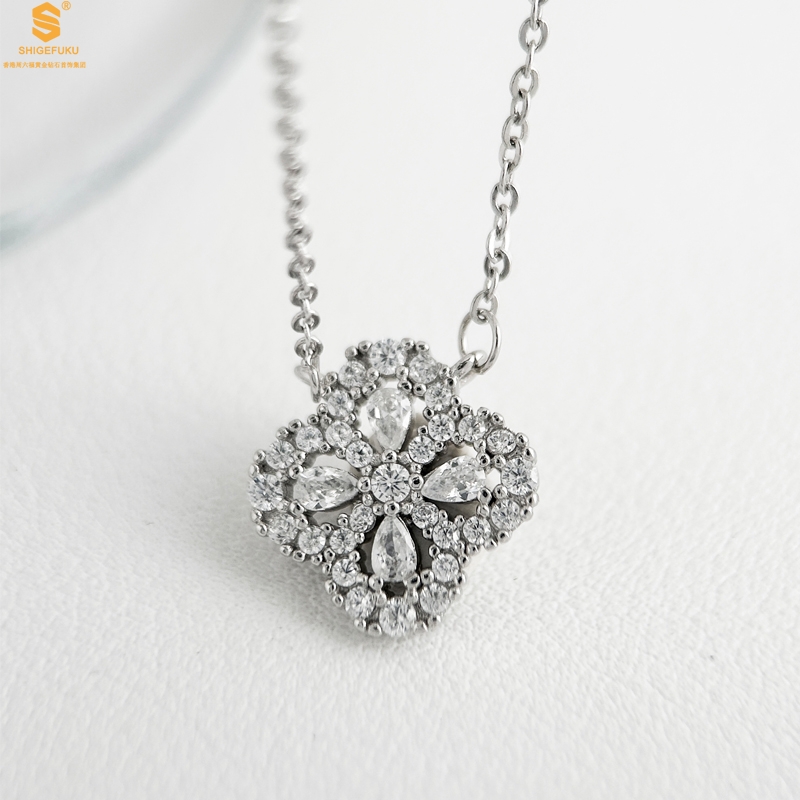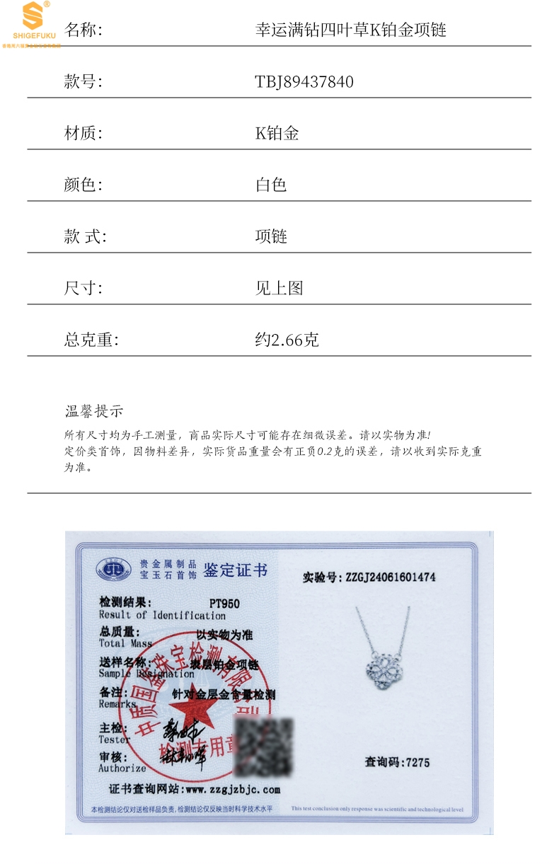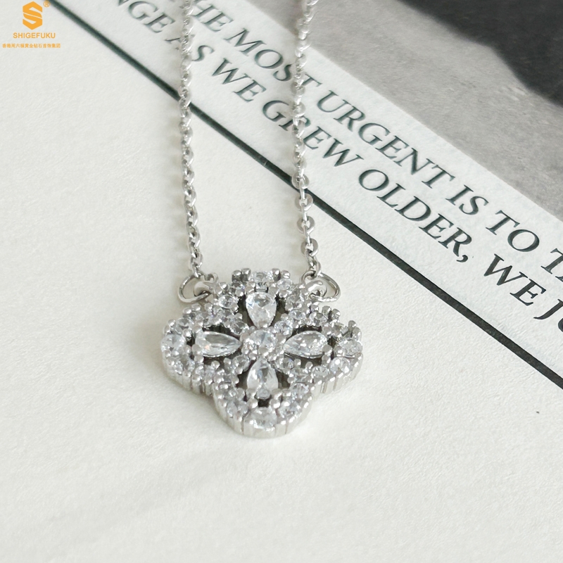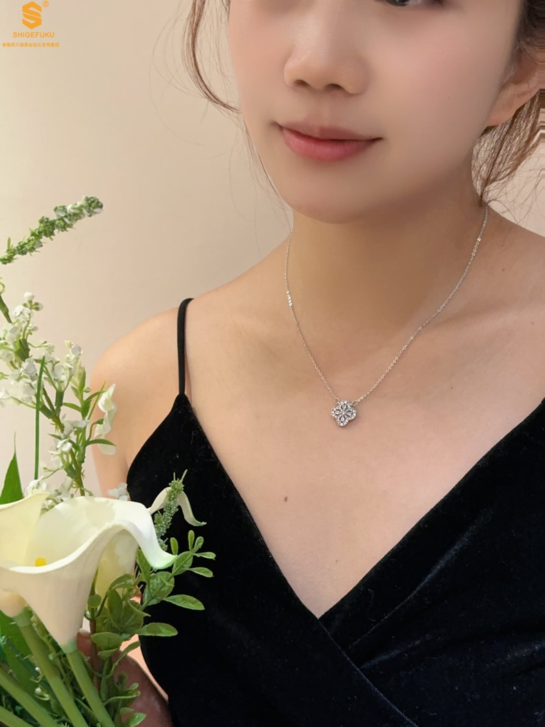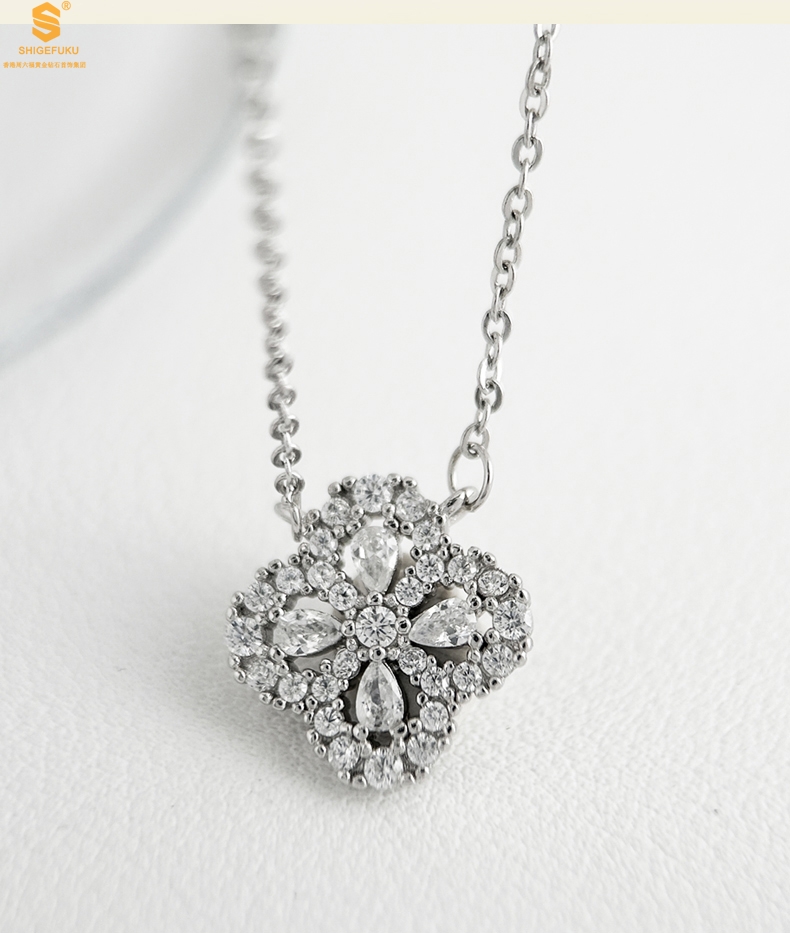 【品名】幸运满钻四叶草K铂金项链(高定礼盒)