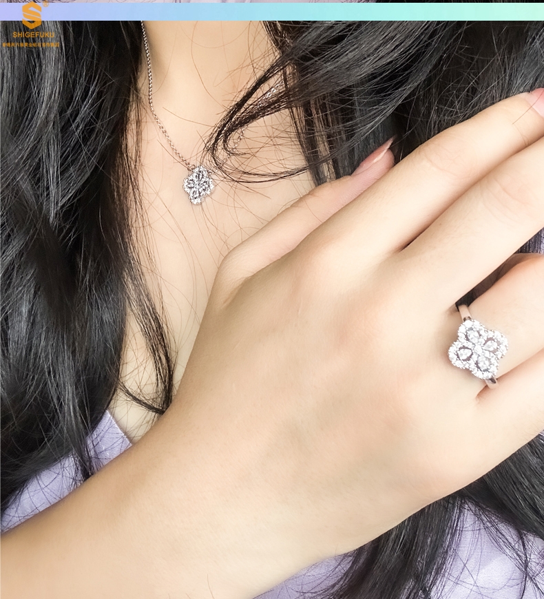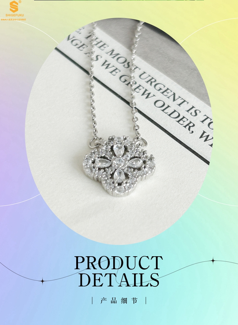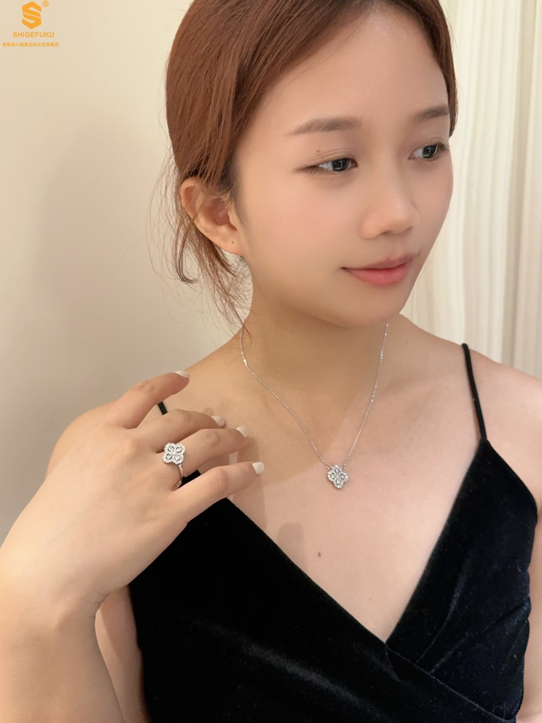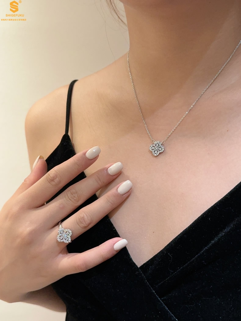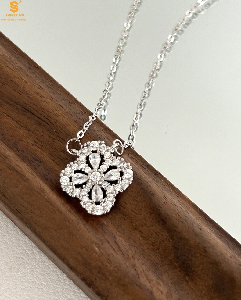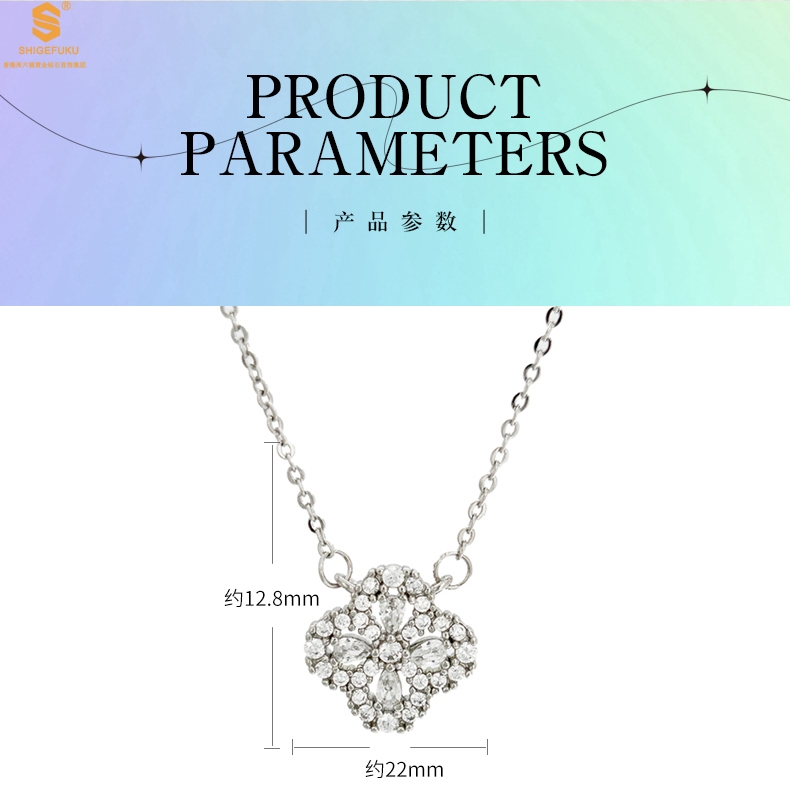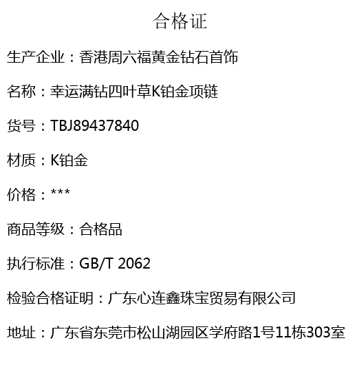 【品名】幸运满钻四叶草K铂金项链(高定礼盒)