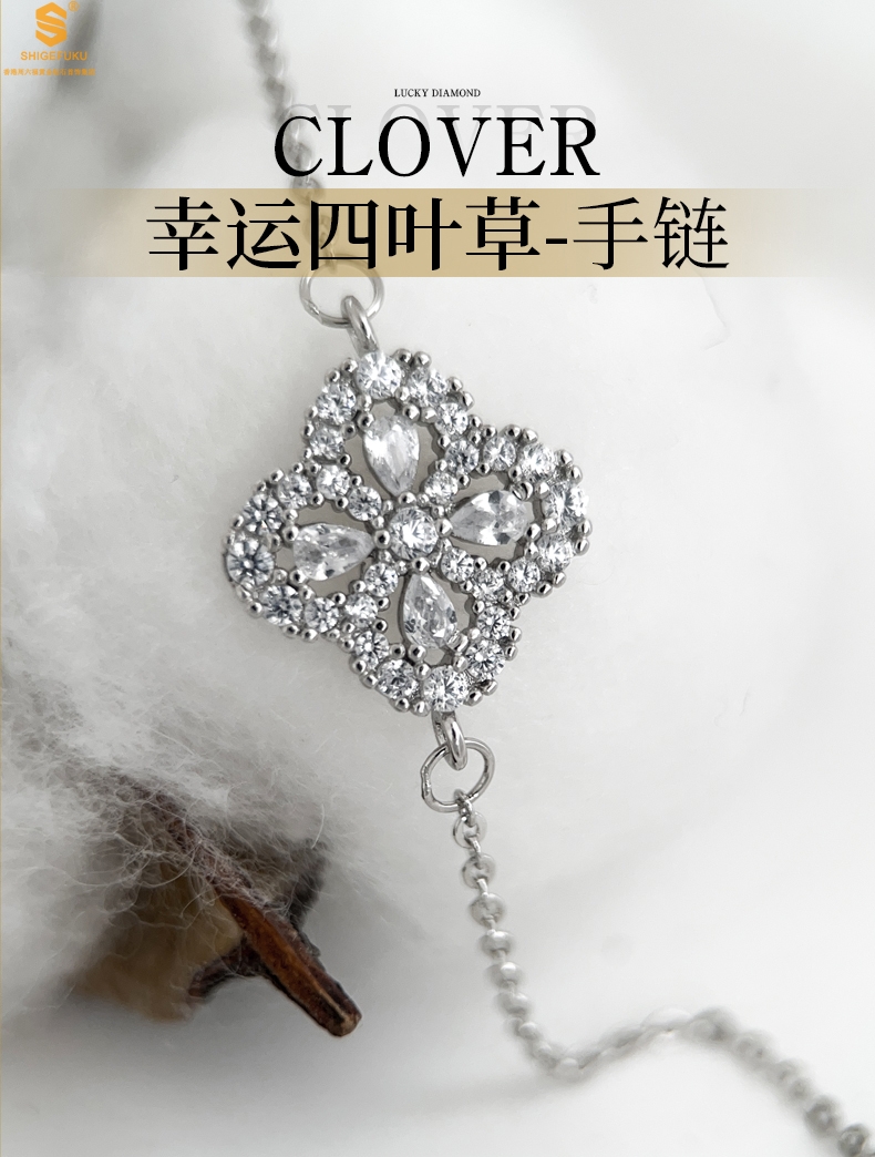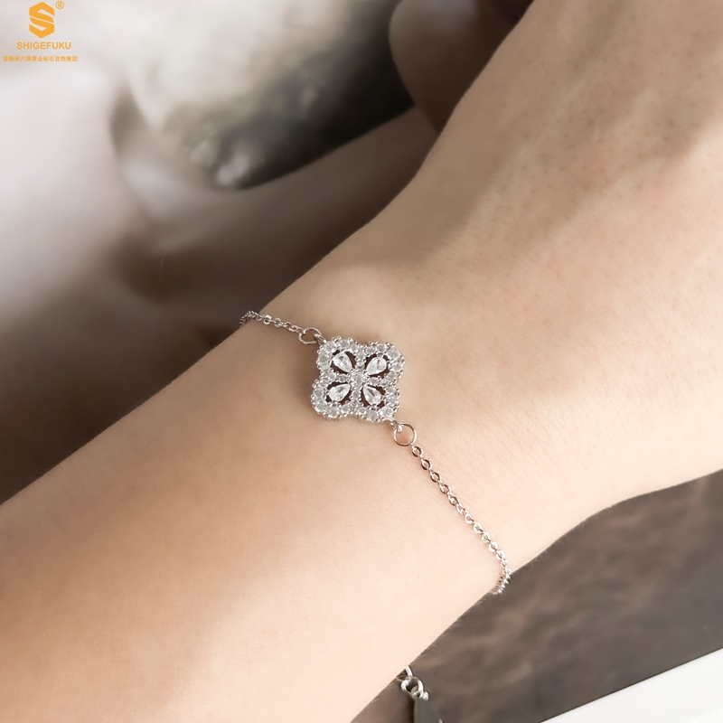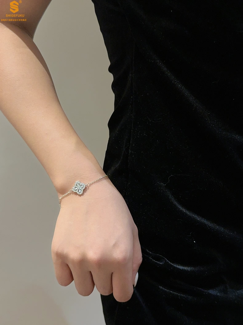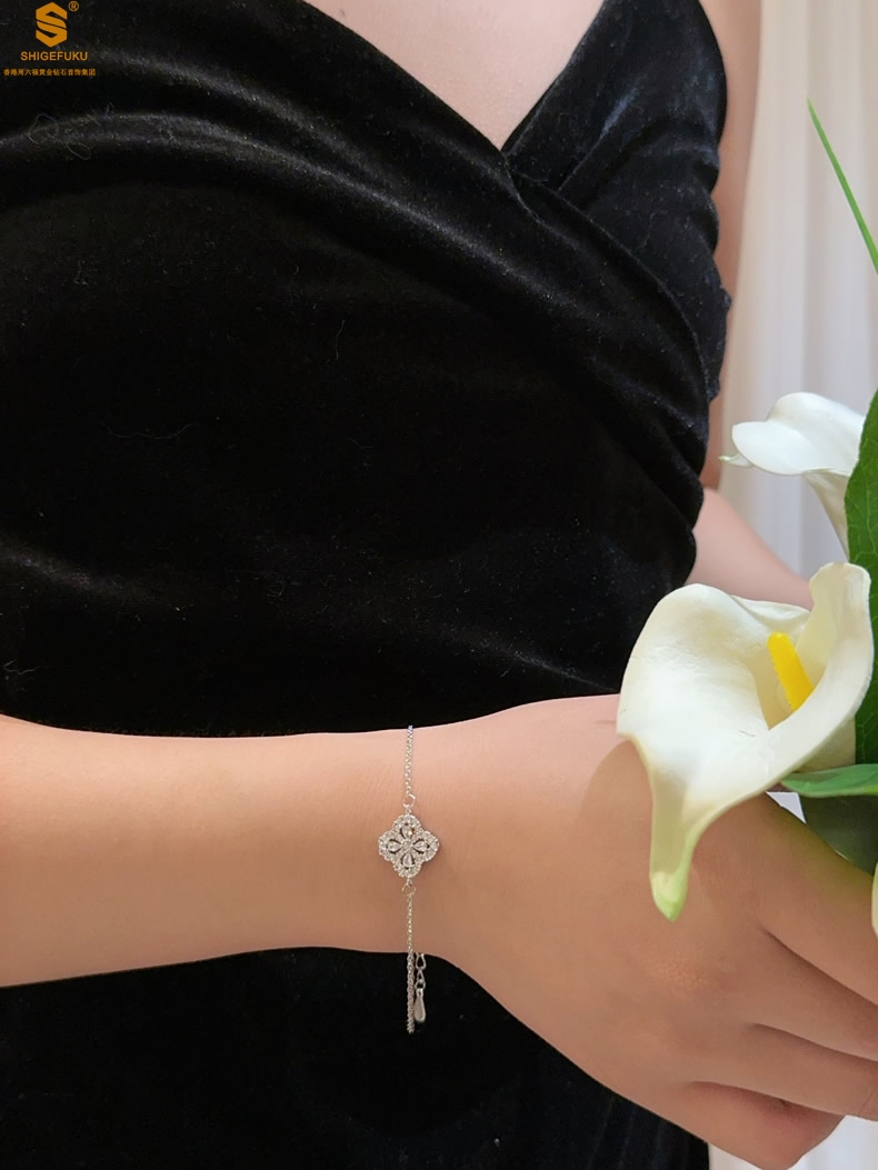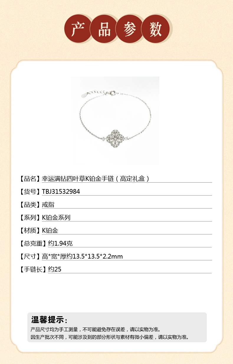 【品名】幸运满钻四叶草K铂金手链(高定礼盒)
