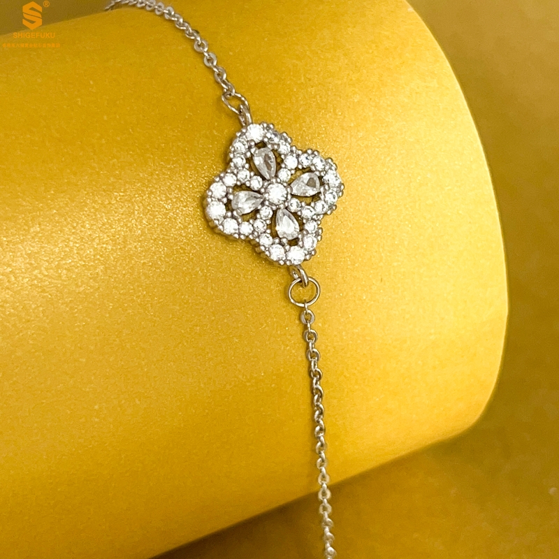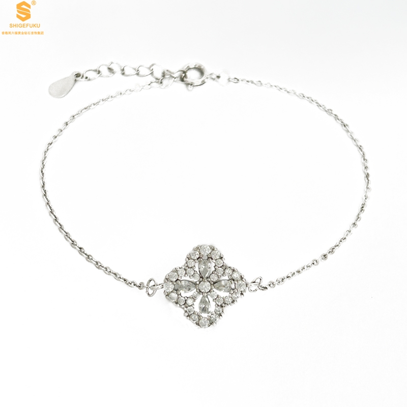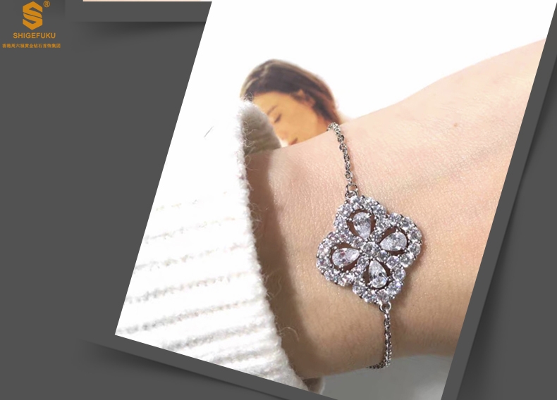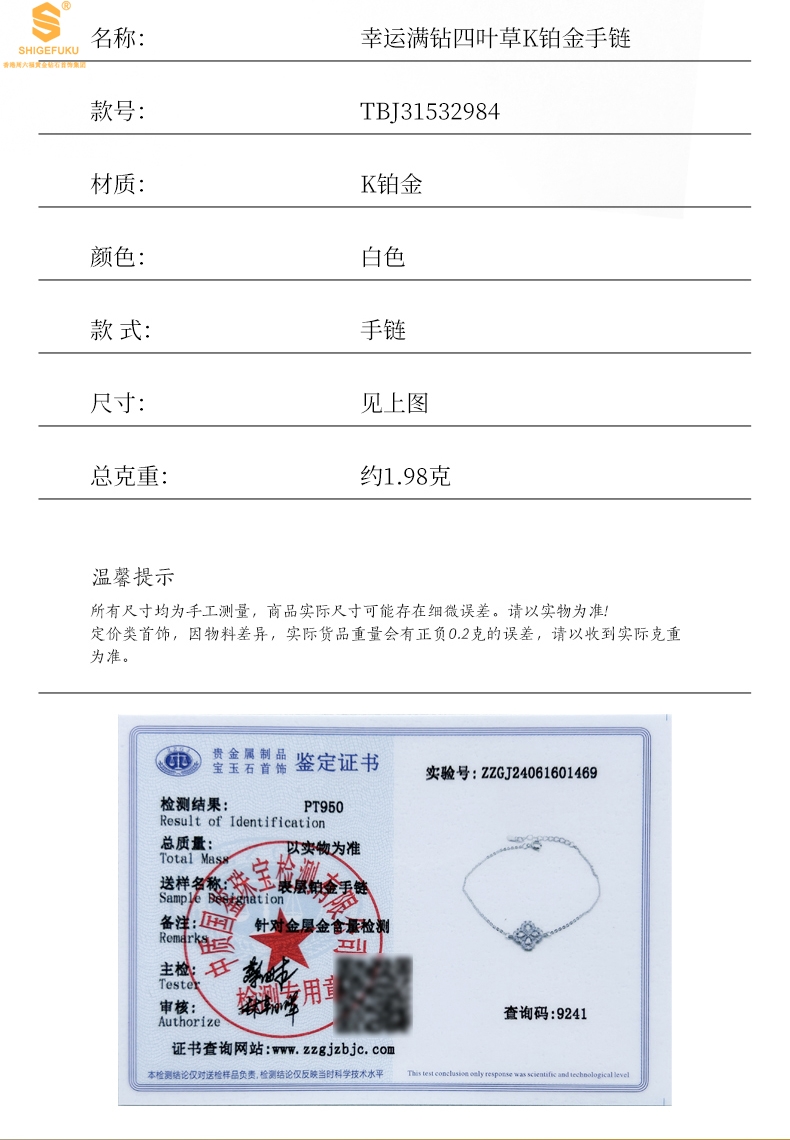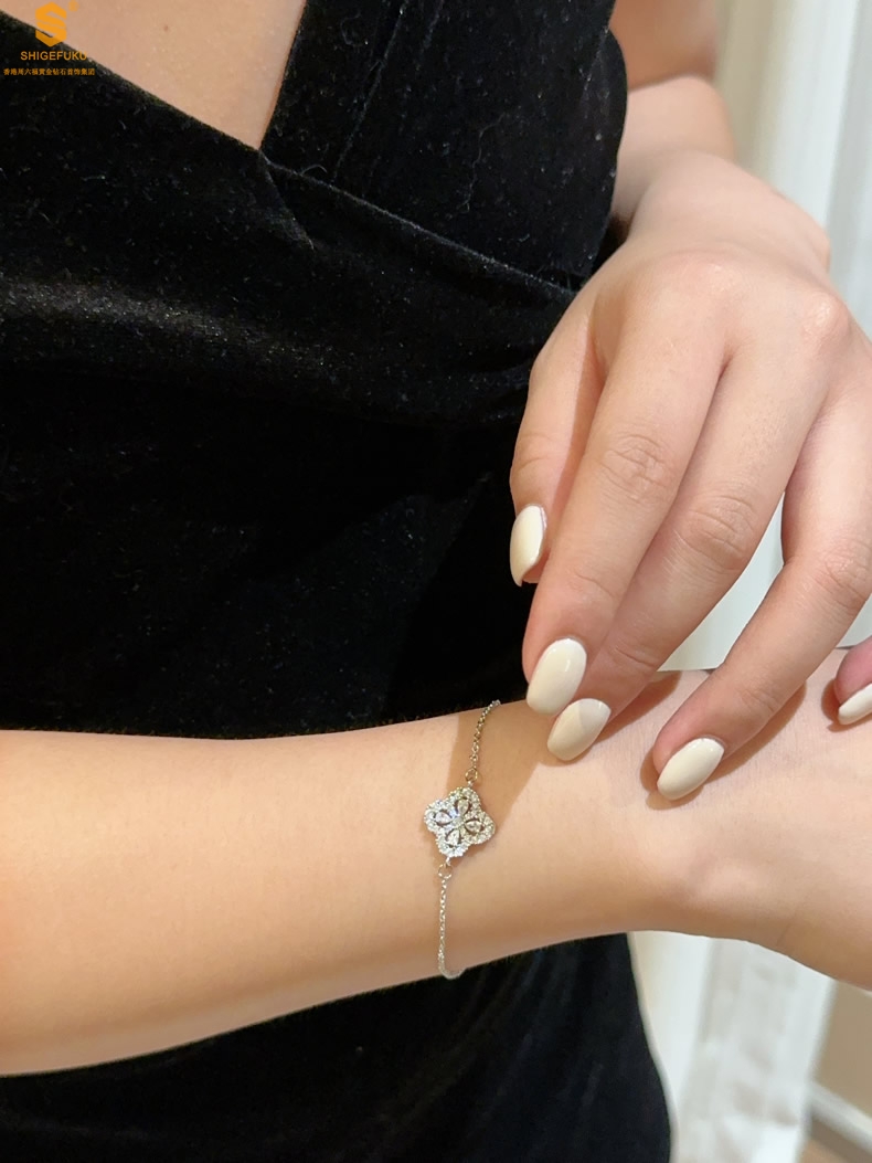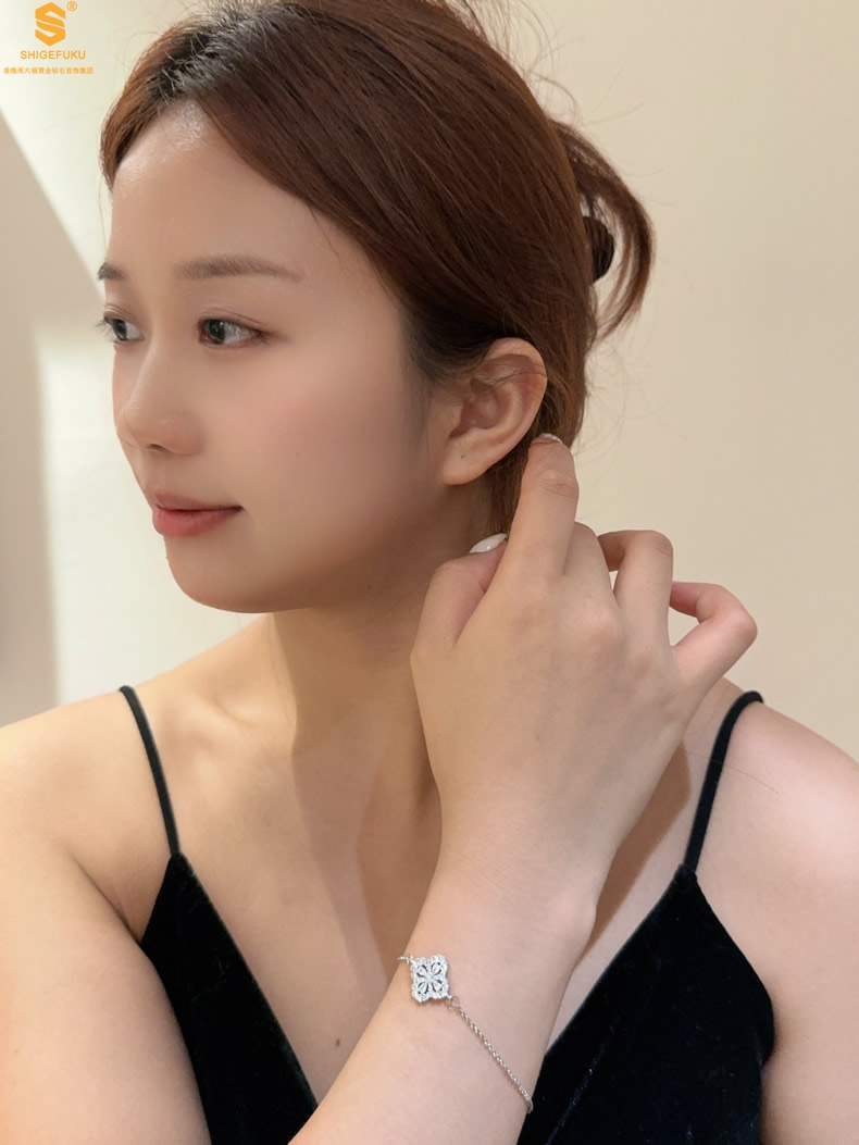 【品名】幸运满钻四叶草K铂金手链(高定礼盒)