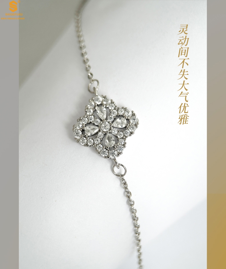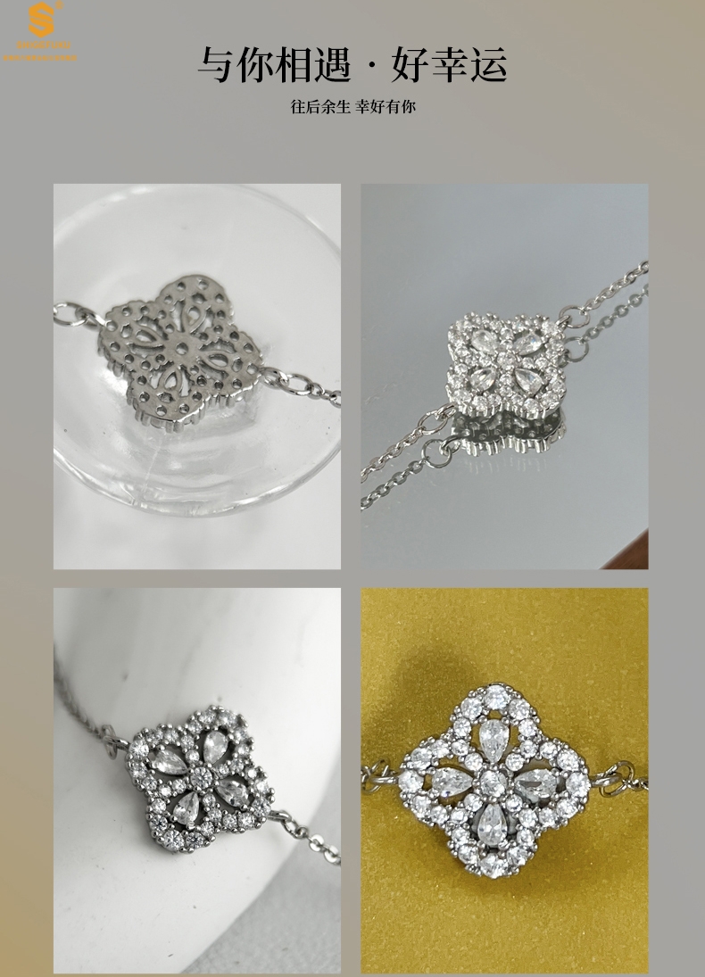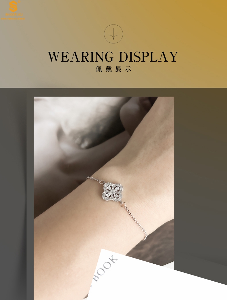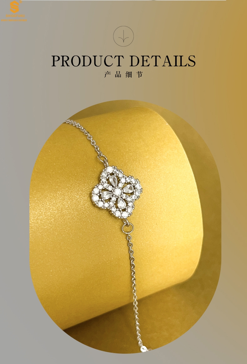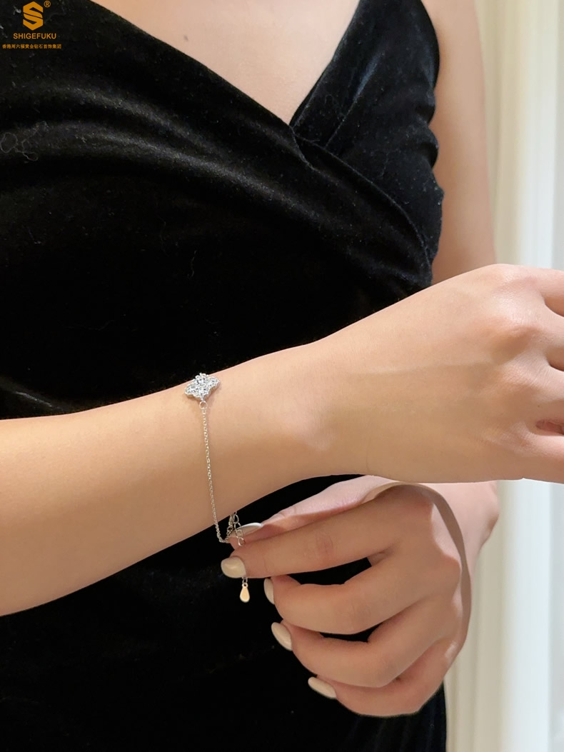 【品名】幸运满钻四叶草K铂金手链(高定礼盒)
