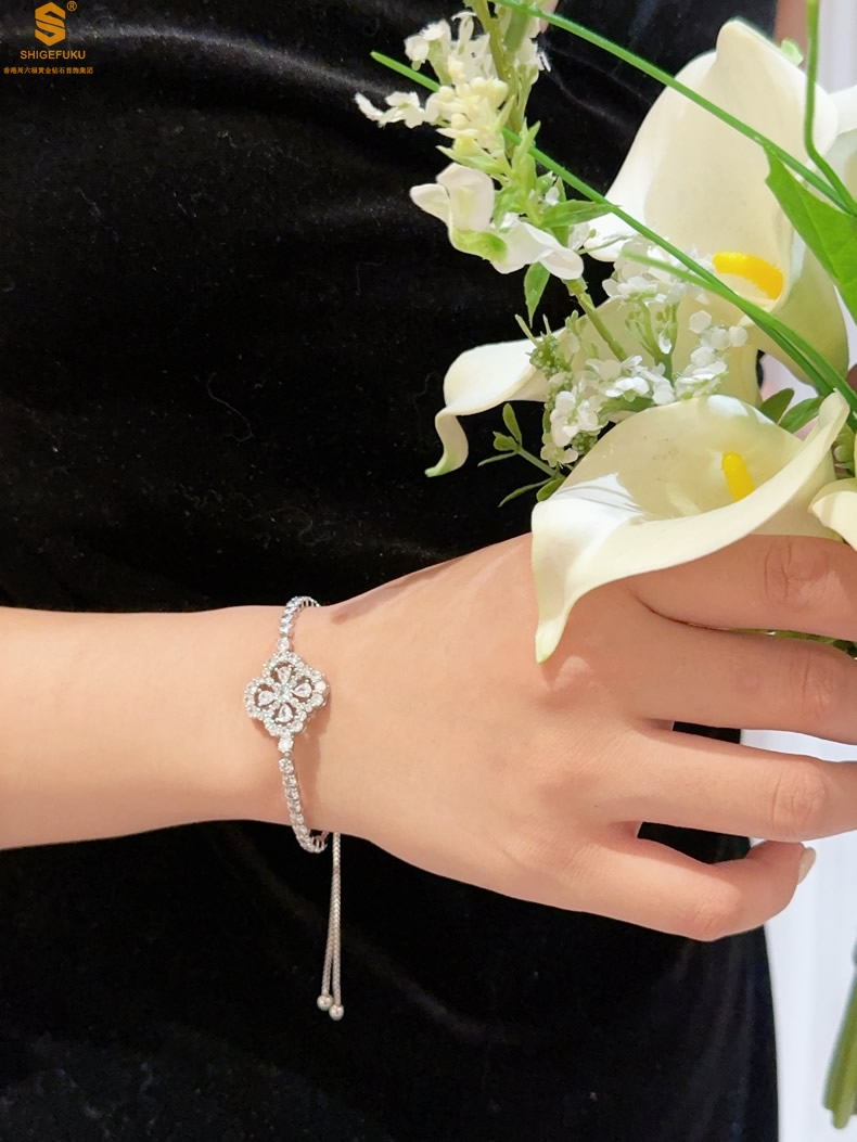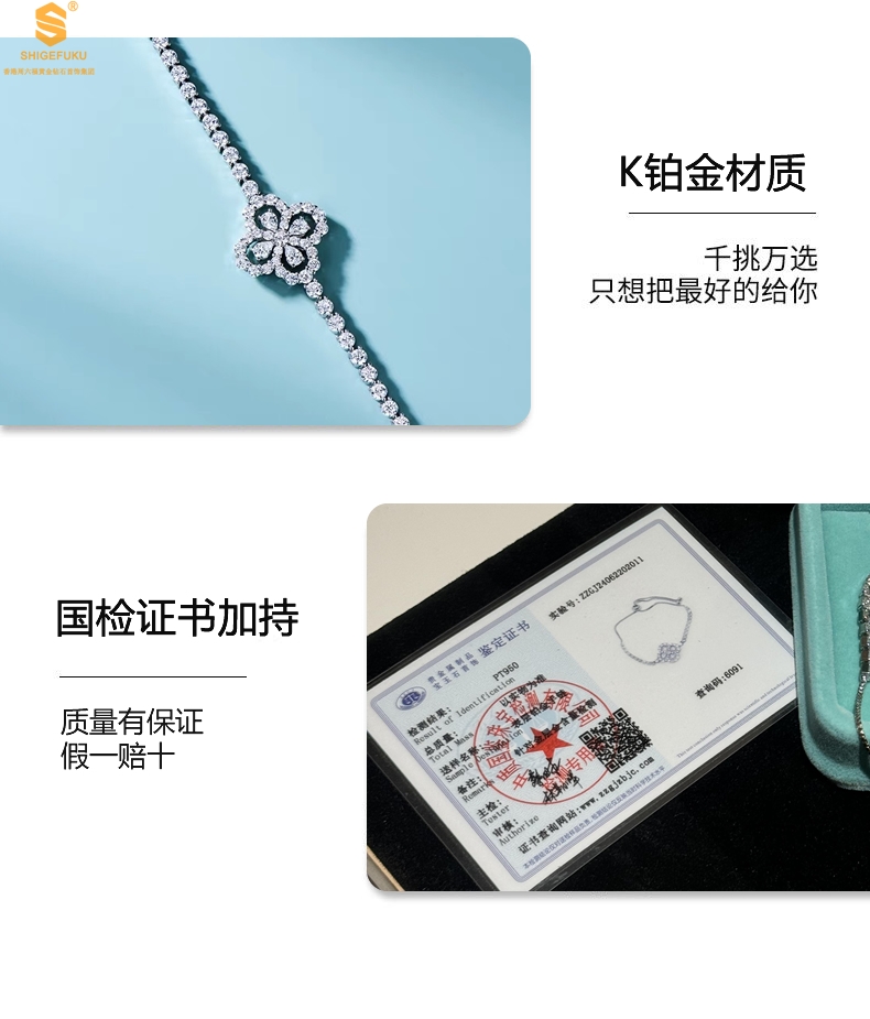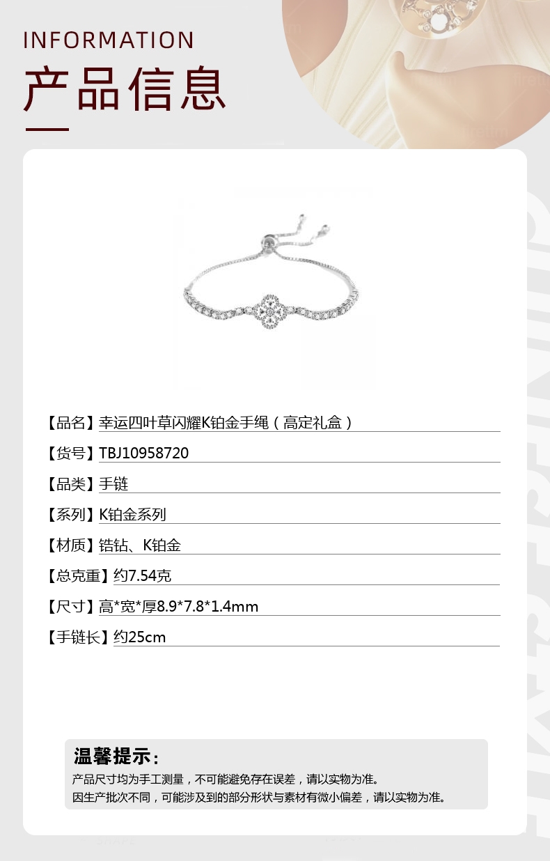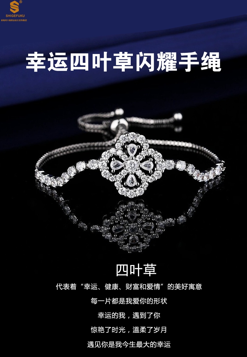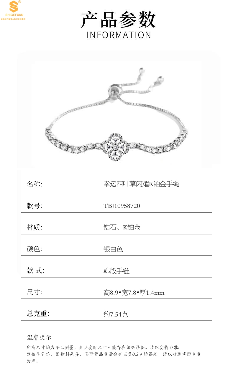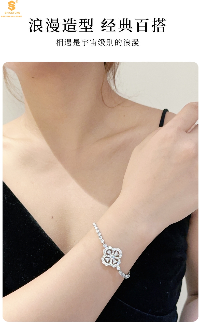 【品名】幸运四叶草闪耀K铂金手绳(高定礼盒)