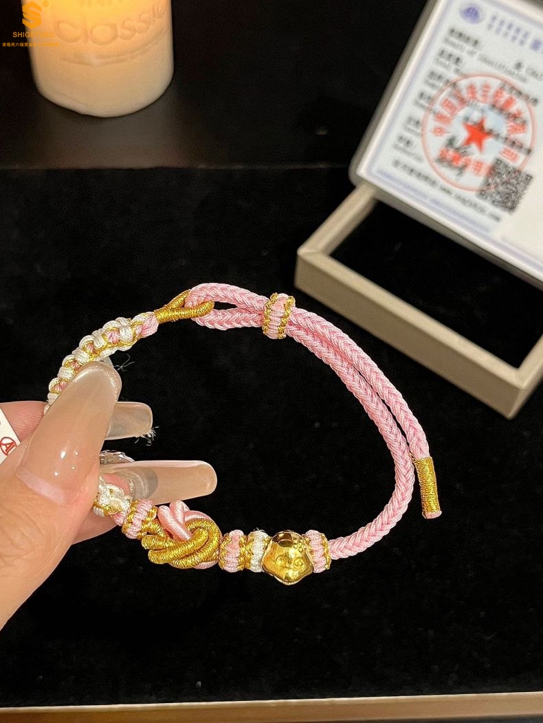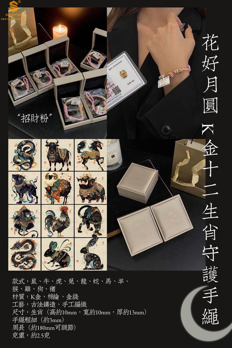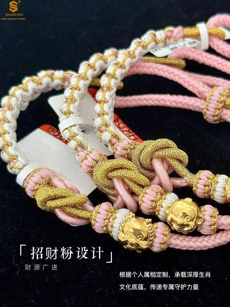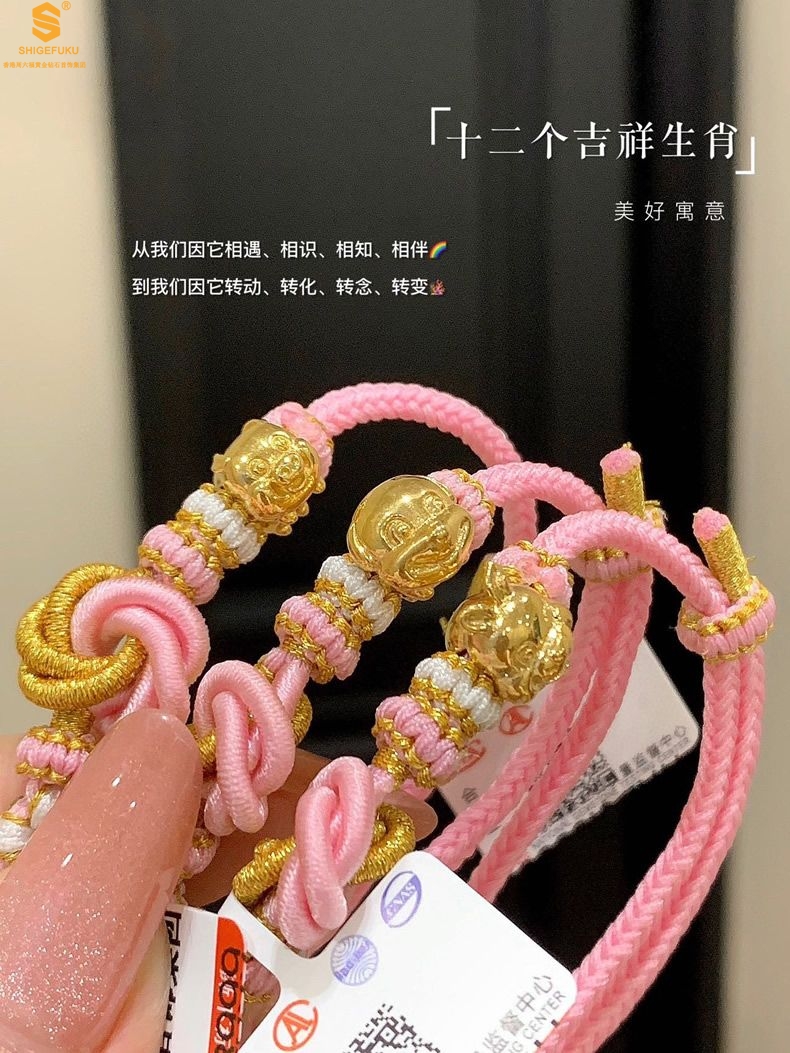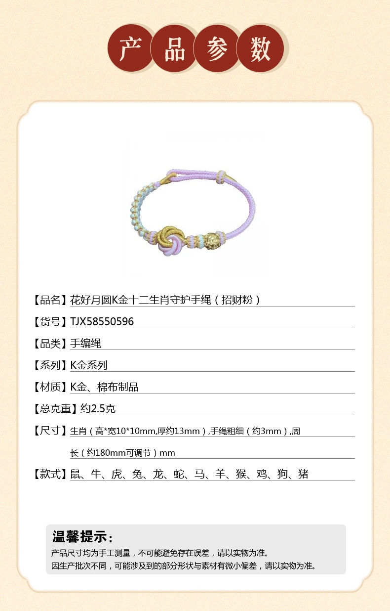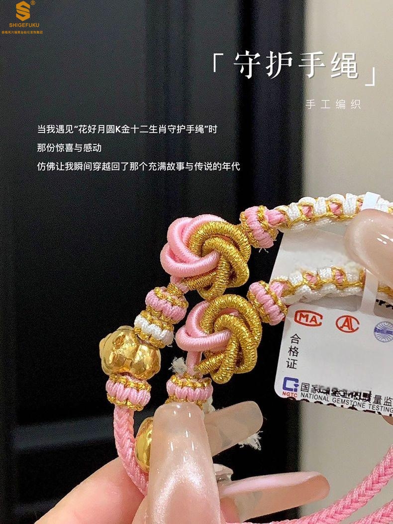 【品名】花好月圆K金十二生肖守护手绳(招财粉)