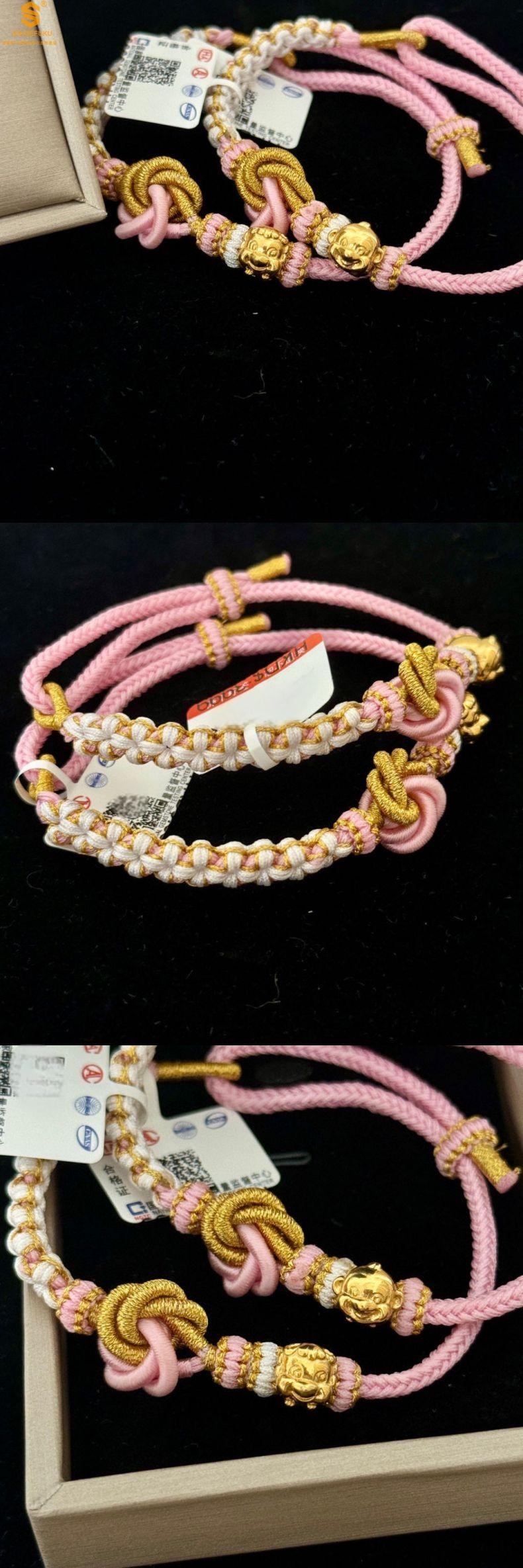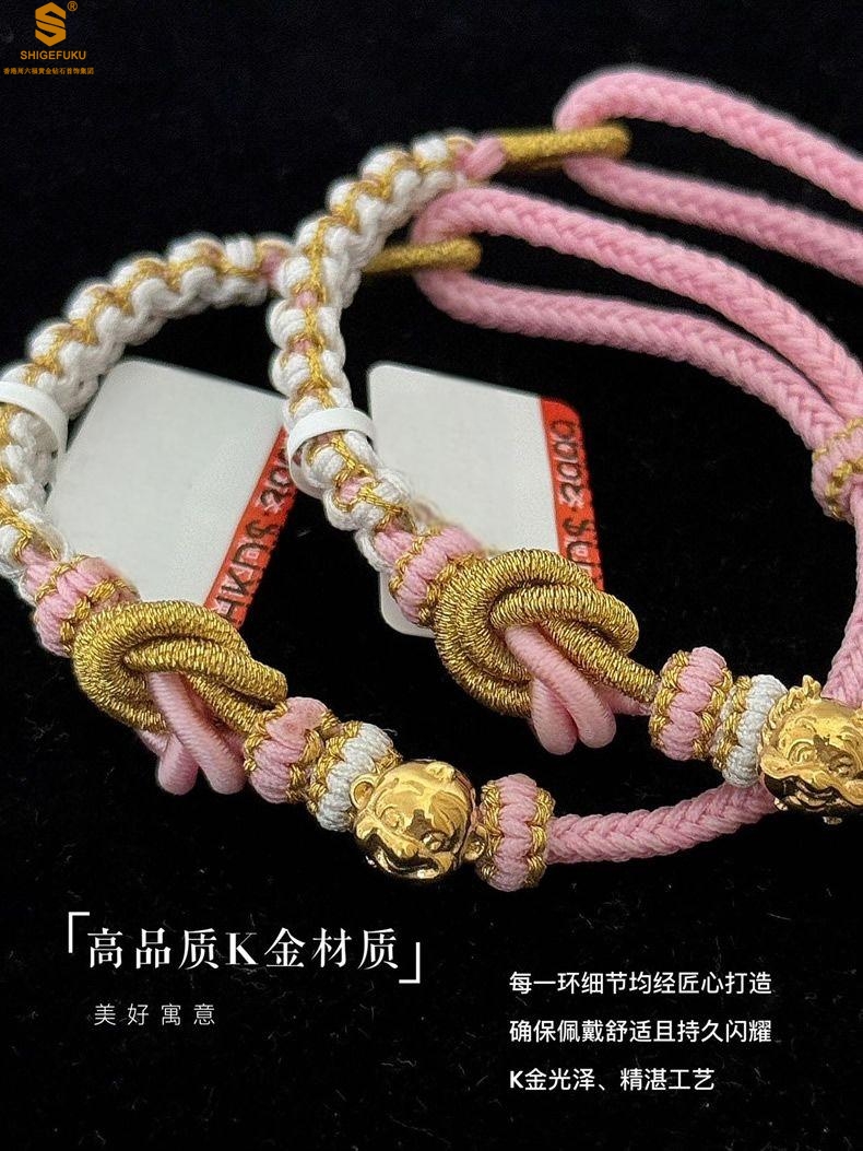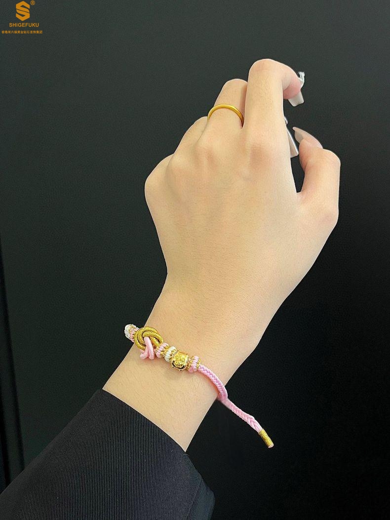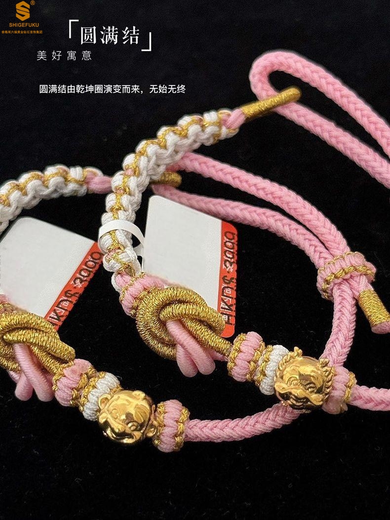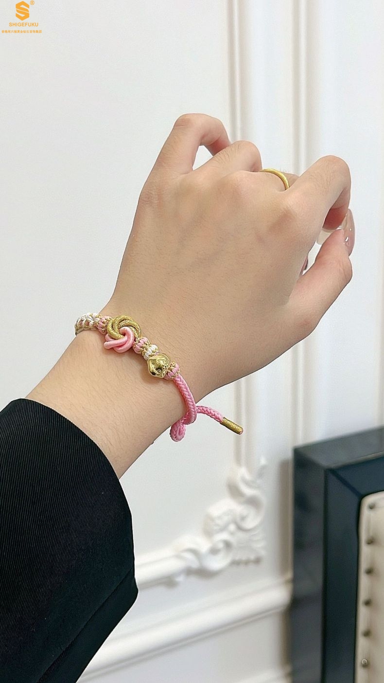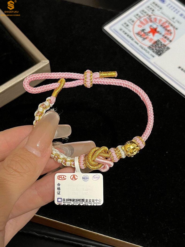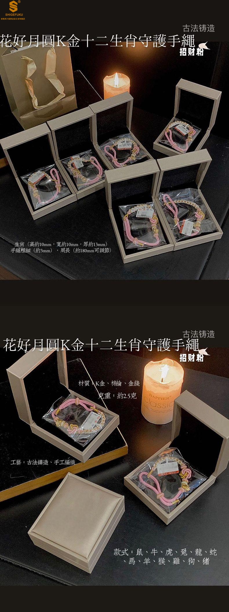 【品名】花好月圆K金十二生肖守护手绳(招财粉)