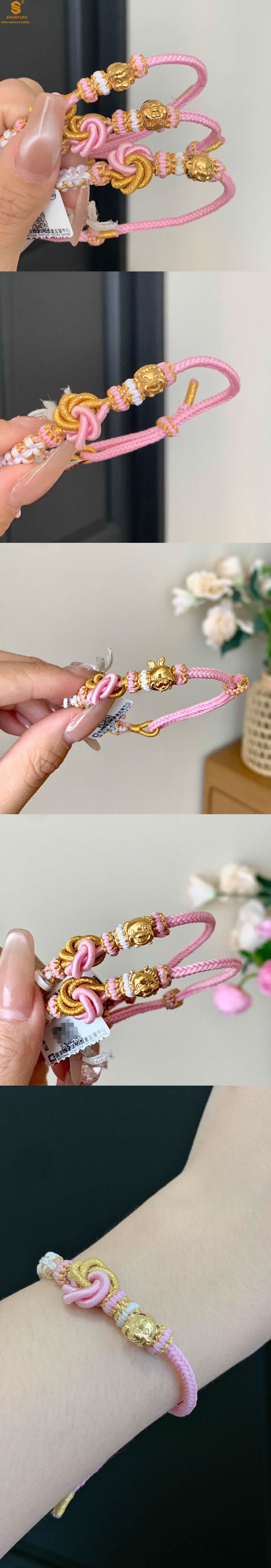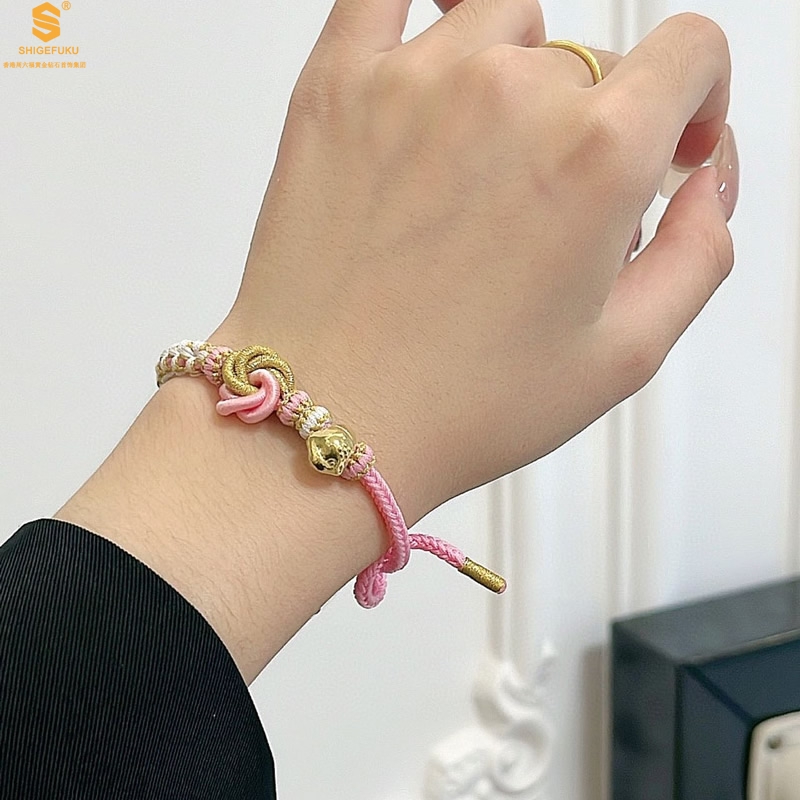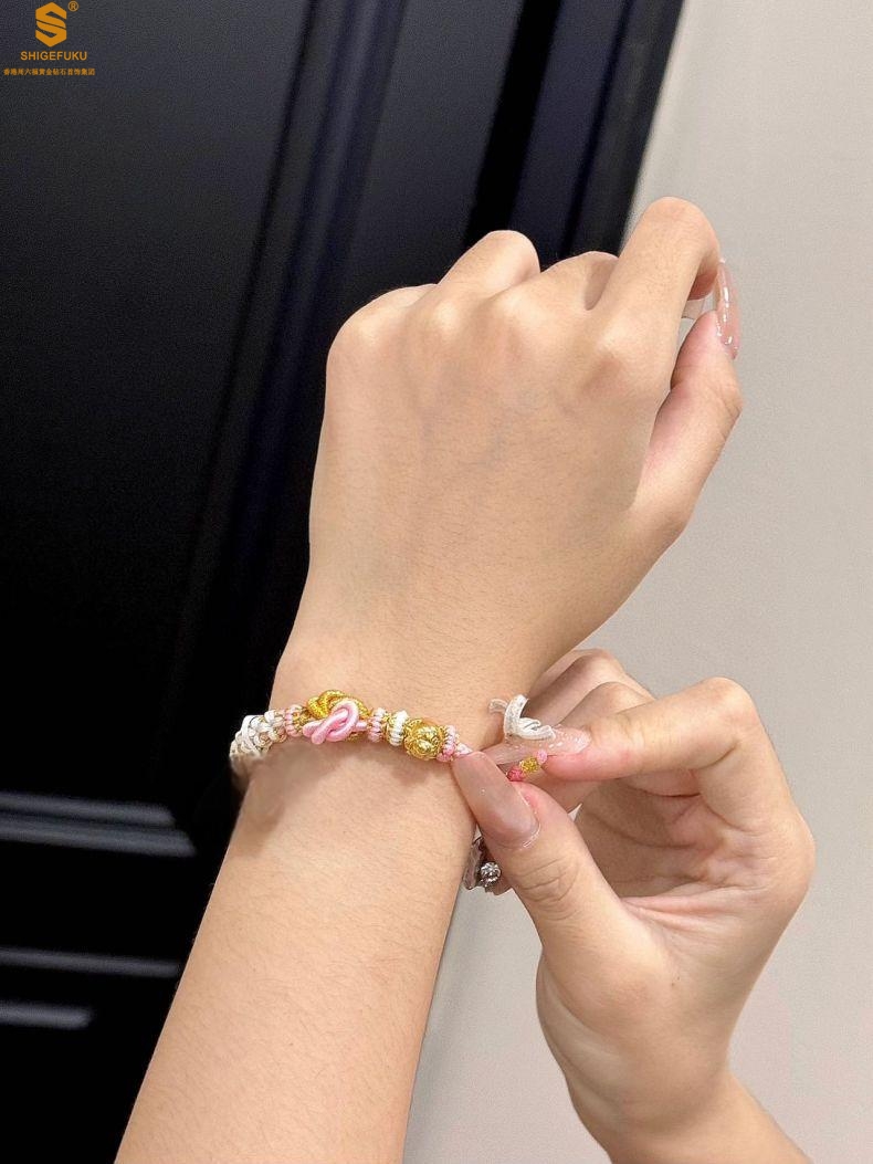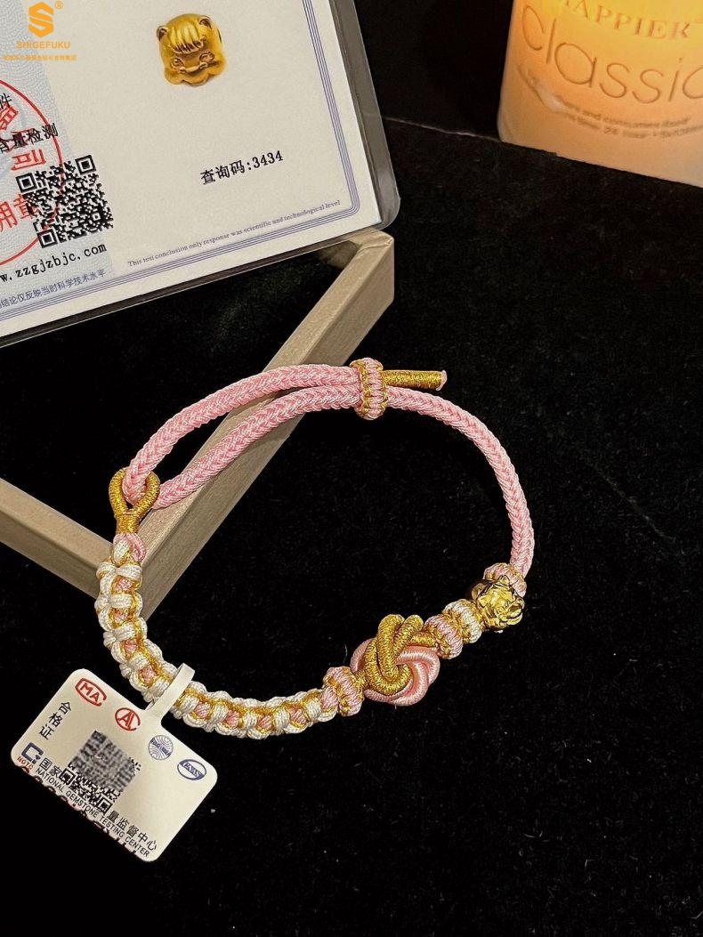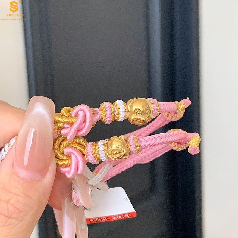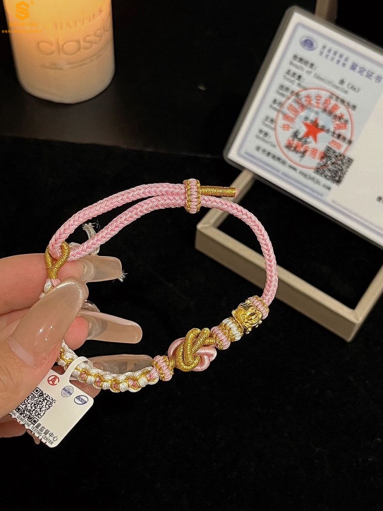 【品名】花好月圆K金十二生肖守护手绳(招财粉)