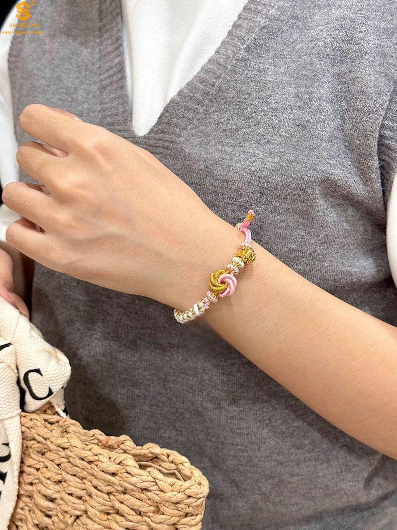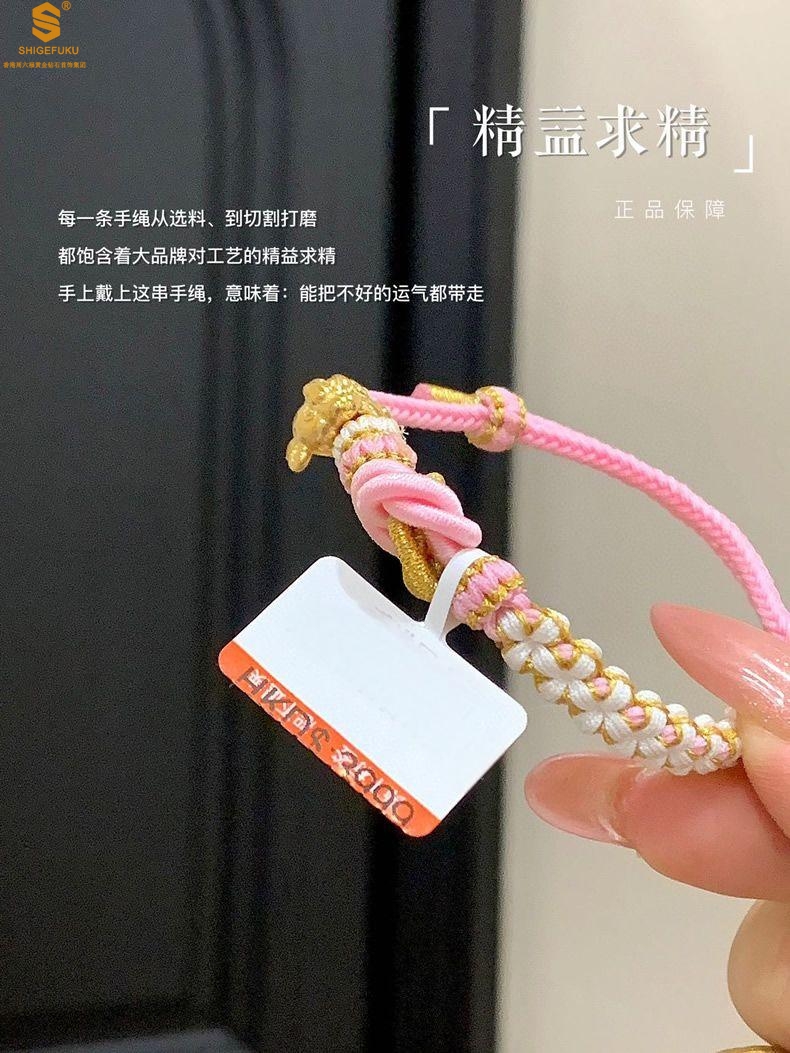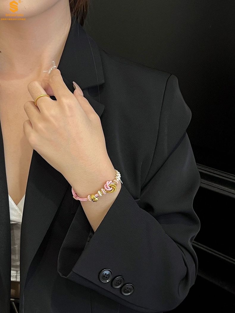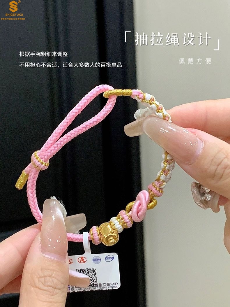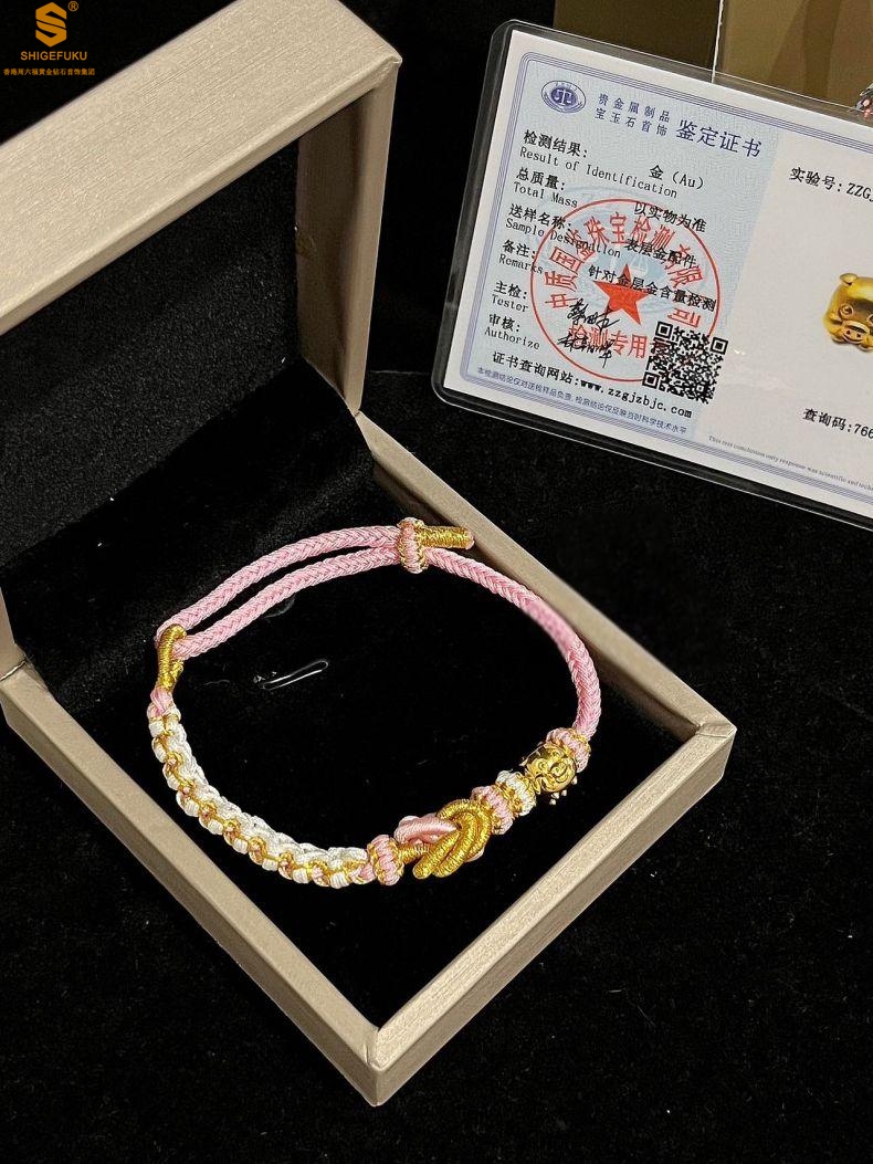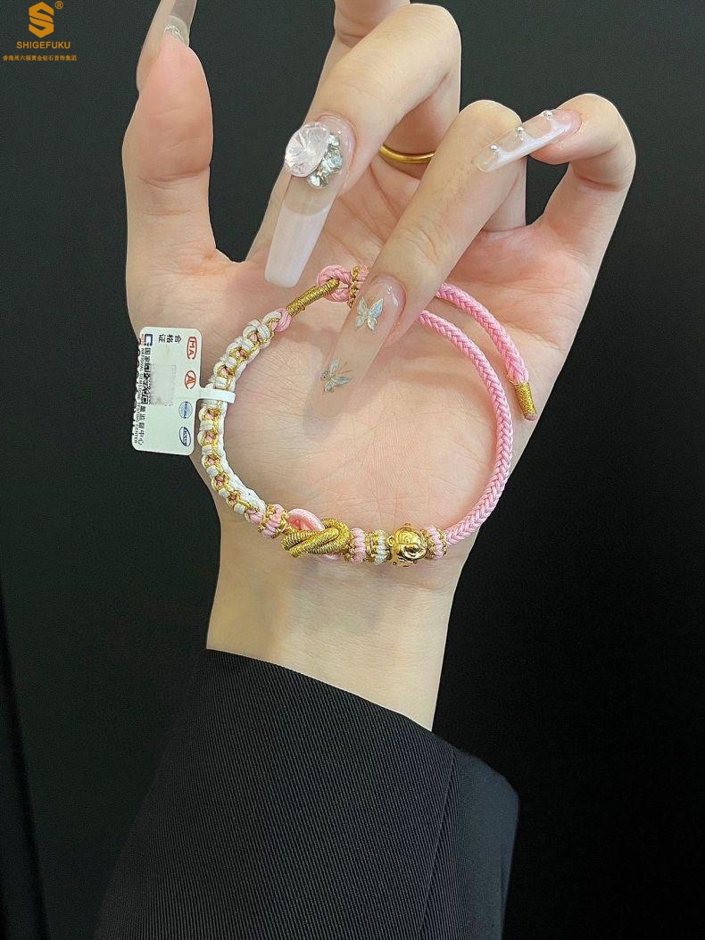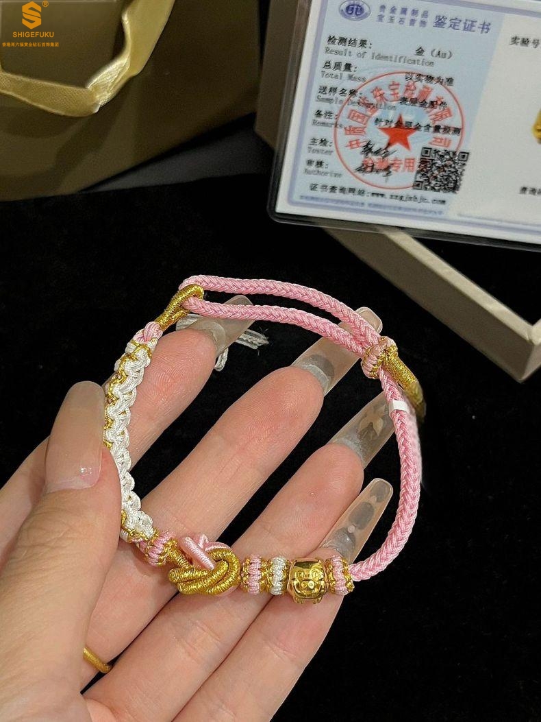 【品名】花好月圆K金十二生肖守护手绳(招财粉)