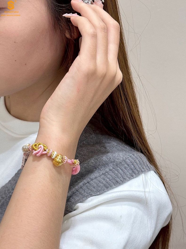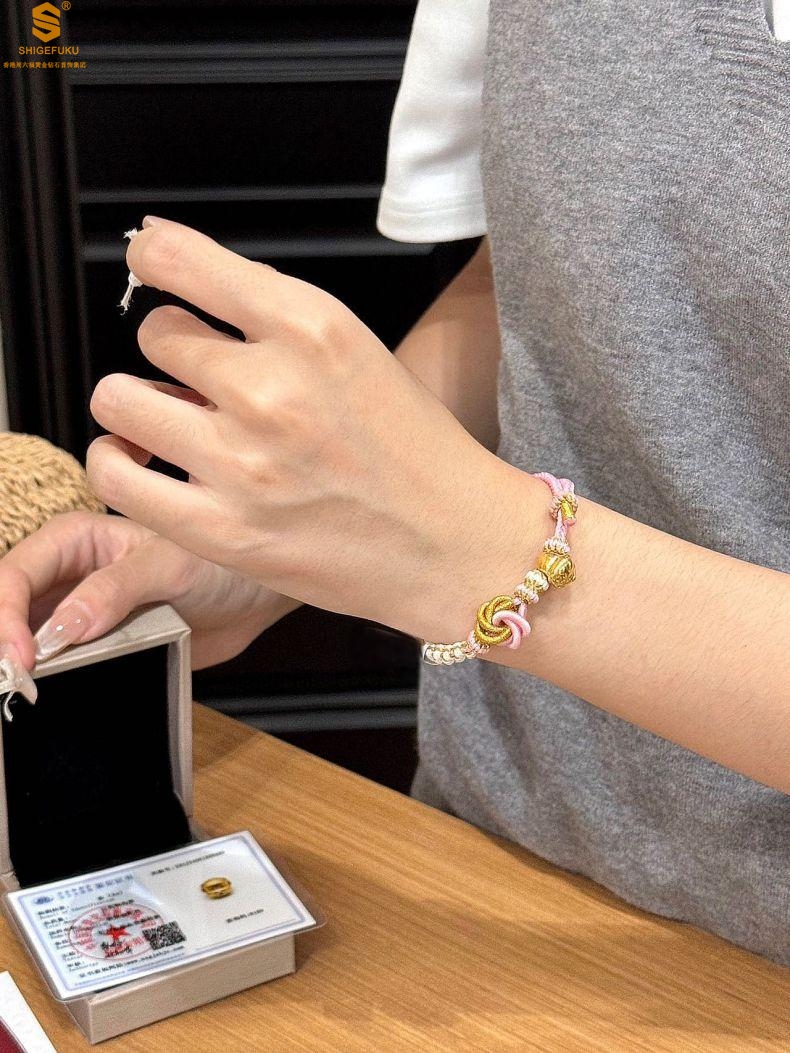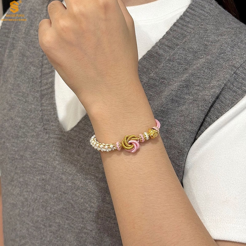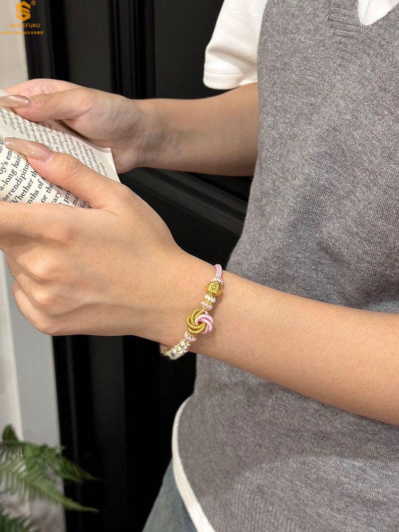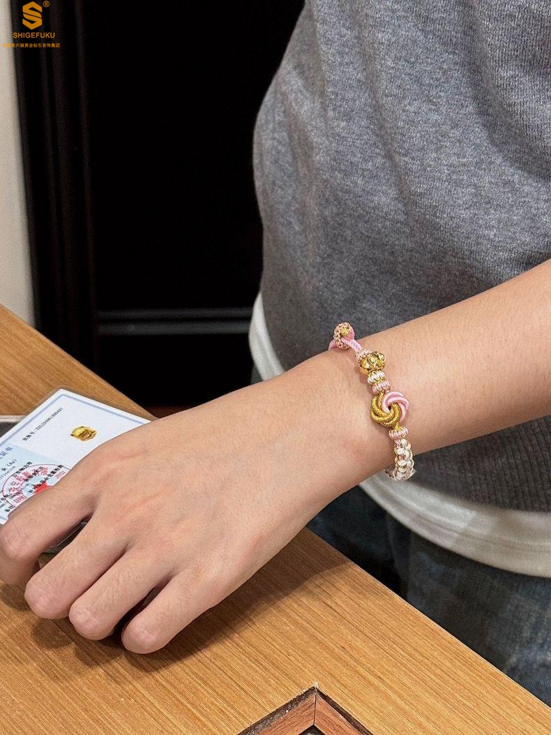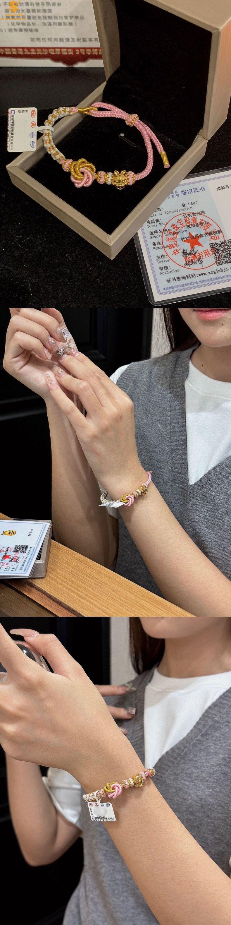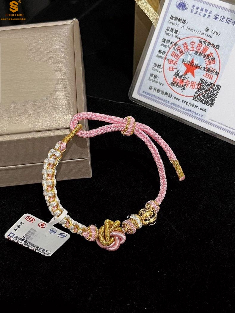 【品名】花好月圆K金十二生肖守护手绳(招财粉)