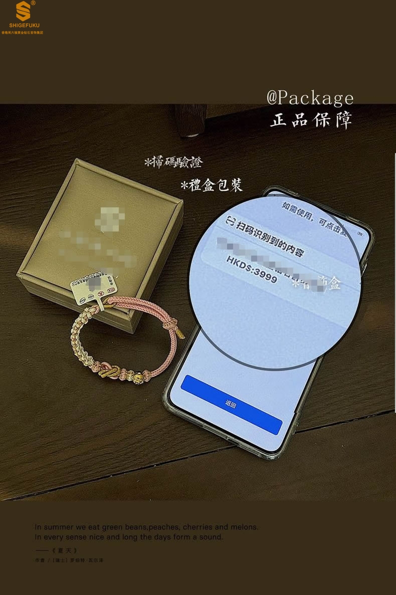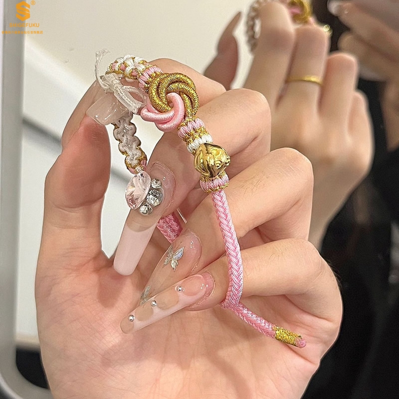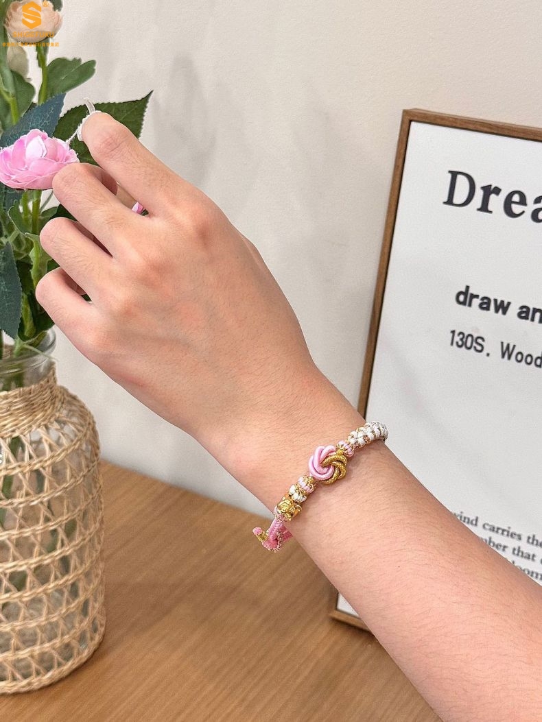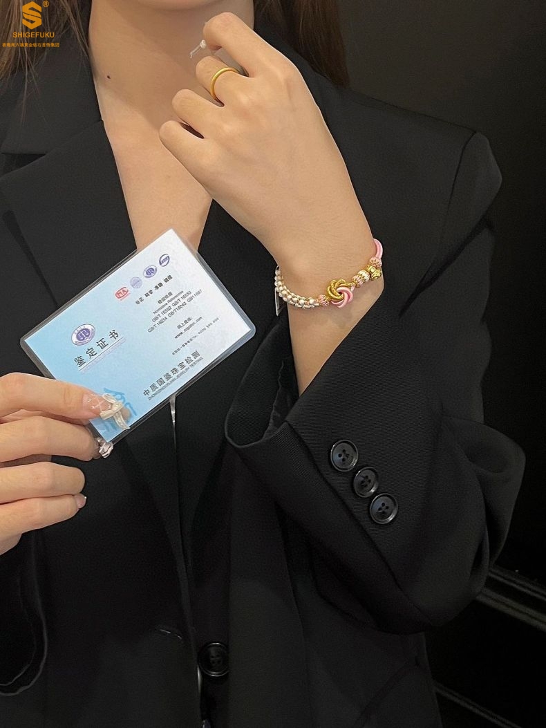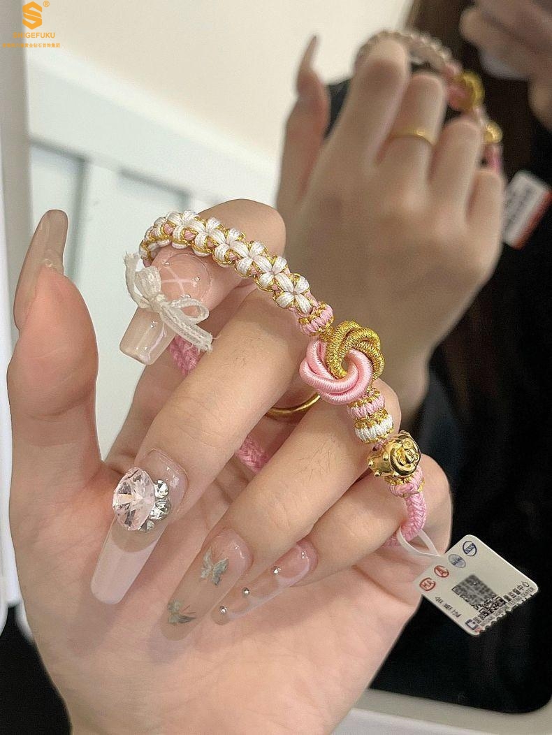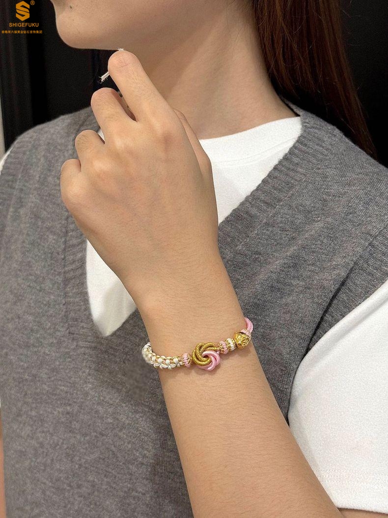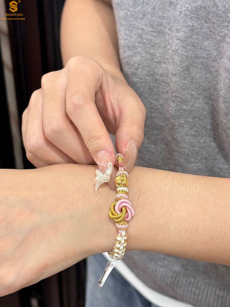 【品名】花好月圆K金十二生肖守护手绳(招财粉)