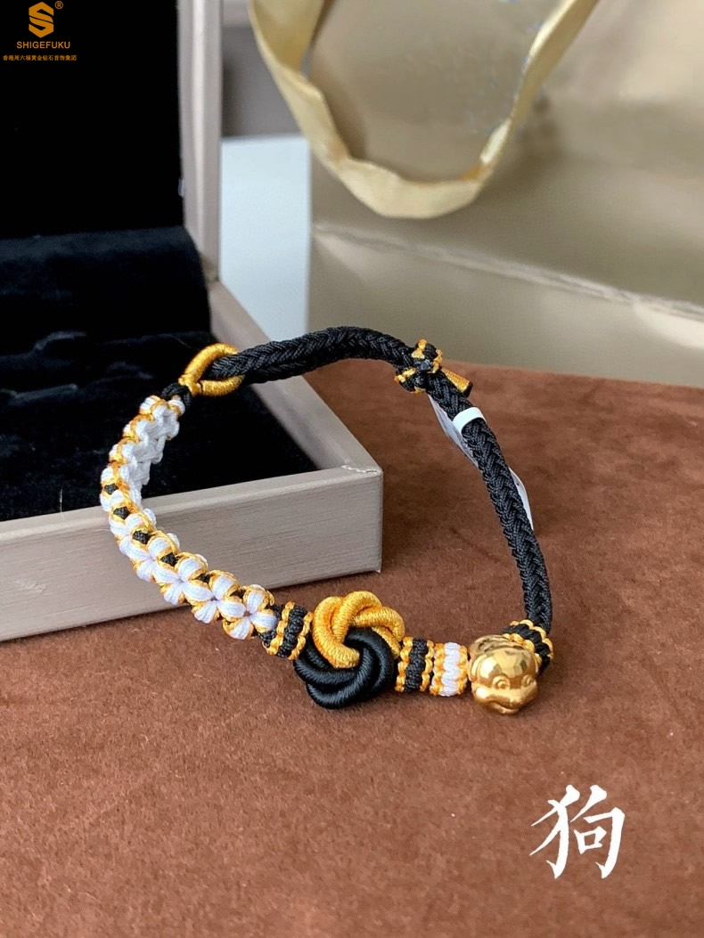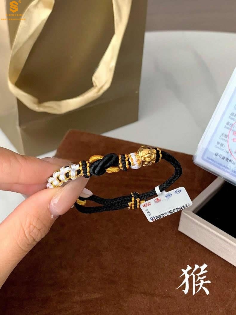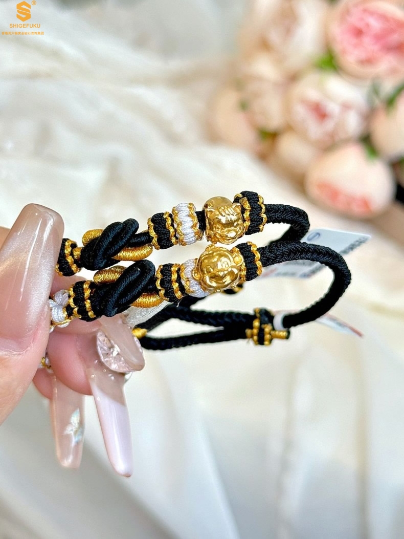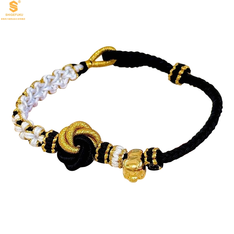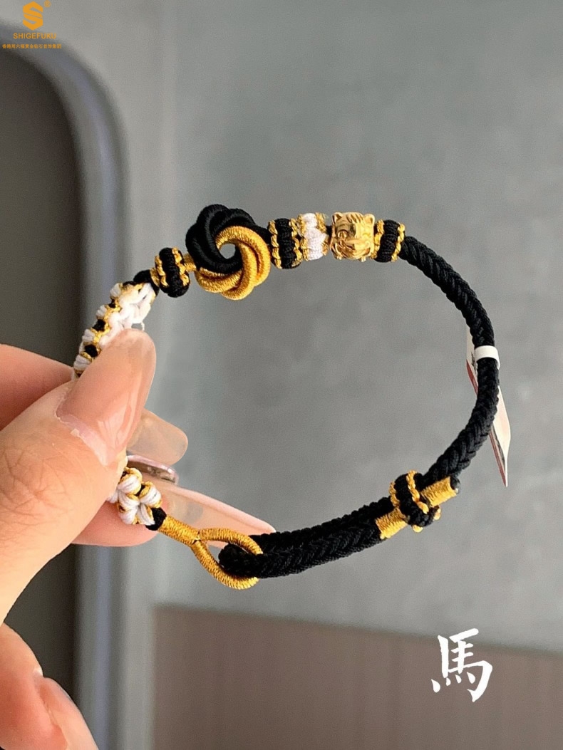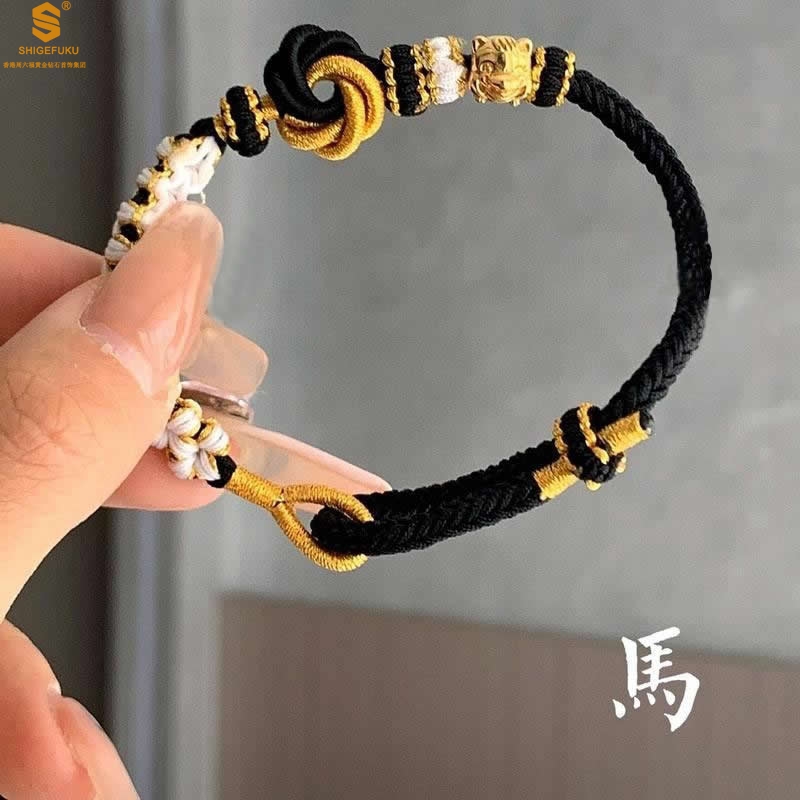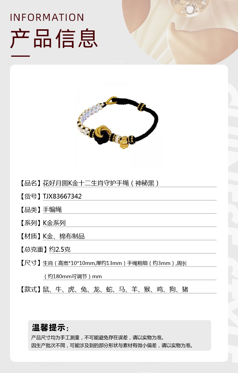 【品名】花好月圆K金十二生肖守护手绳(神秘黑)