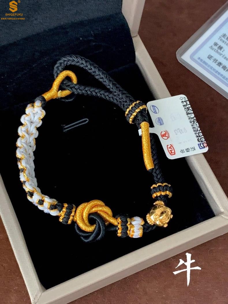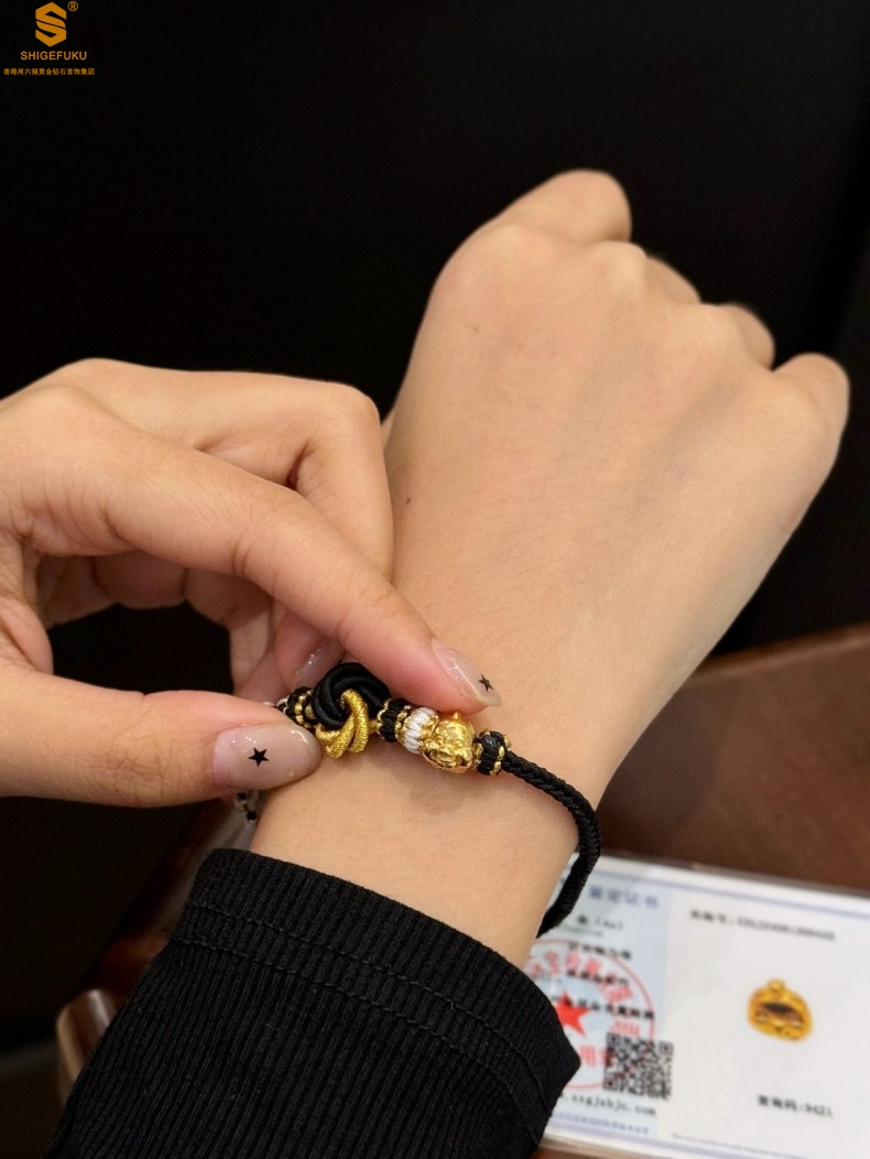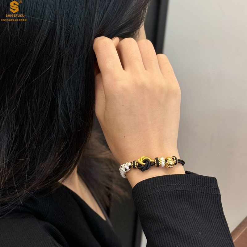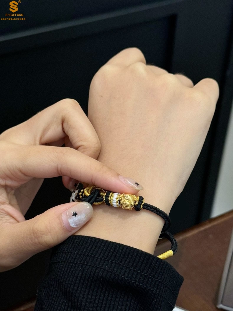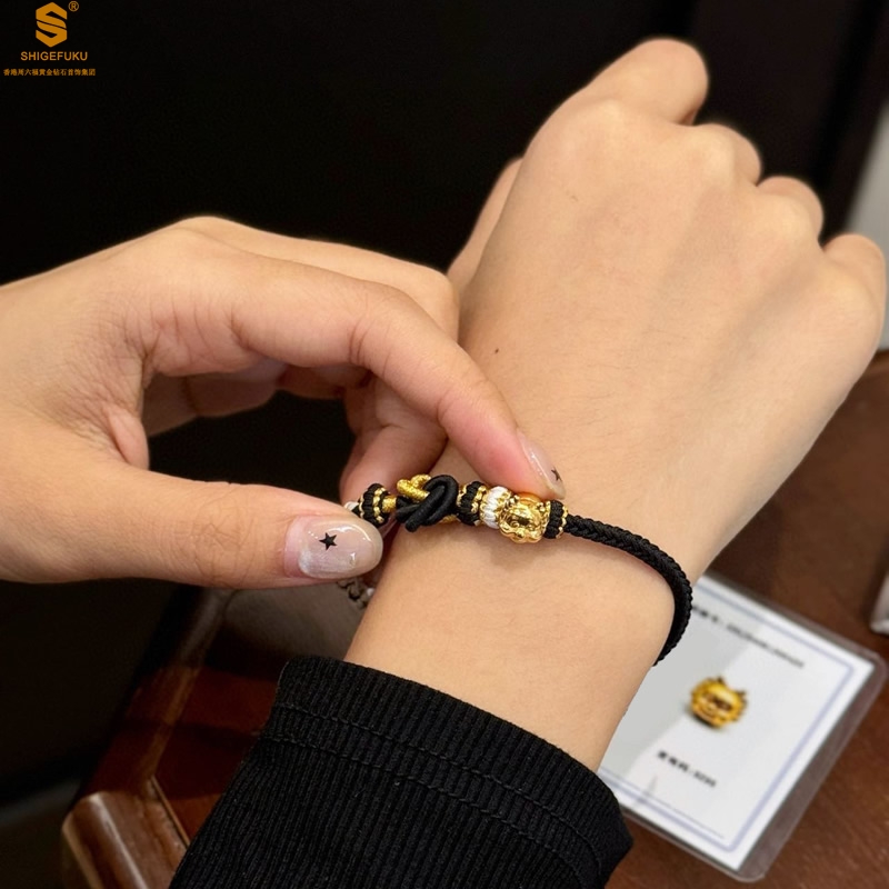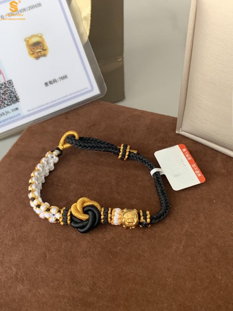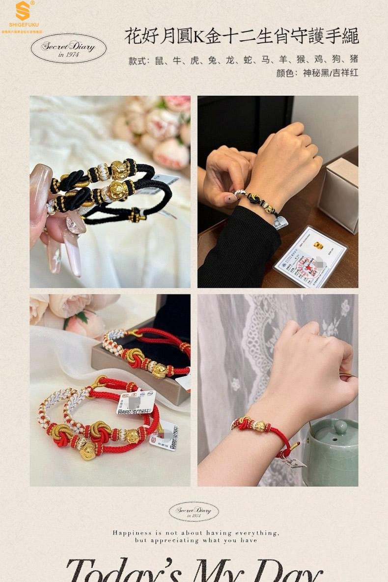 【品名】花好月圆K金十二生肖守护手绳(神秘黑)