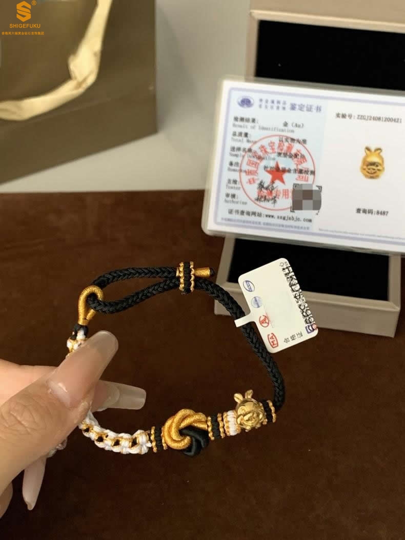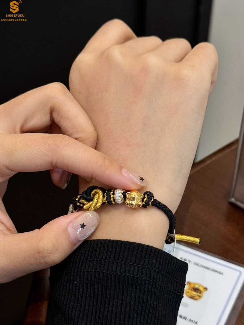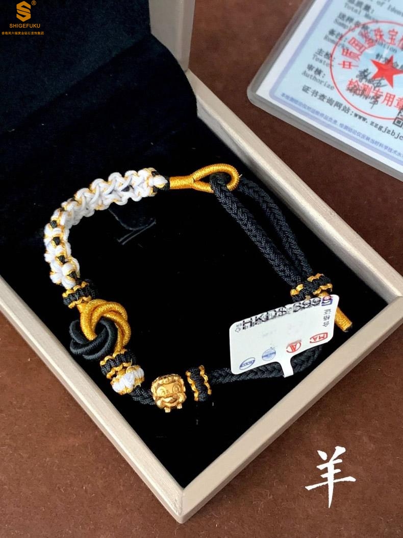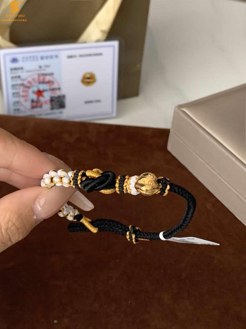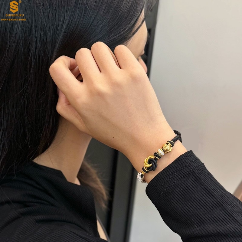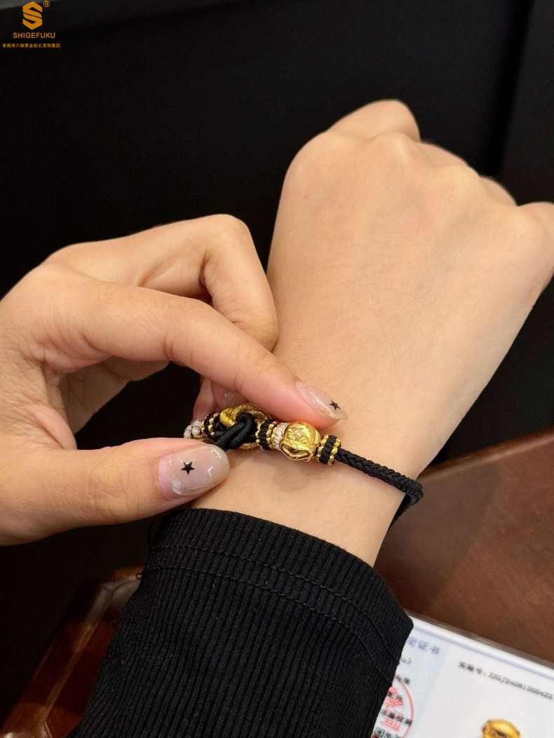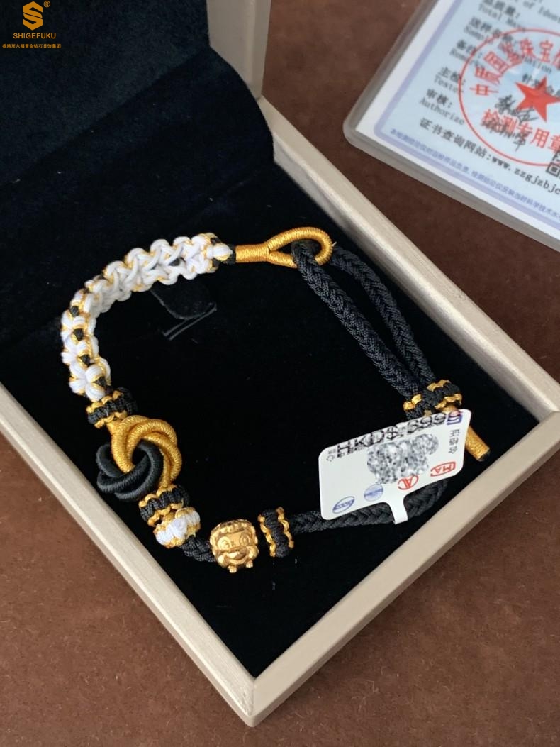 【品名】花好月圆K金十二生肖守护手绳(神秘黑)