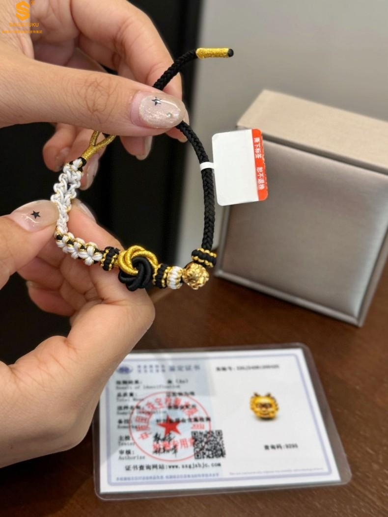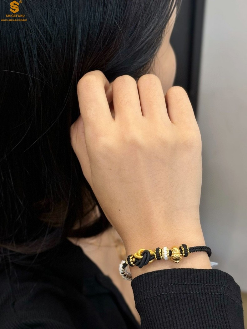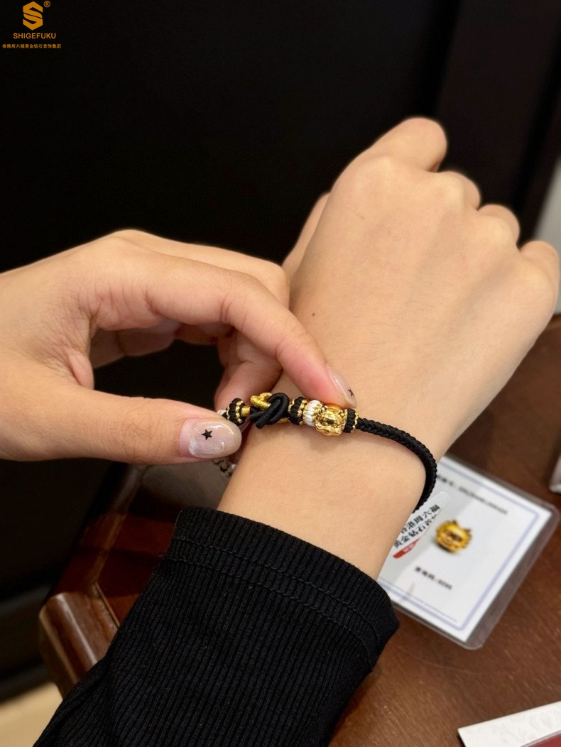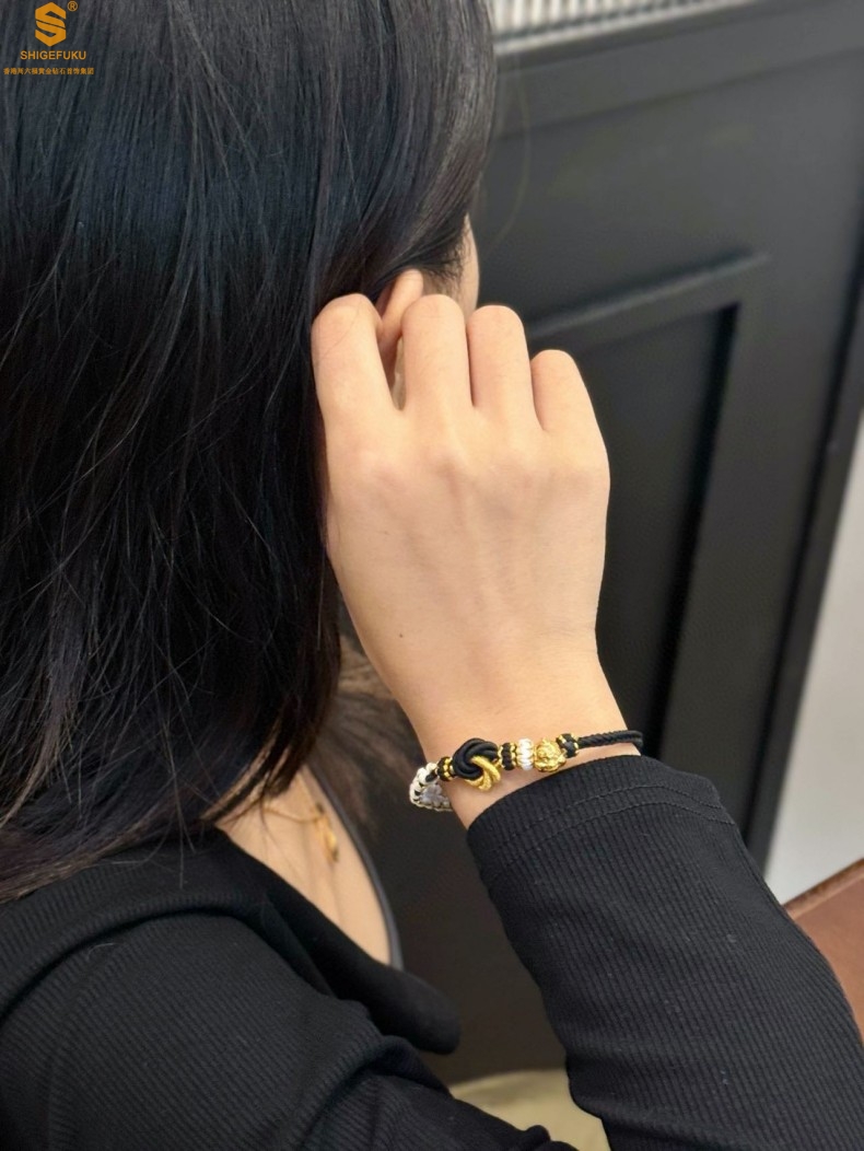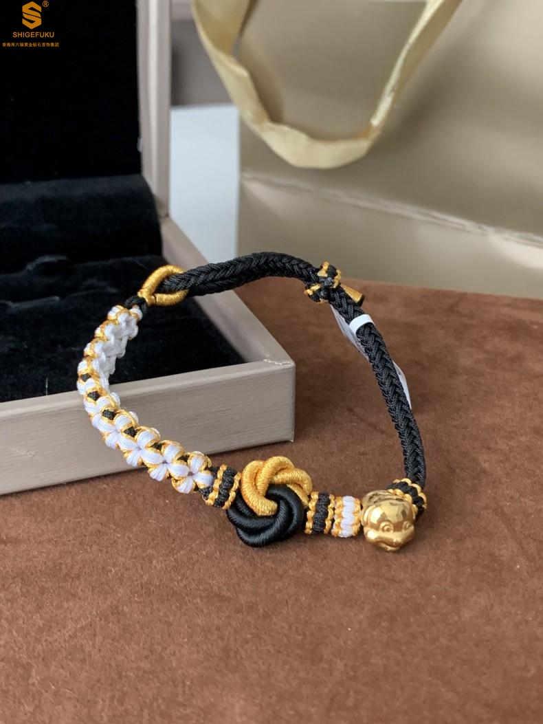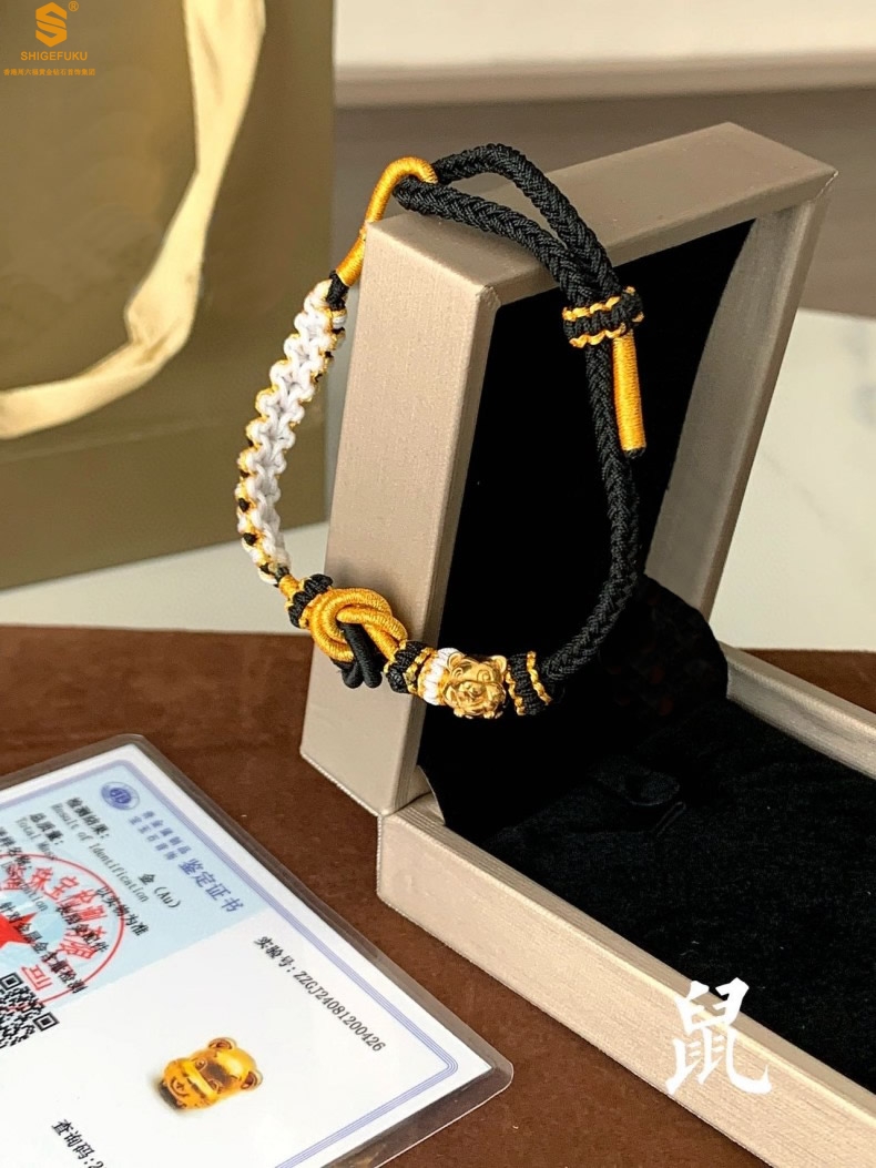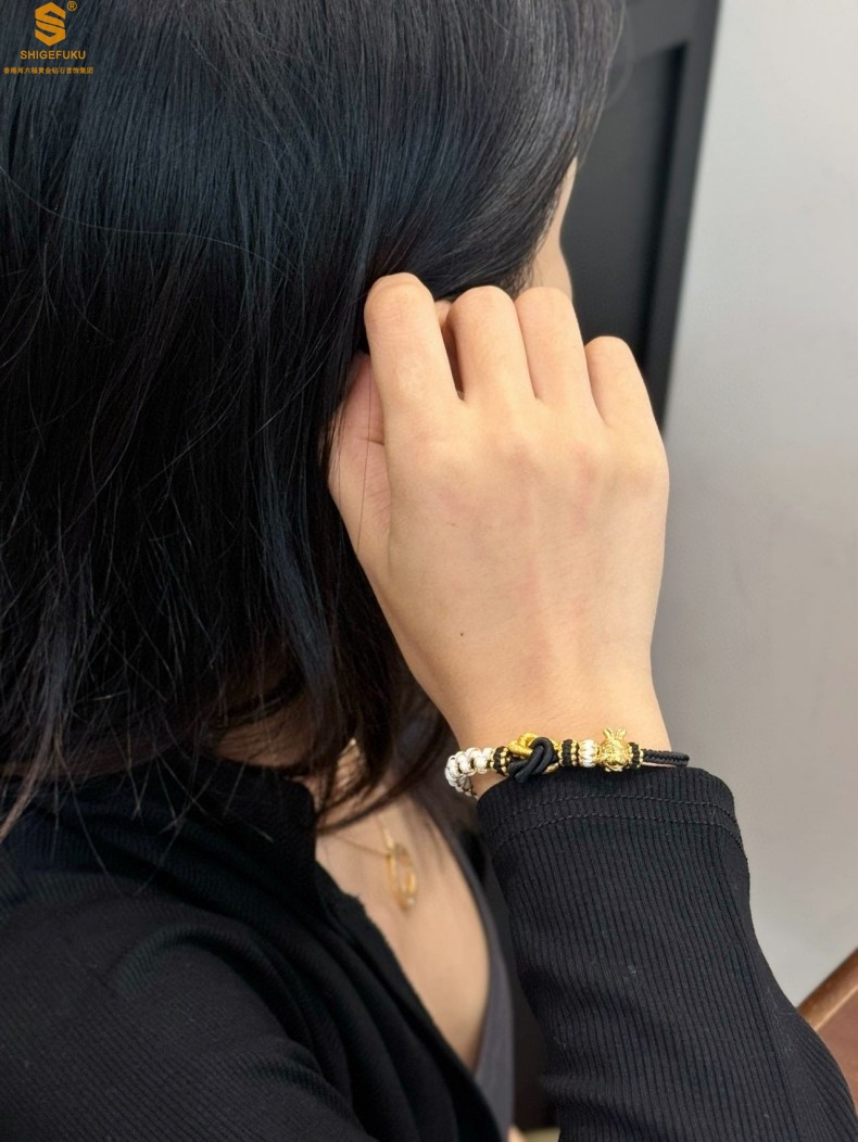 【品名】花好月圆K金十二生肖守护手绳(神秘黑)