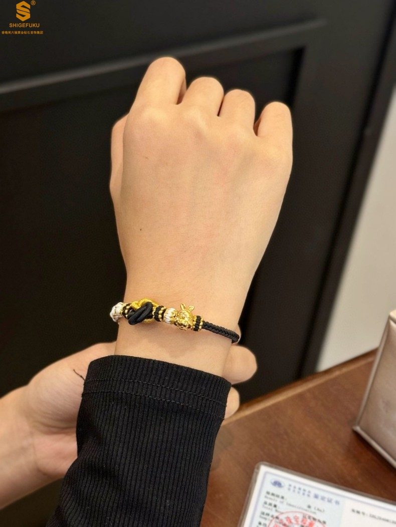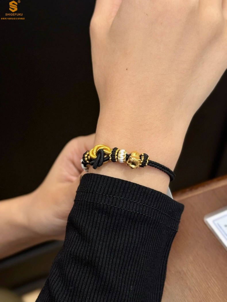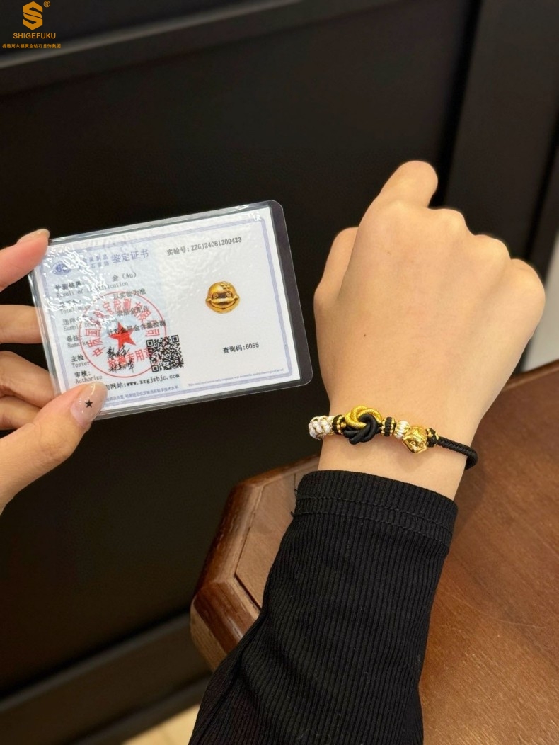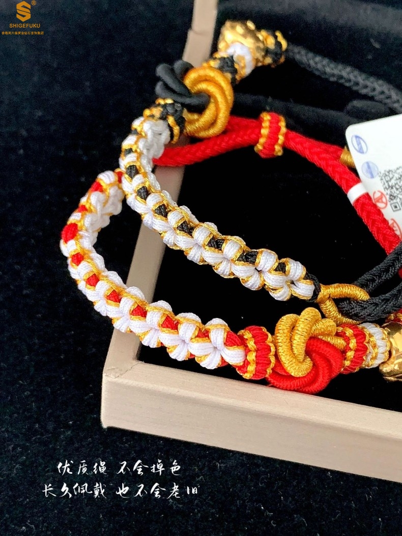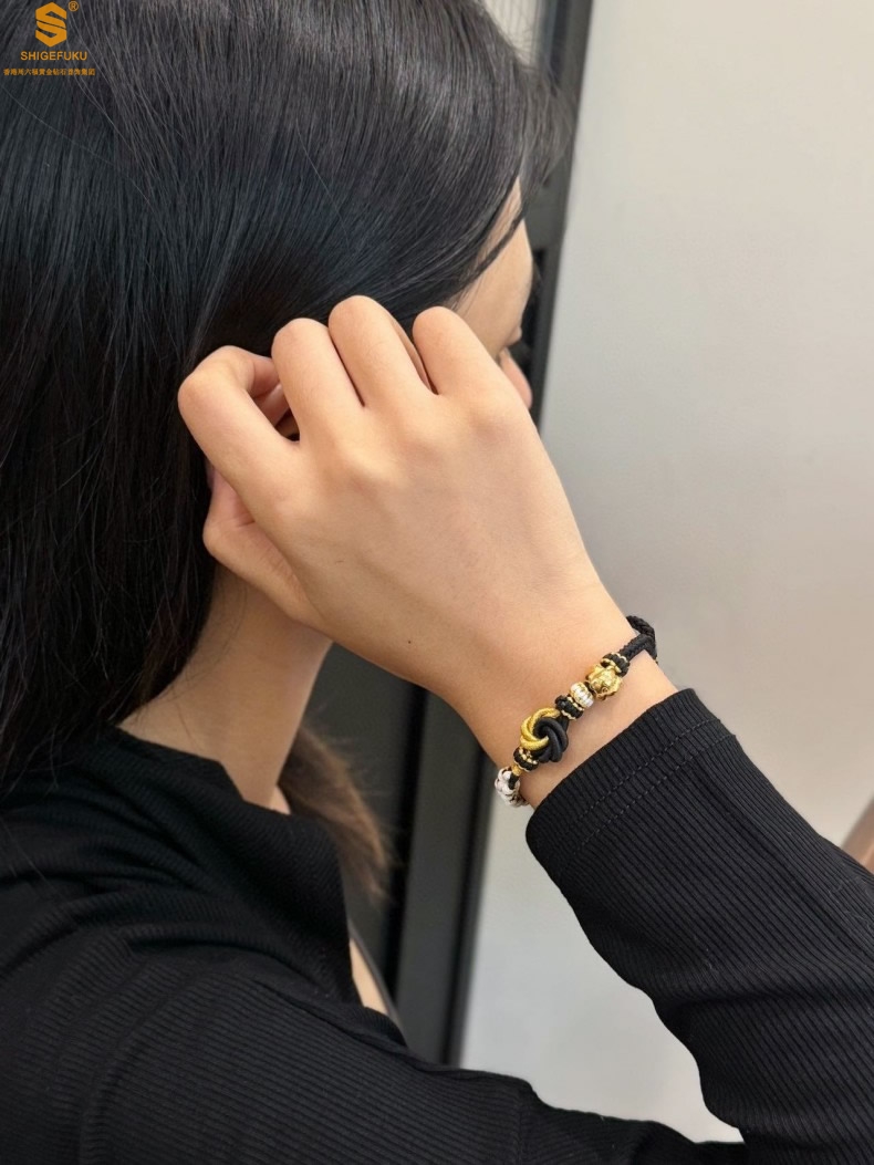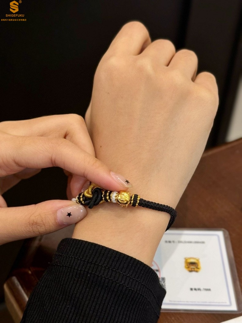 【品名】花好月圆K金十二生肖守护手绳(神秘黑)