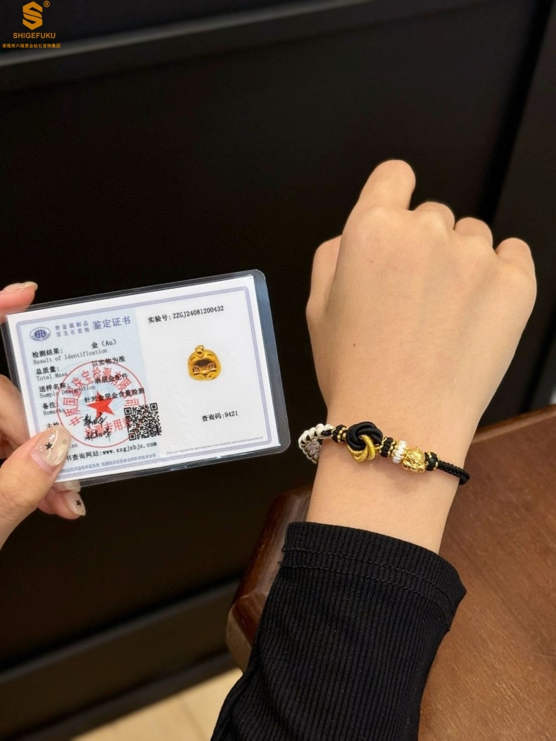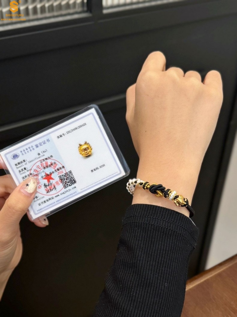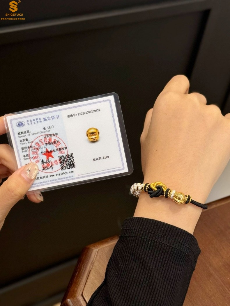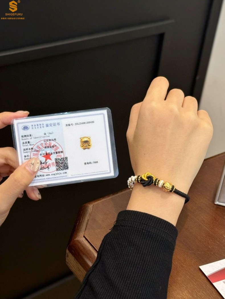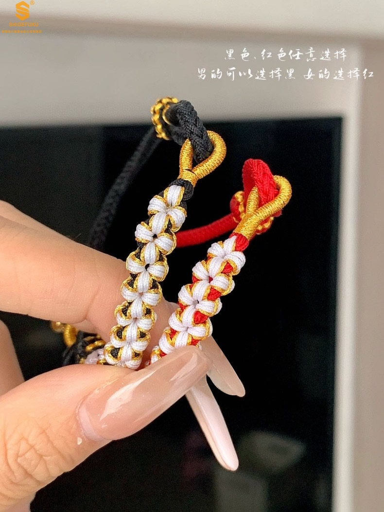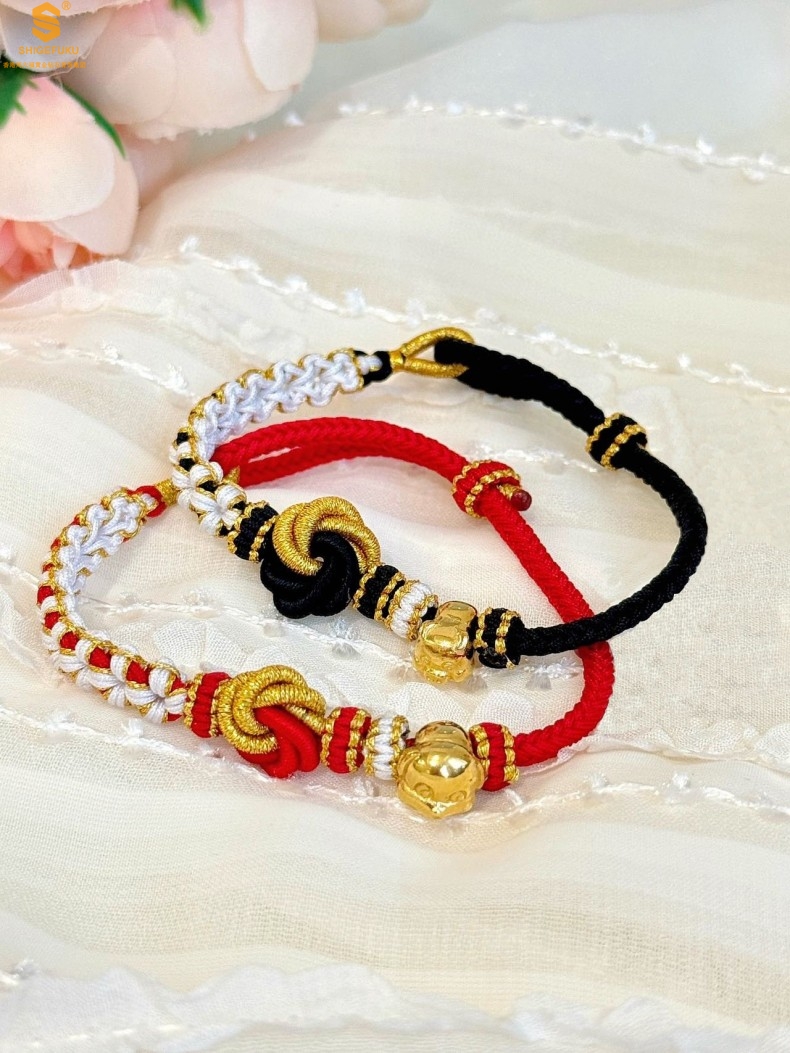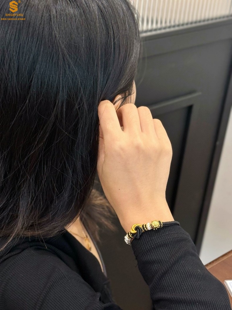 【品名】花好月圆K金十二生肖守护手绳(神秘黑)