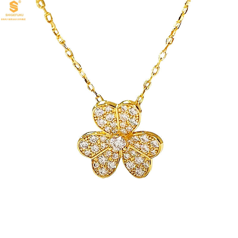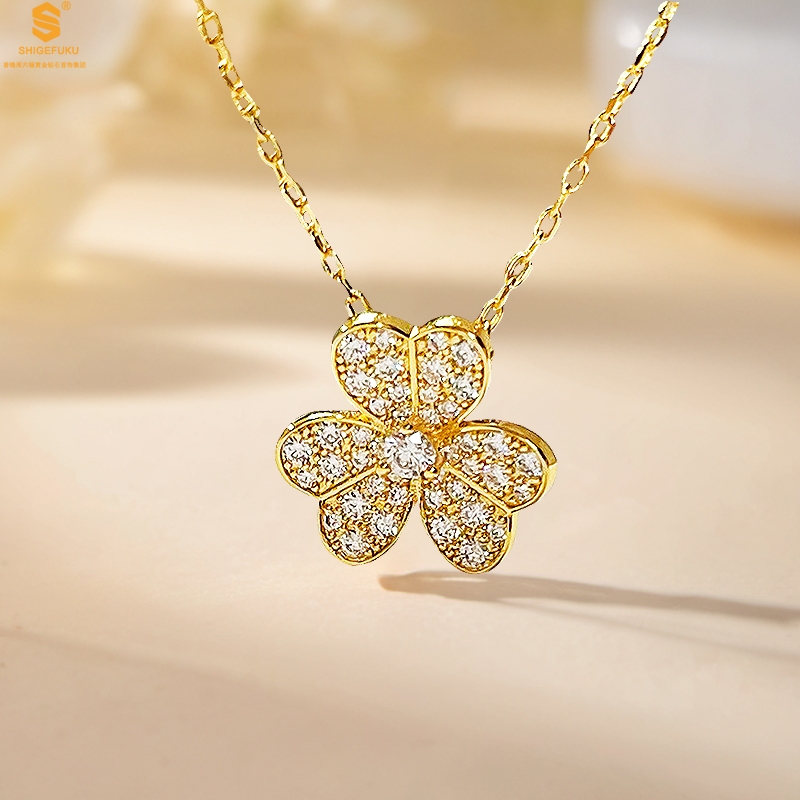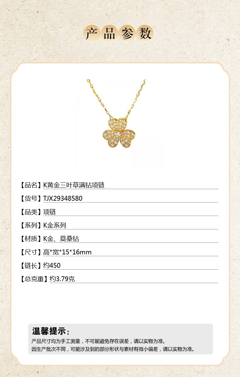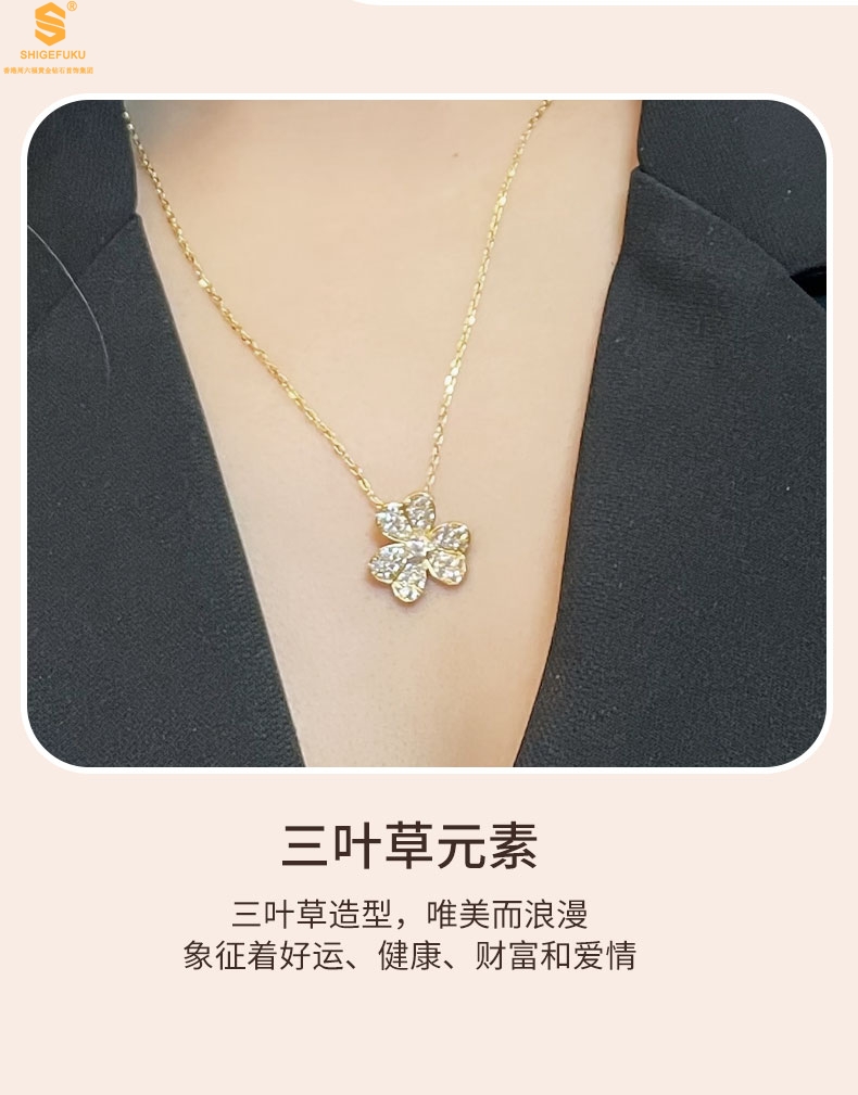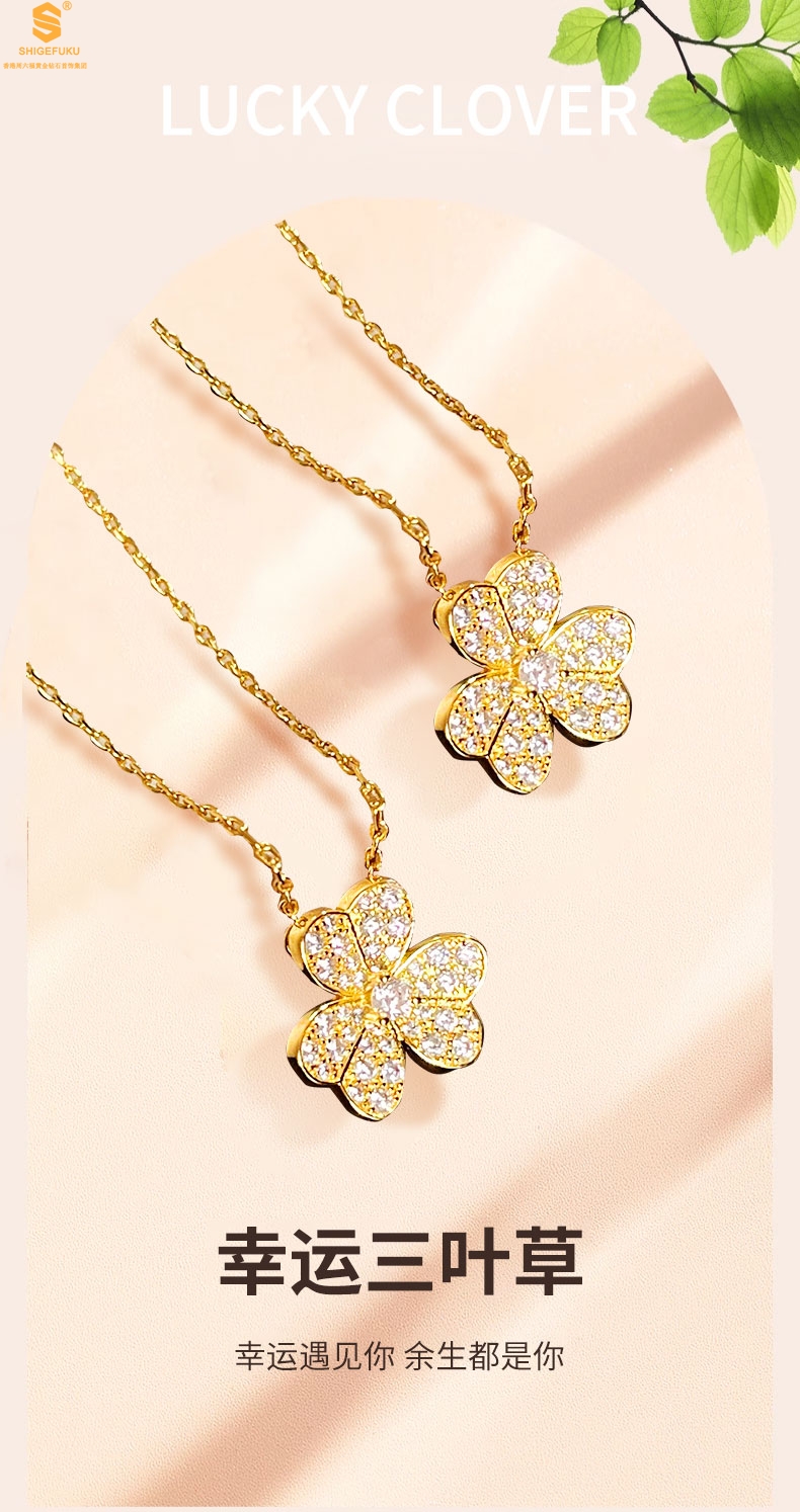 【品名】K黄金三叶草满钻项链