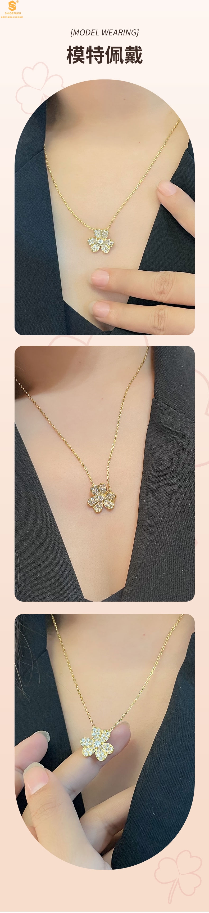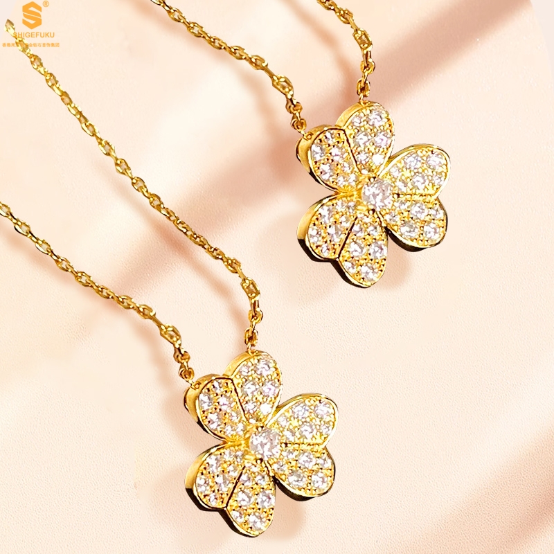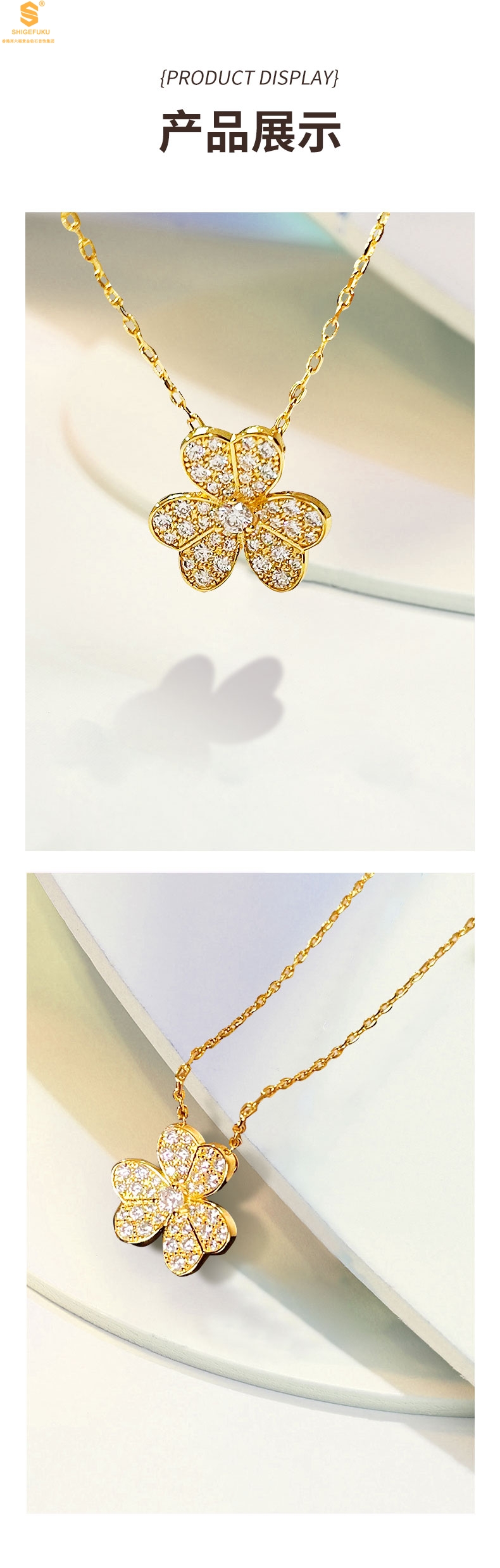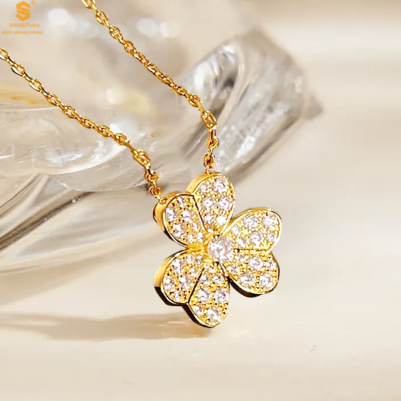 【品名】K黄金三叶草满钻项链