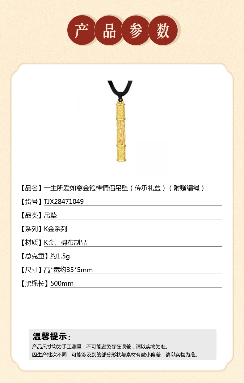 【品名】一生所爱如意金箍棒情侣吊坠(传承礼盒)(附赠编绳)