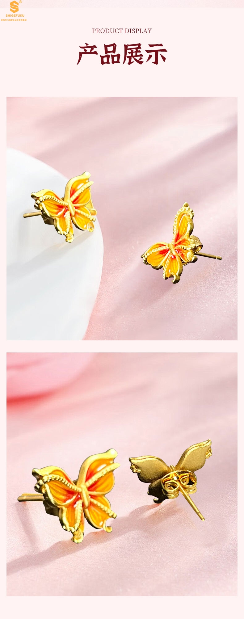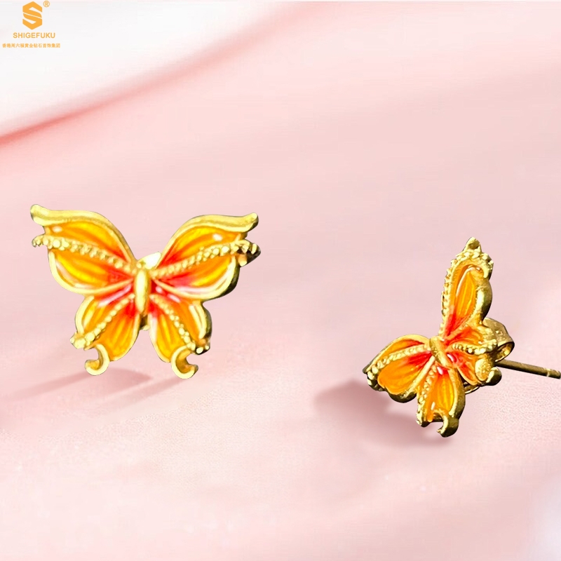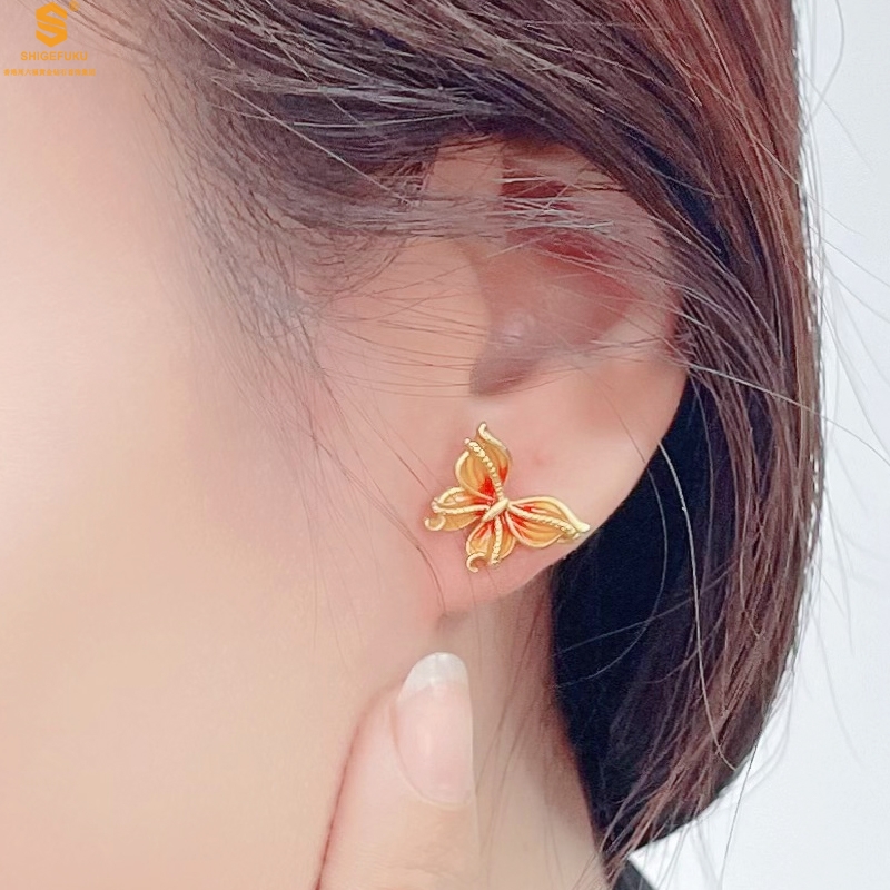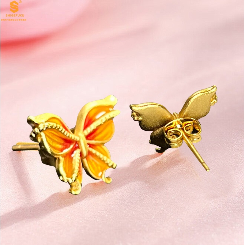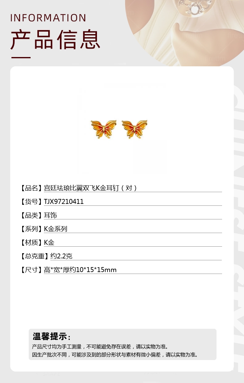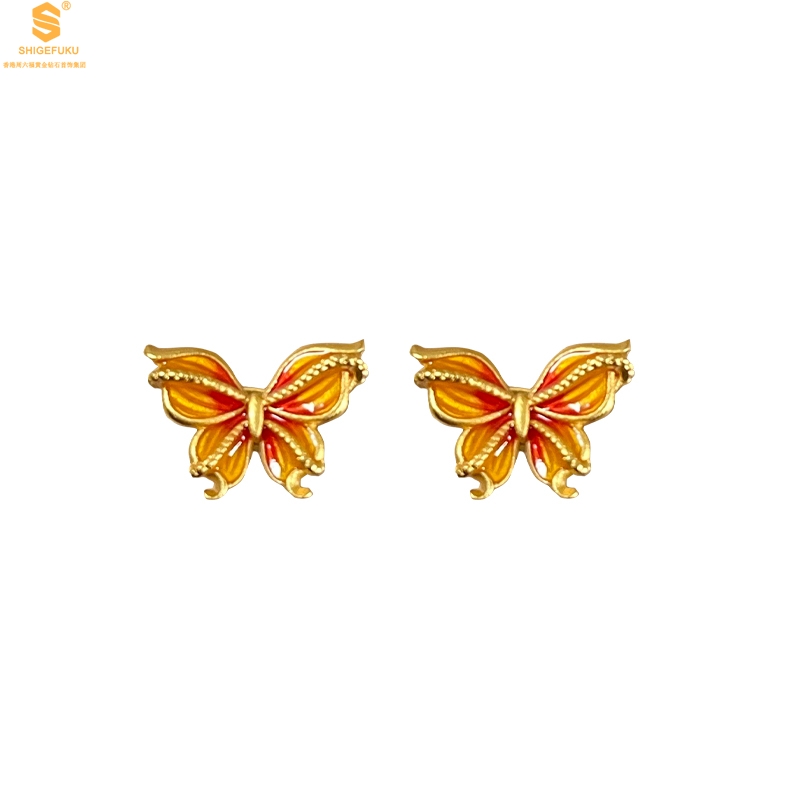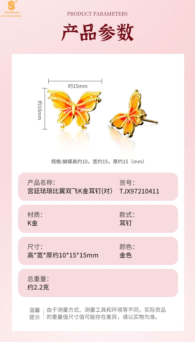 【品名】宫廷珐琅比翼双飞K金耳钉(对)