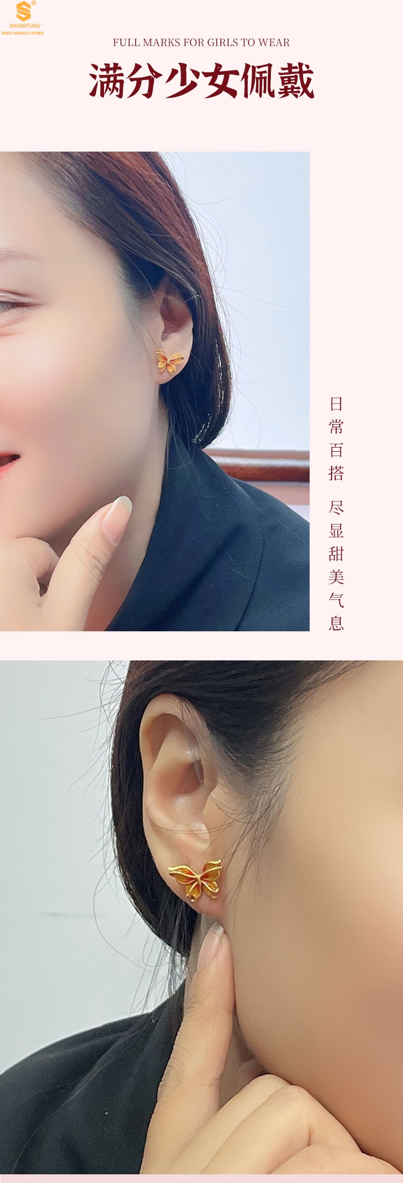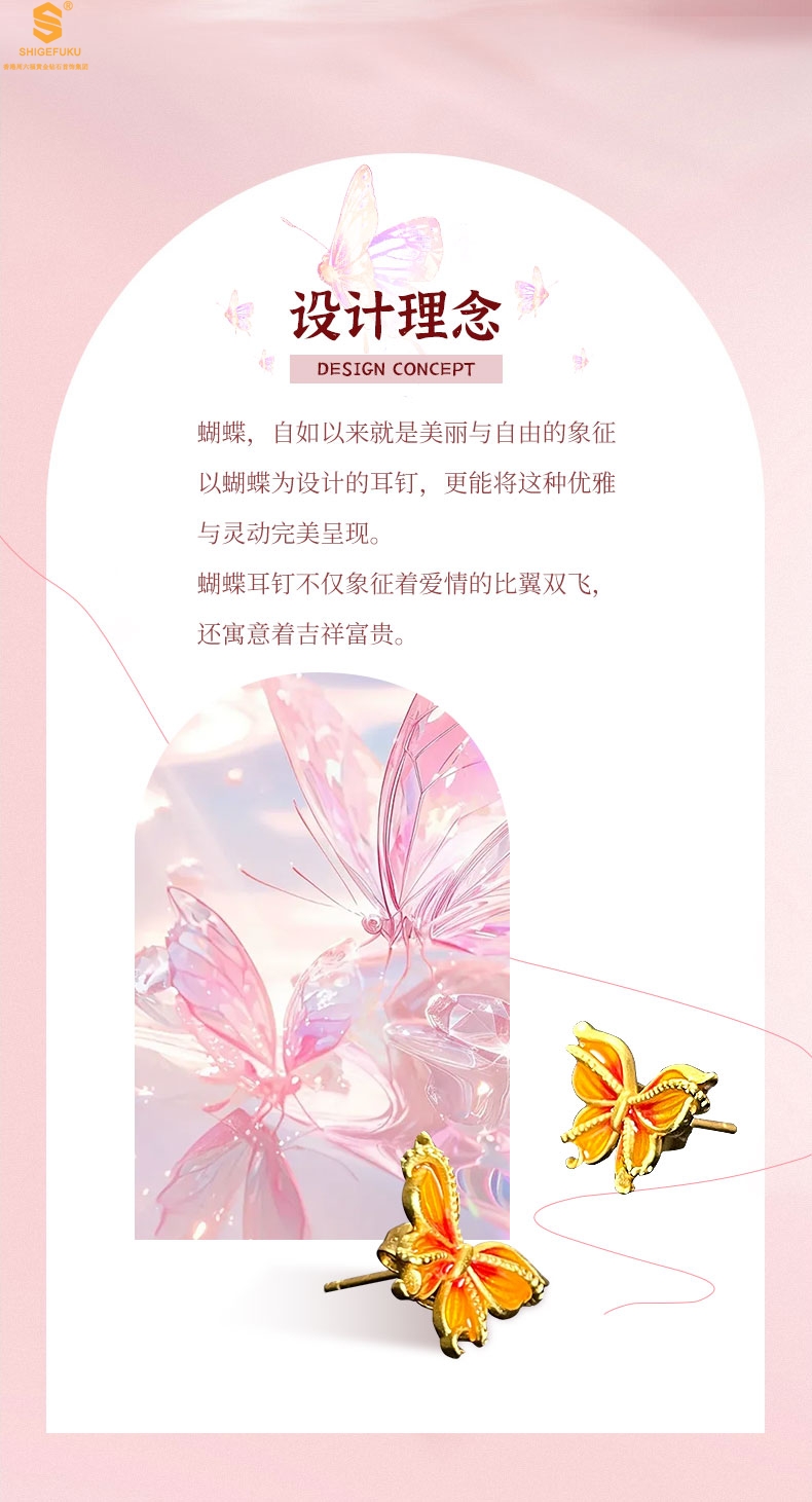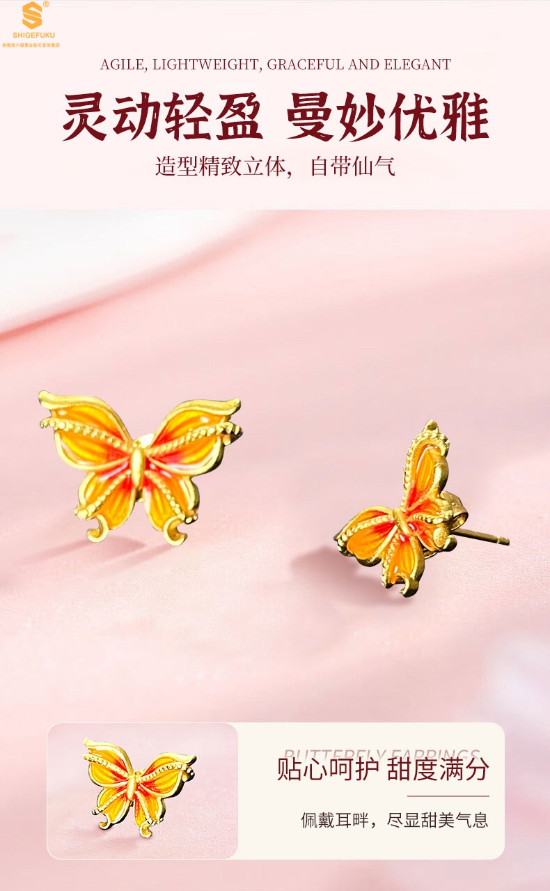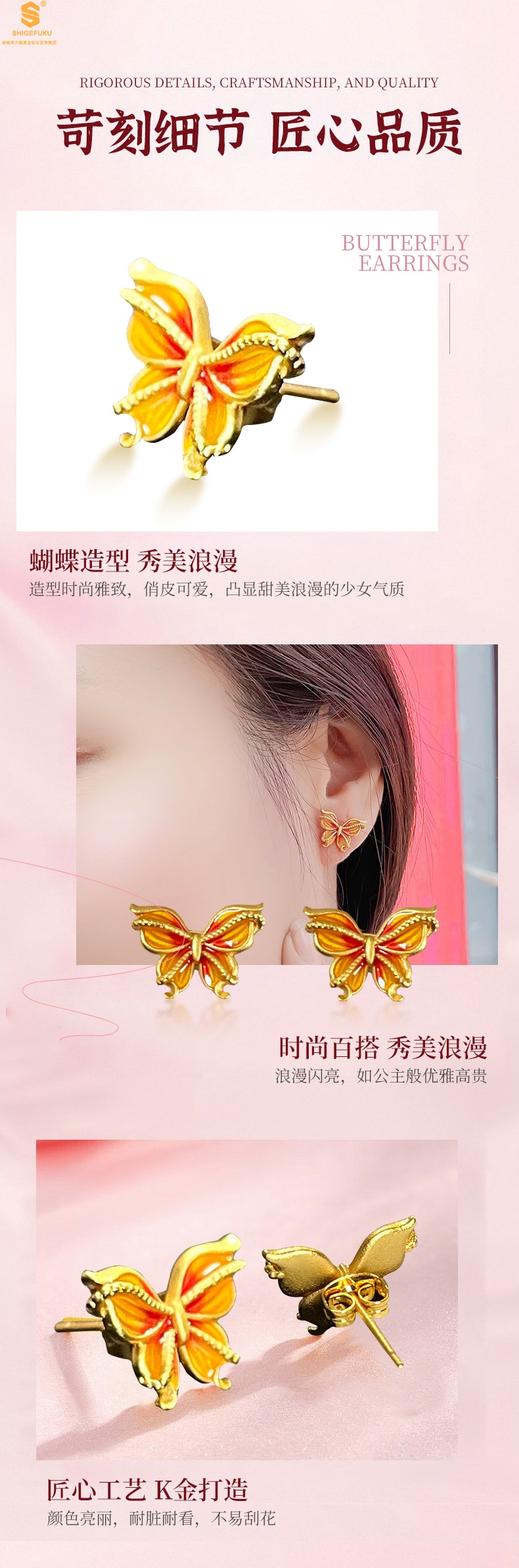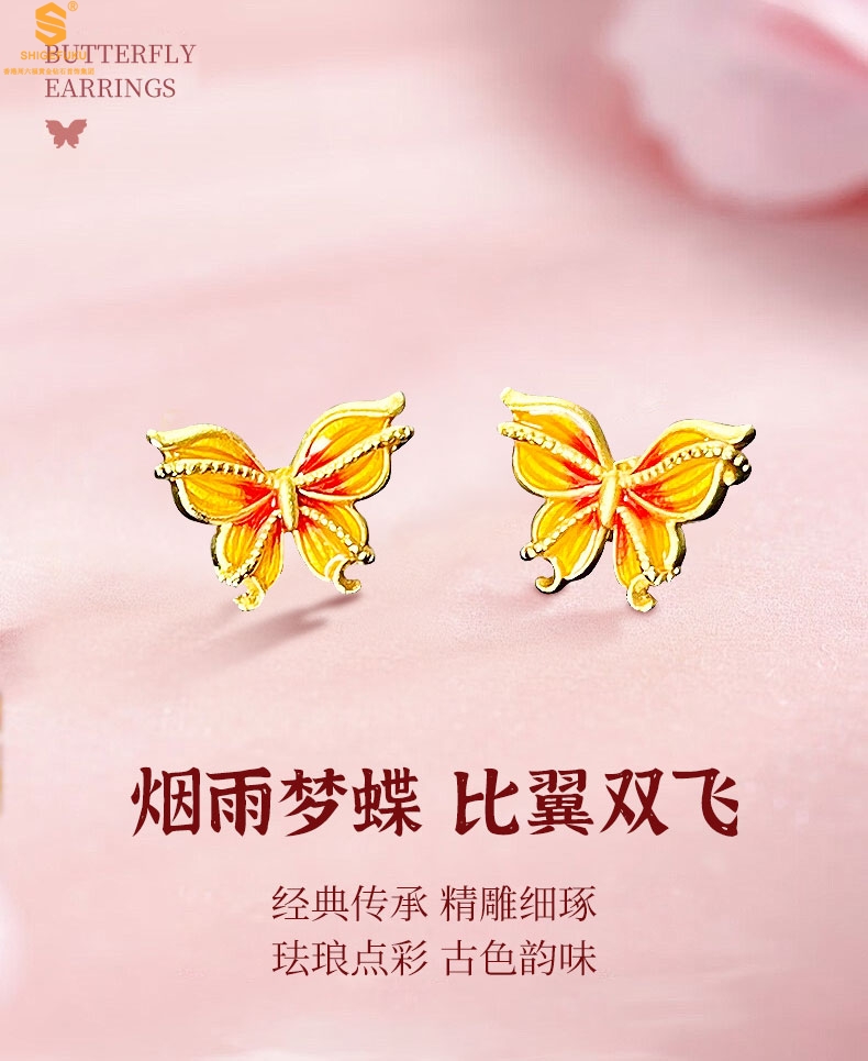 【品名】宫廷珐琅比翼双飞K金耳钉(对)