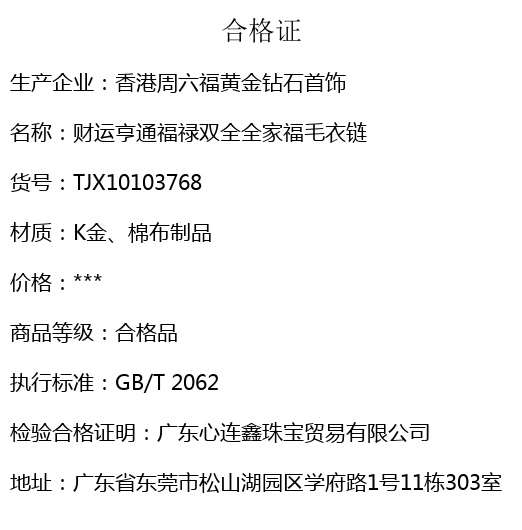 6、售后寄回物品,必须保证:首饰+礼品盒+礼品袋(如有)+国检证书+质保单+保养卡均寄回,丢失部分我们将按照售价扣除。