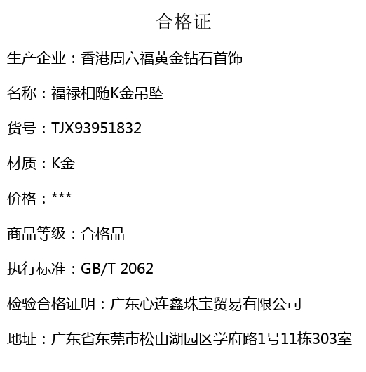 【套装包含】首饰+礼品盒+礼品袋+国检证书+质保单+价签
