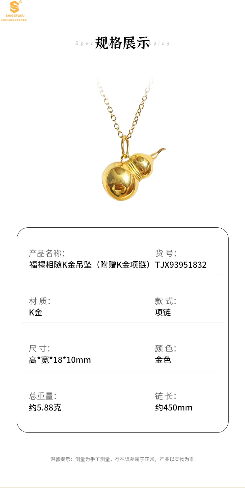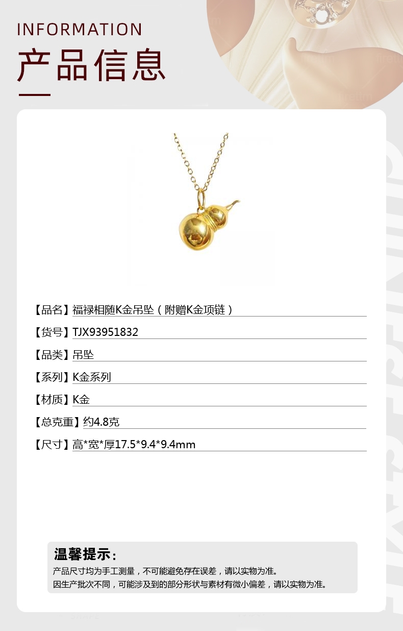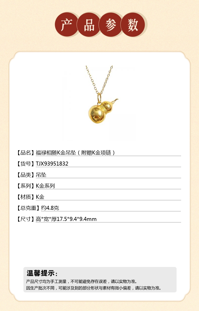 【品名】福禄相随K金吊坠(附赠K金项链)