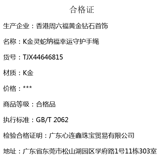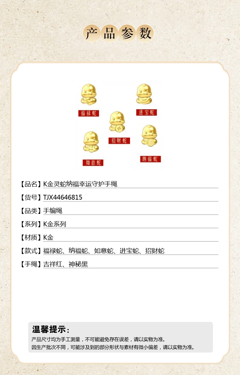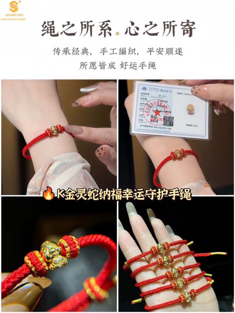 【品名】K金灵蛇纳福幸运守护手绳