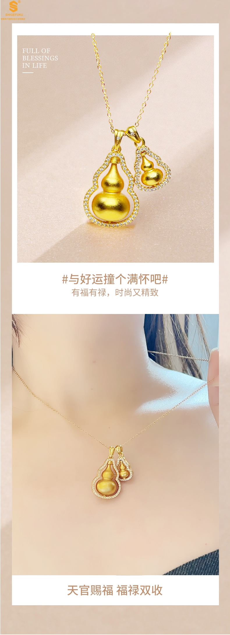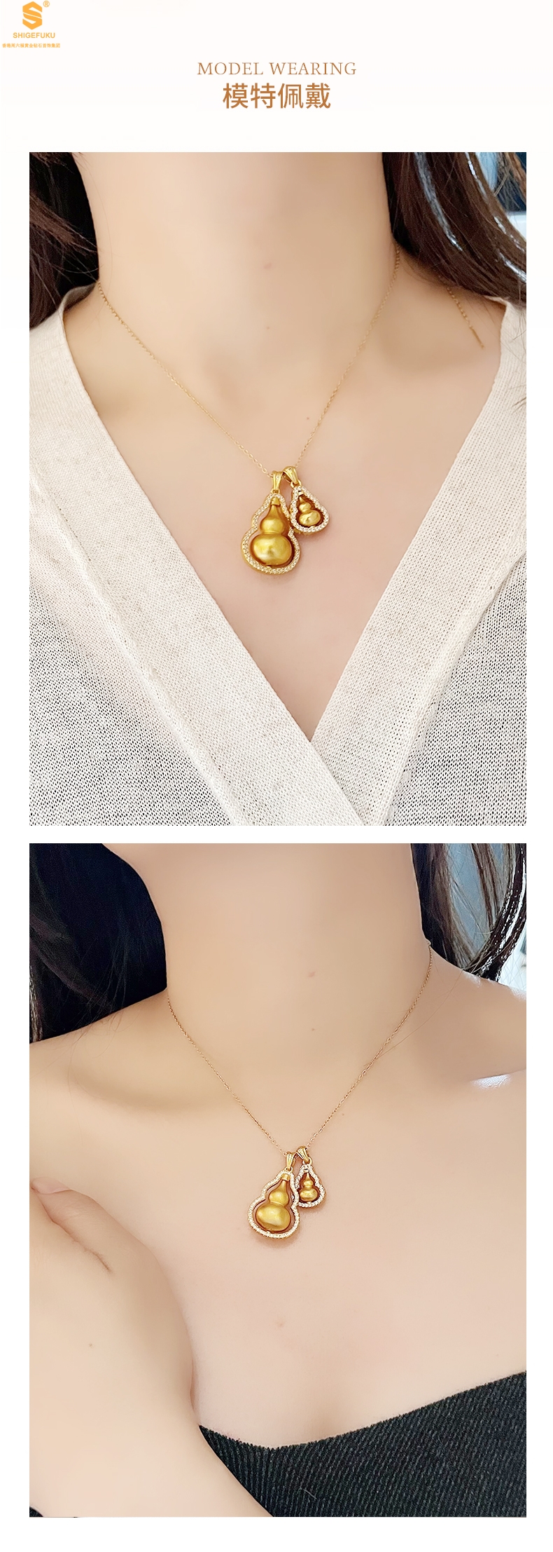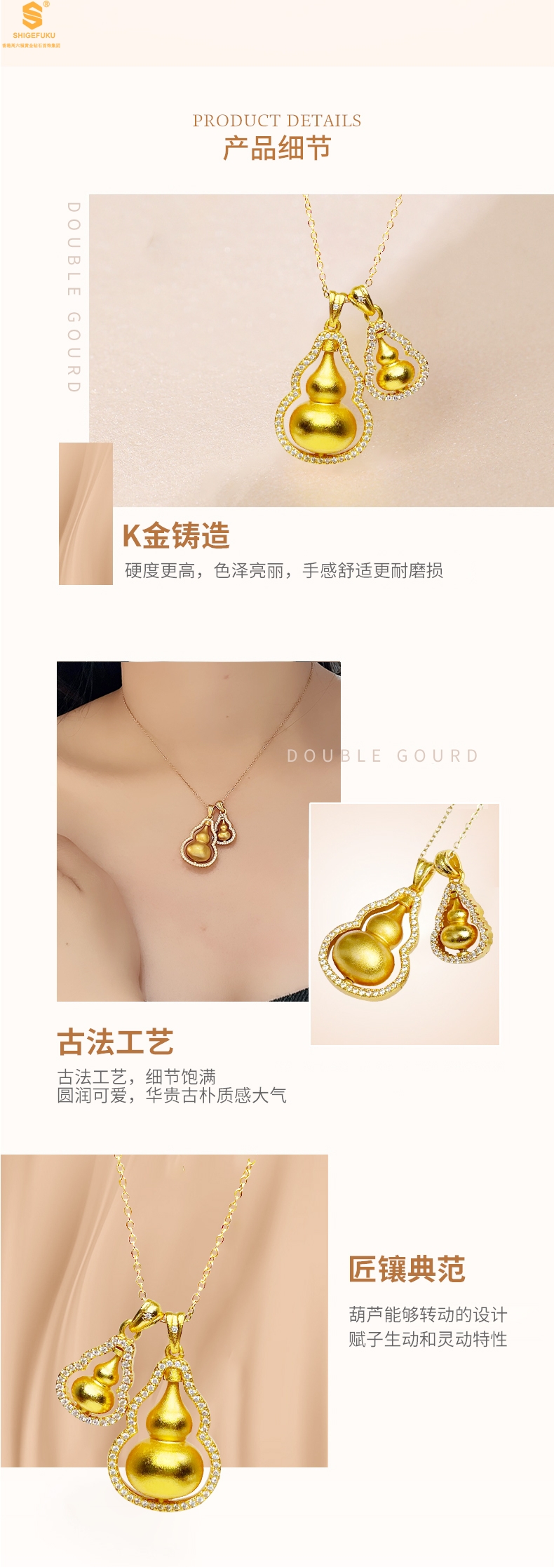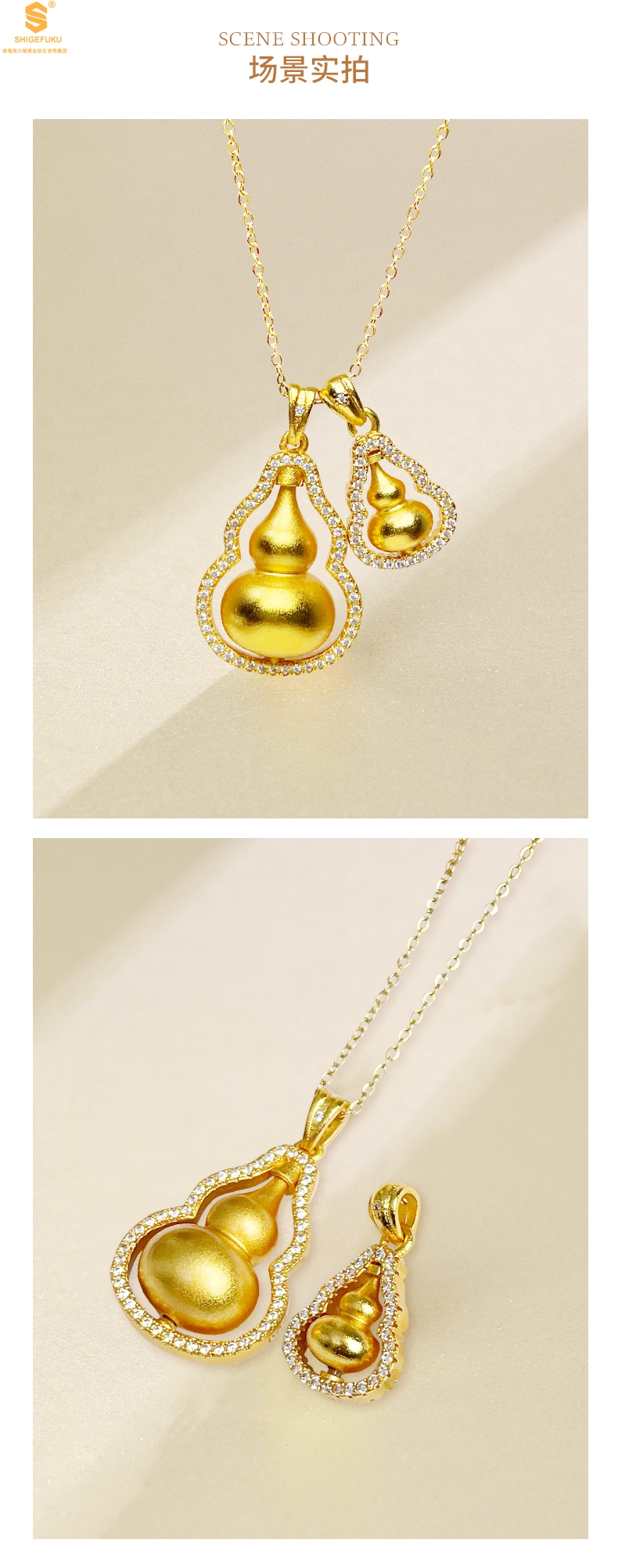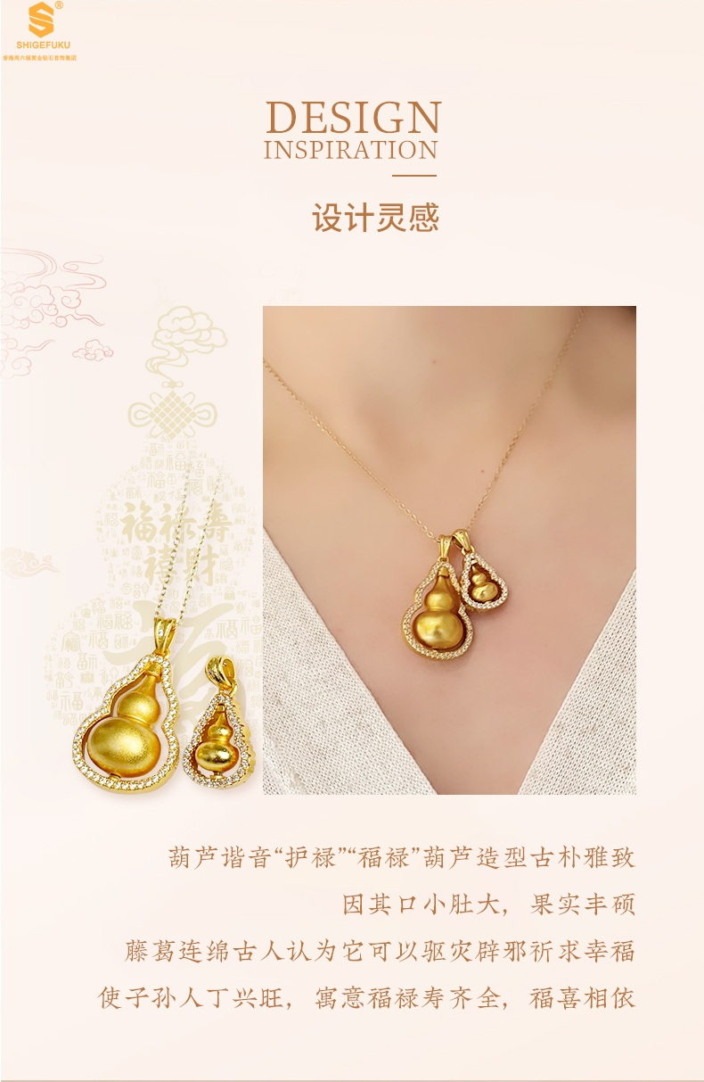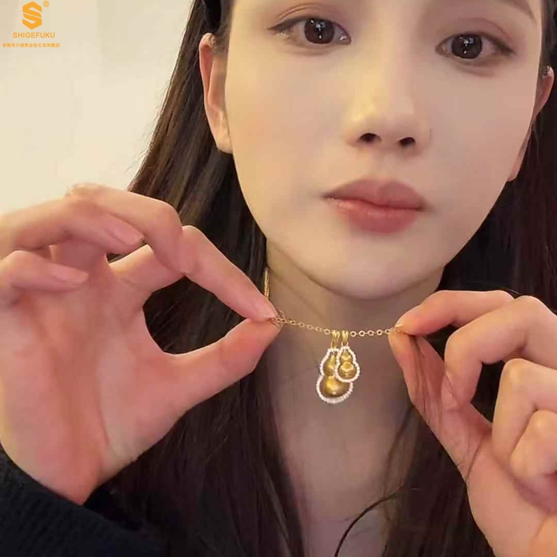 【品名】双葫芦豪镶满钻K金吊坠(附赠K金项链)