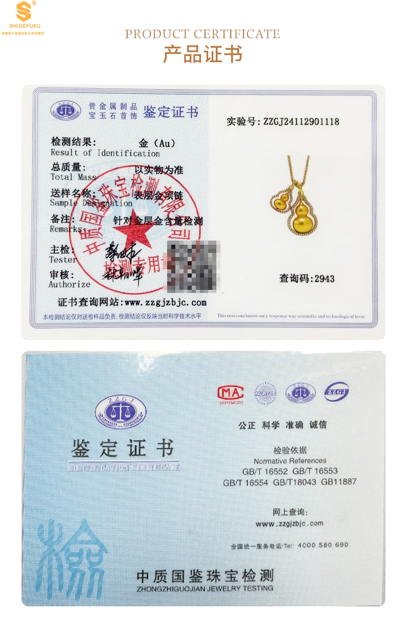 【套装包含】首饰+礼品盒+礼品袋+国检证书+质保单+价签