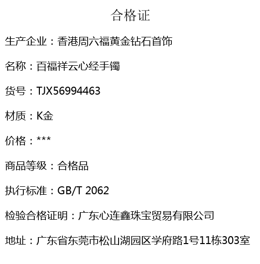 【品牌】香港周六福黄金钻石首饰