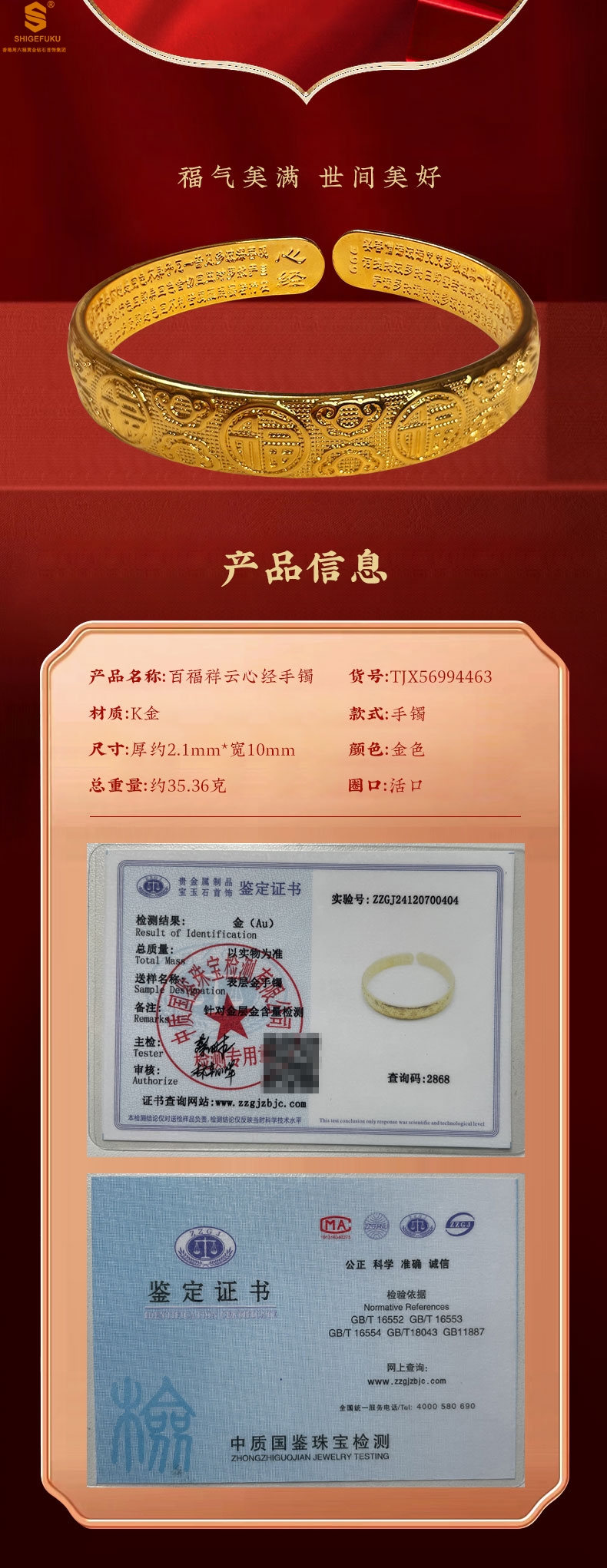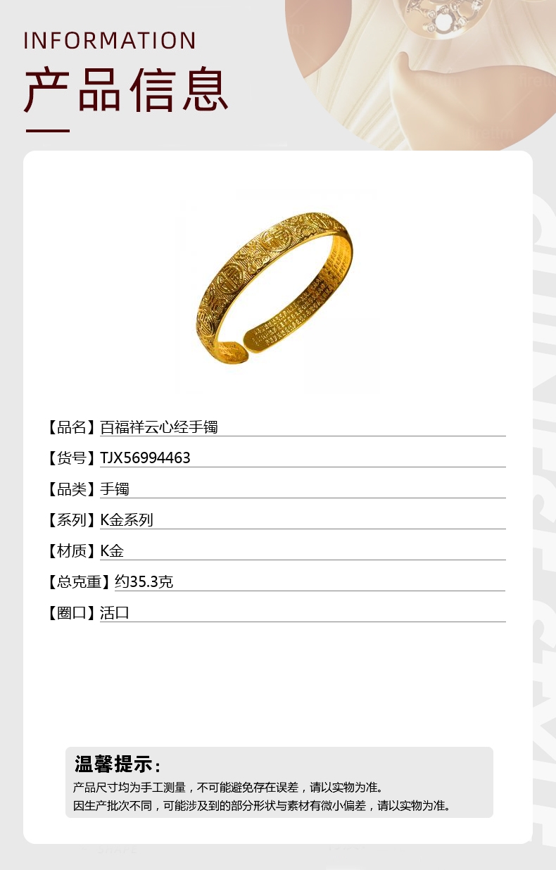 【品名】百福祥云心经手镯