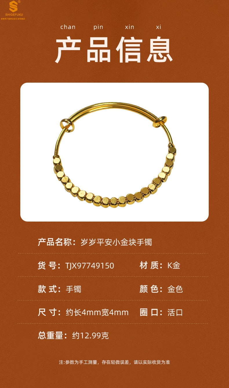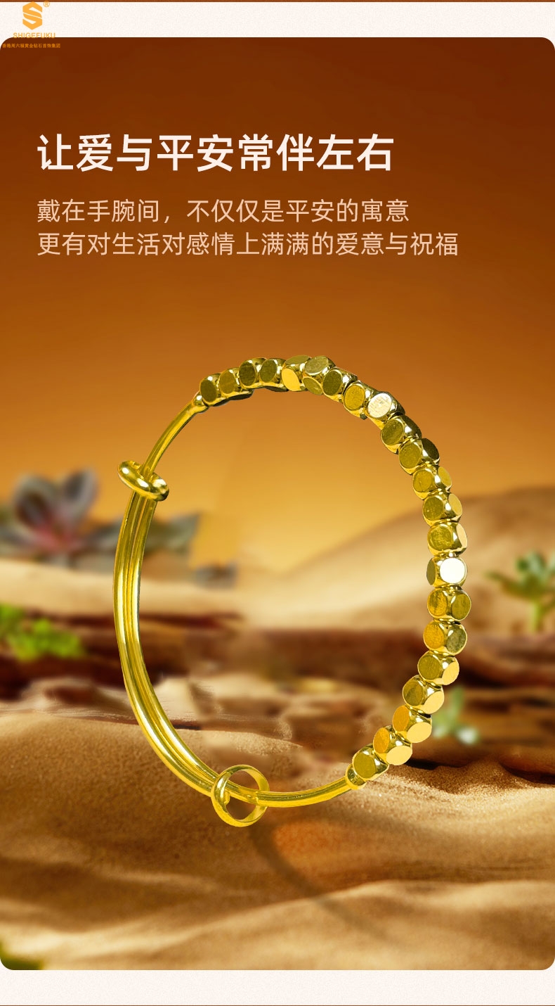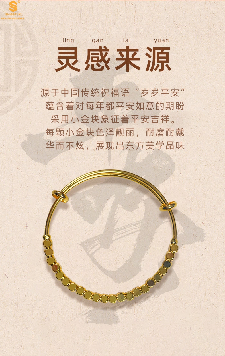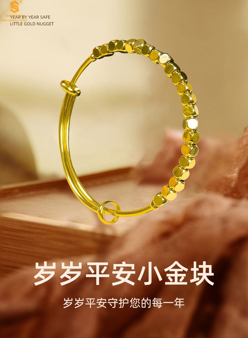 【品名】岁岁平安小金块手镯